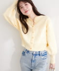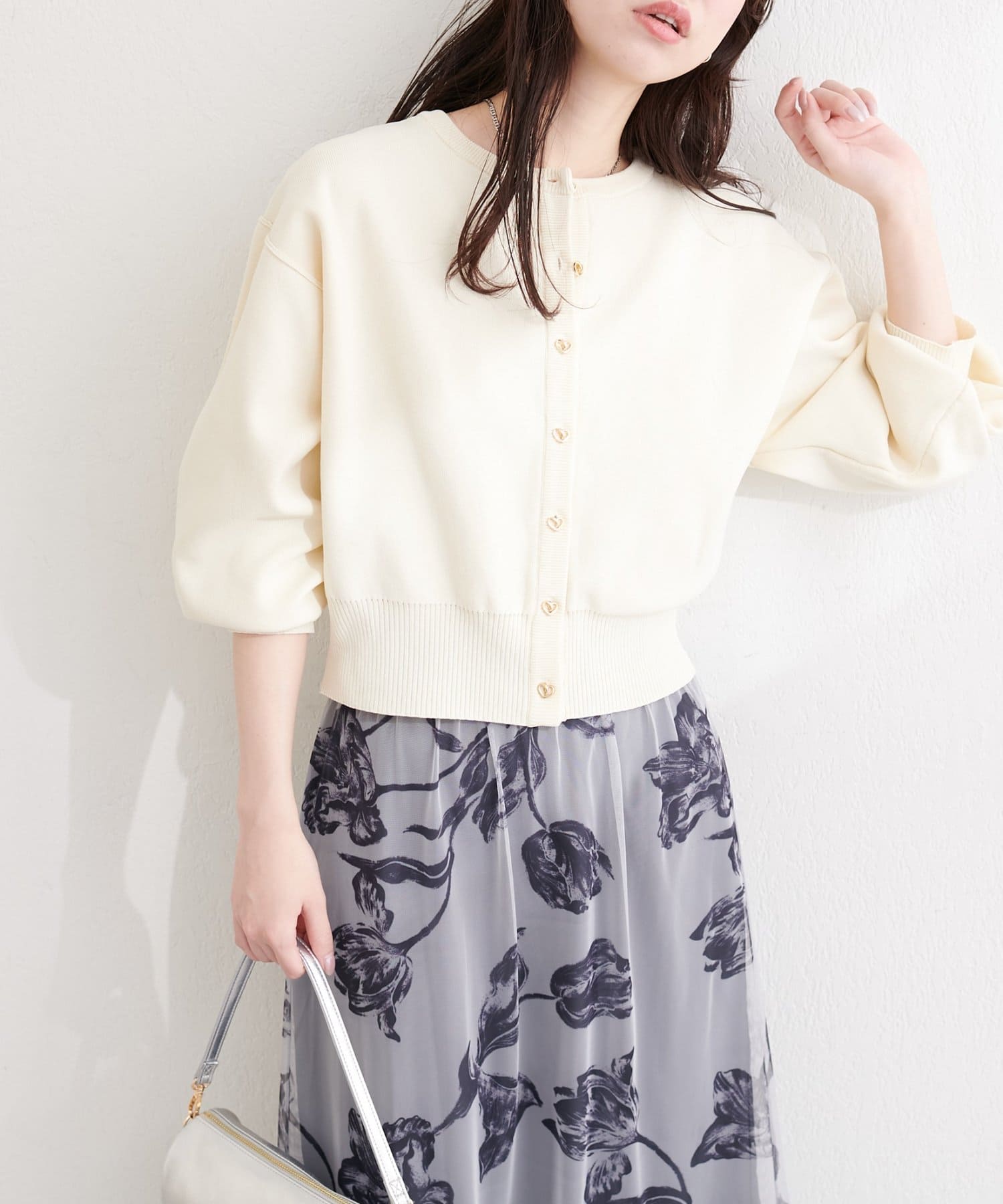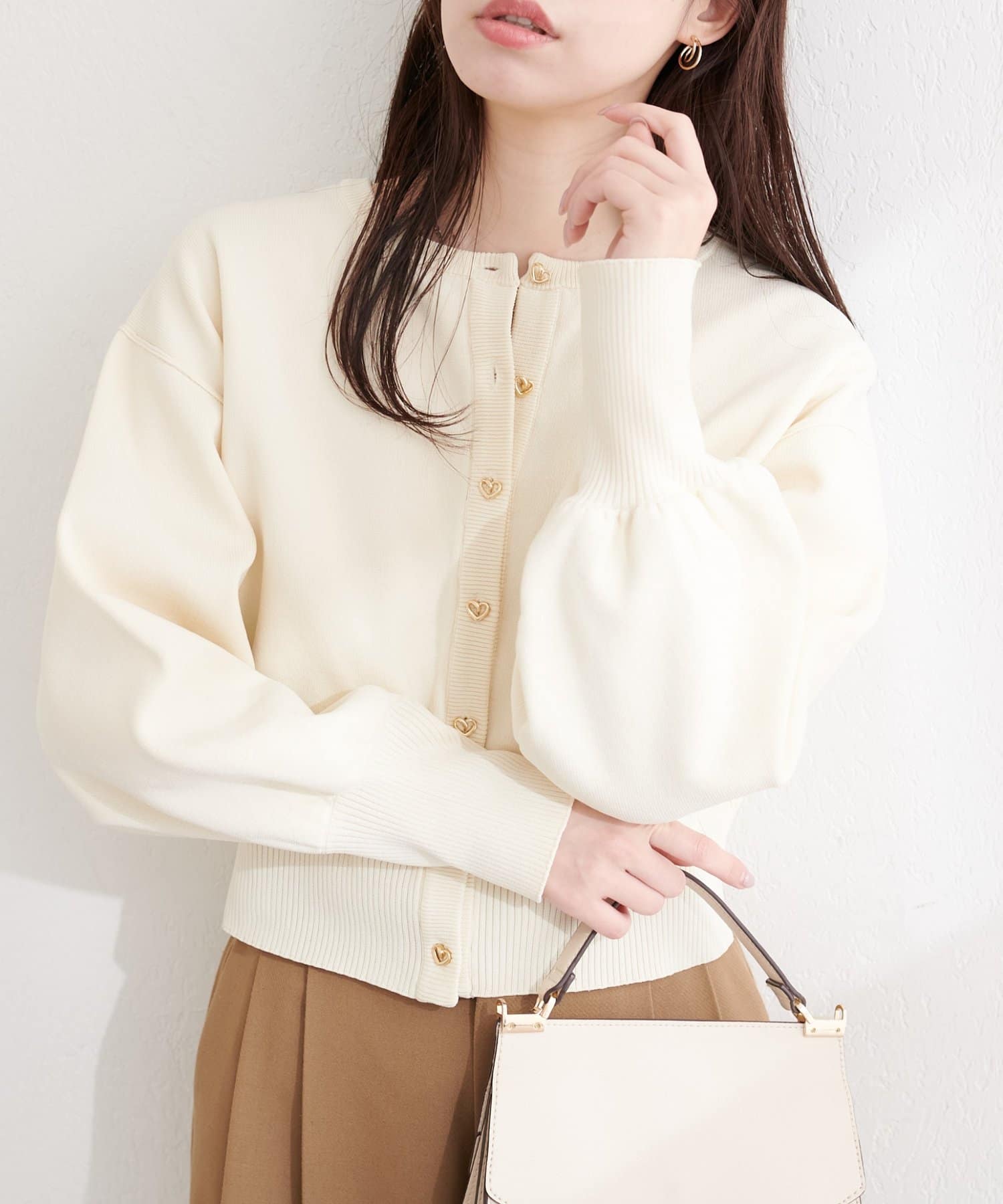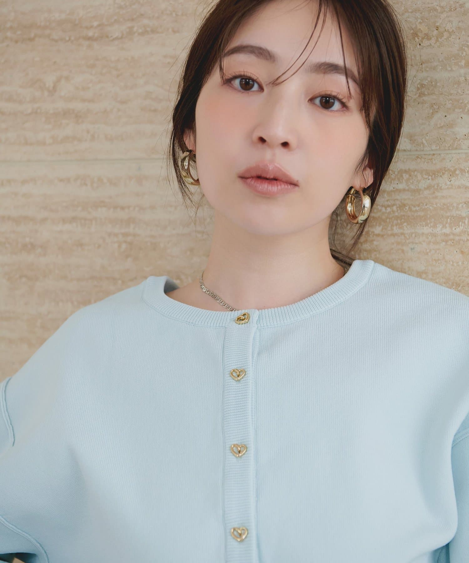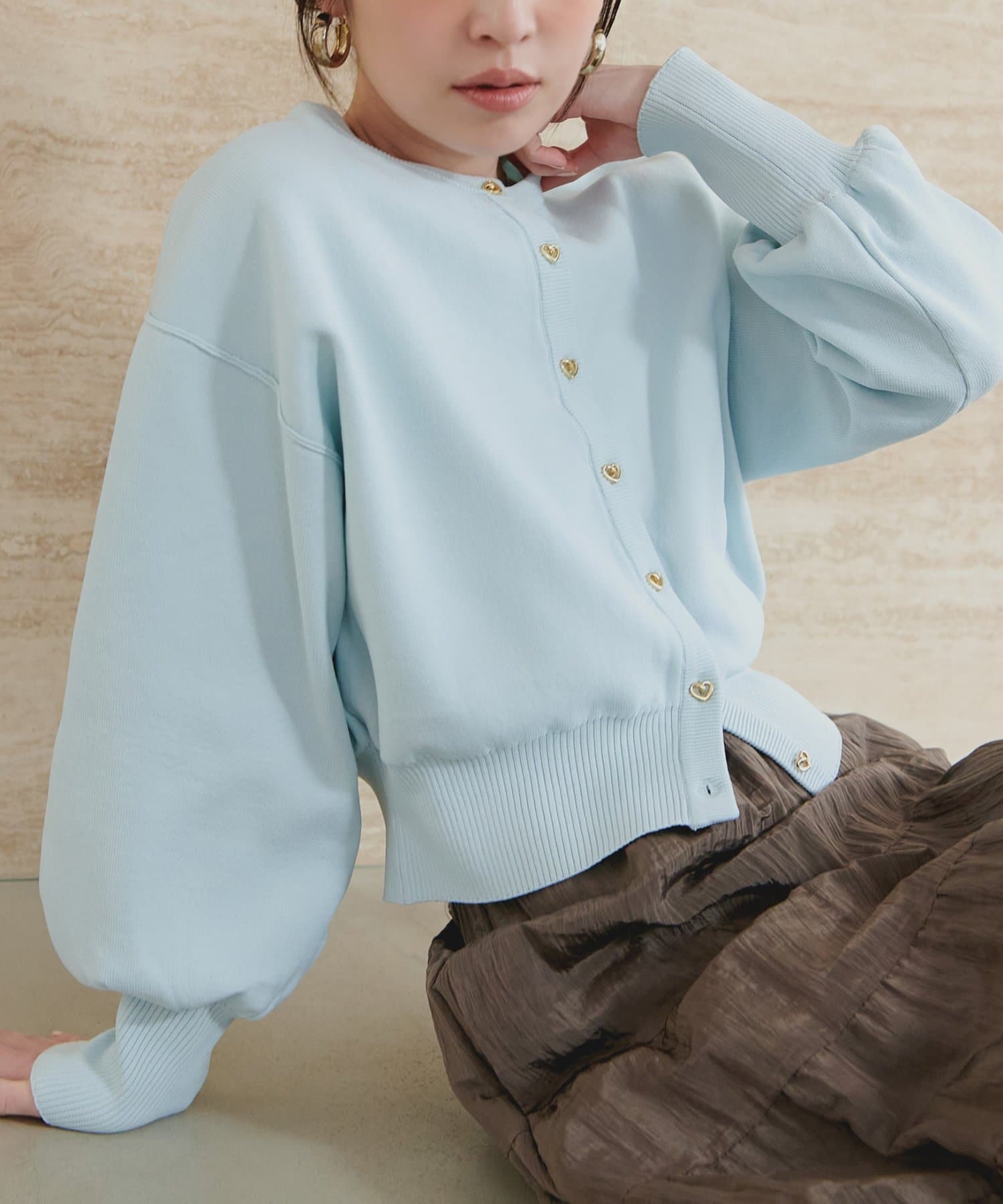 フロントに並んだちびハートのボタンが愛らしいカーディガン。