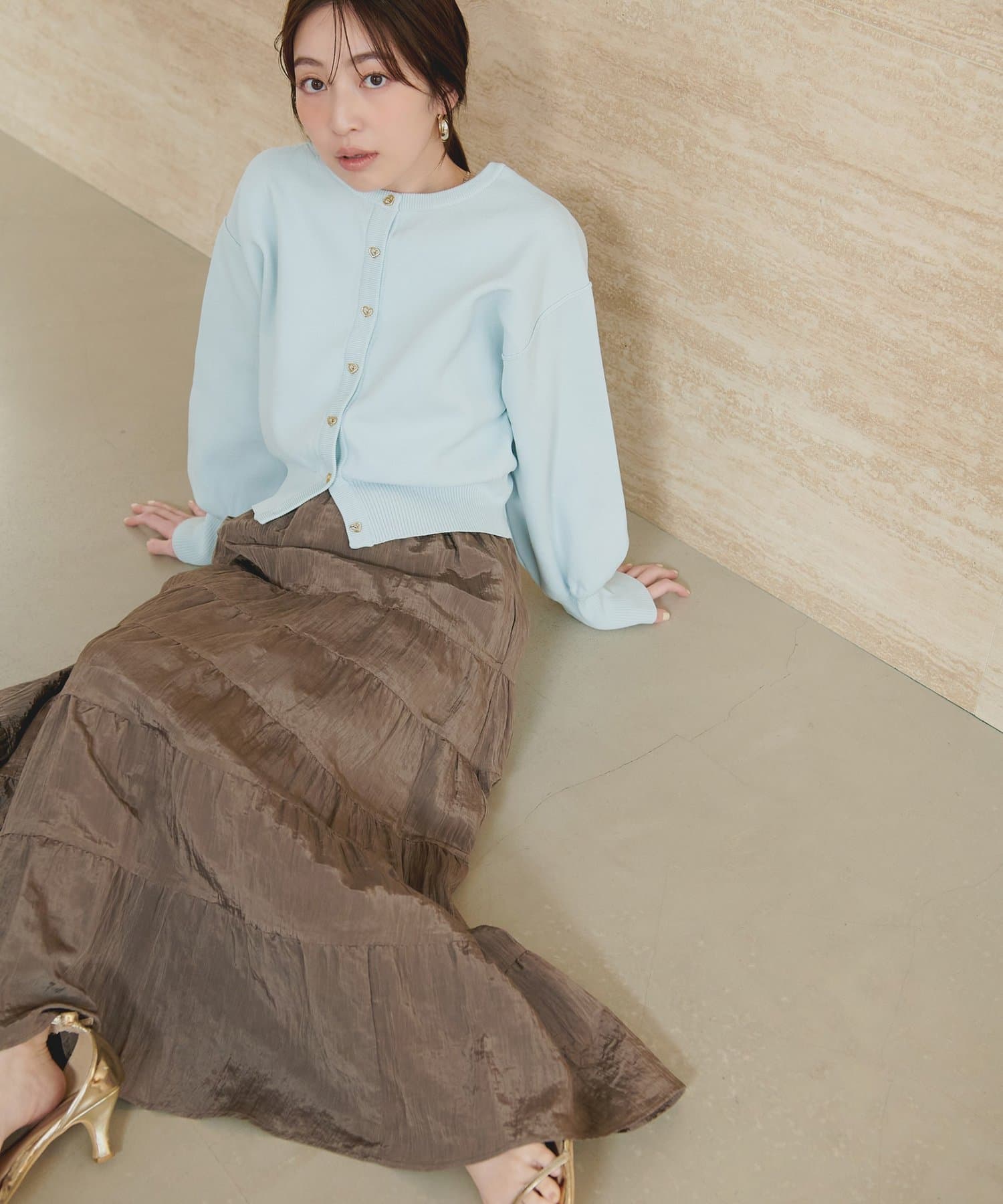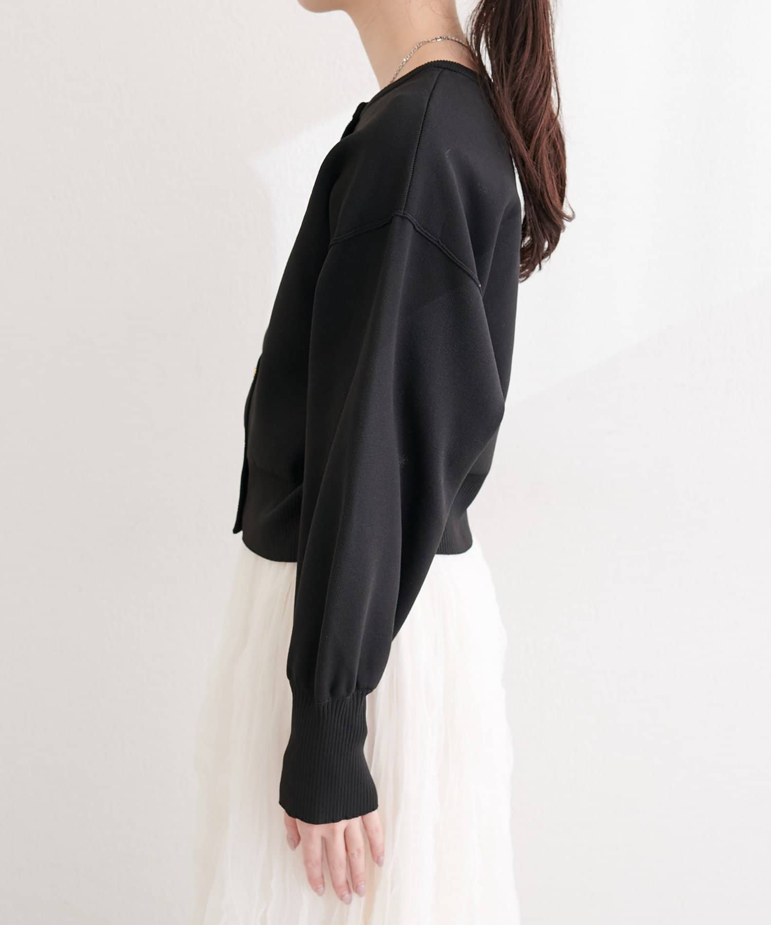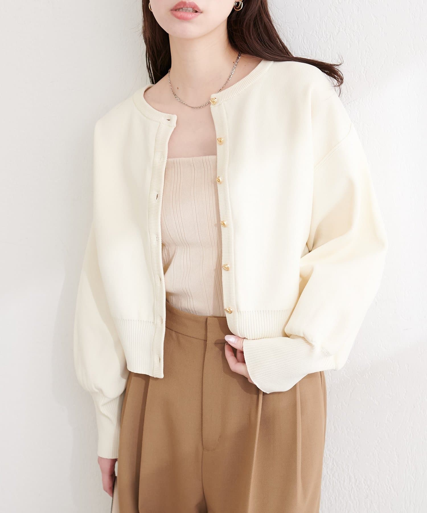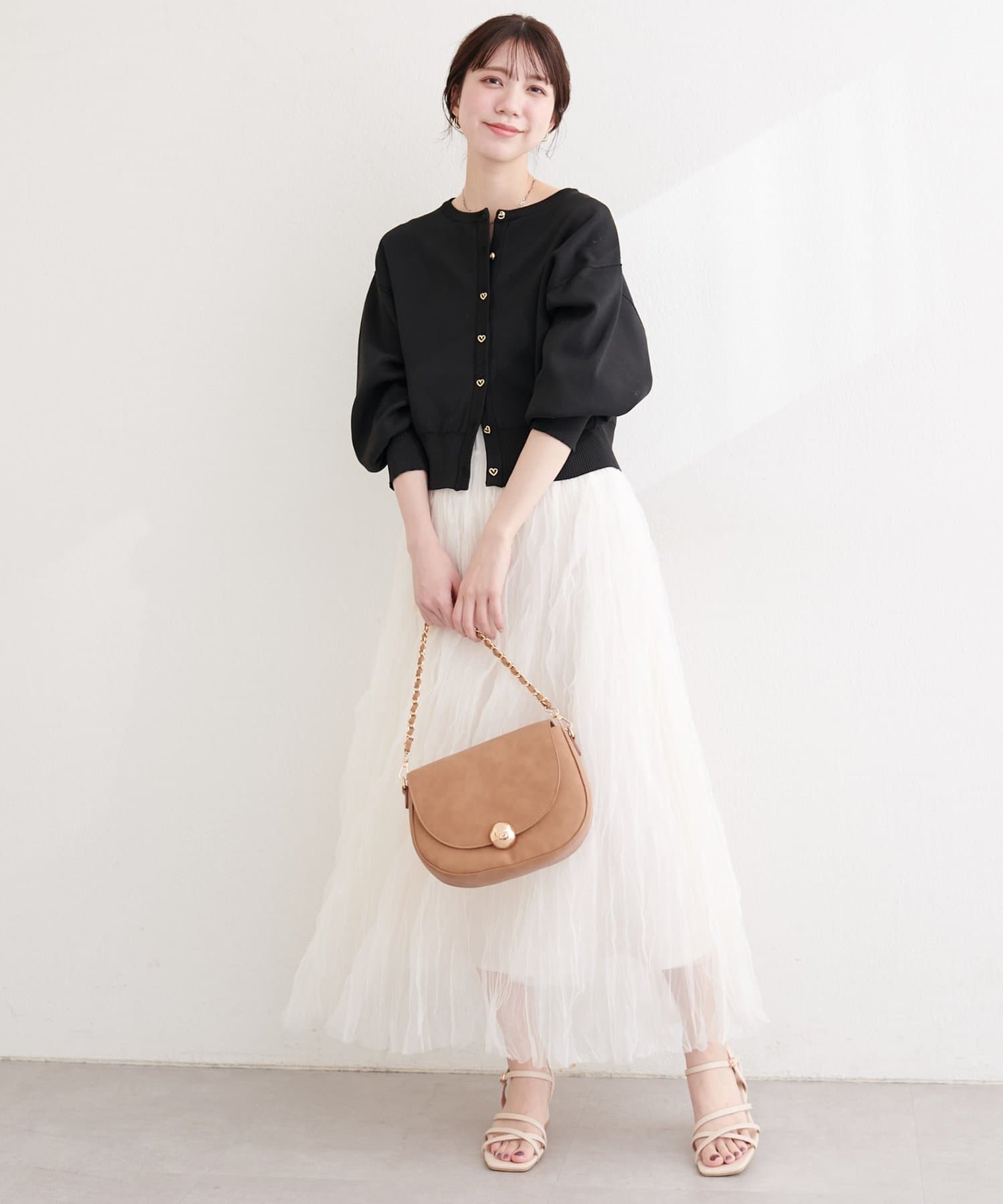 フロントに並んだちびハートのボタンが愛らしいカーディガン。