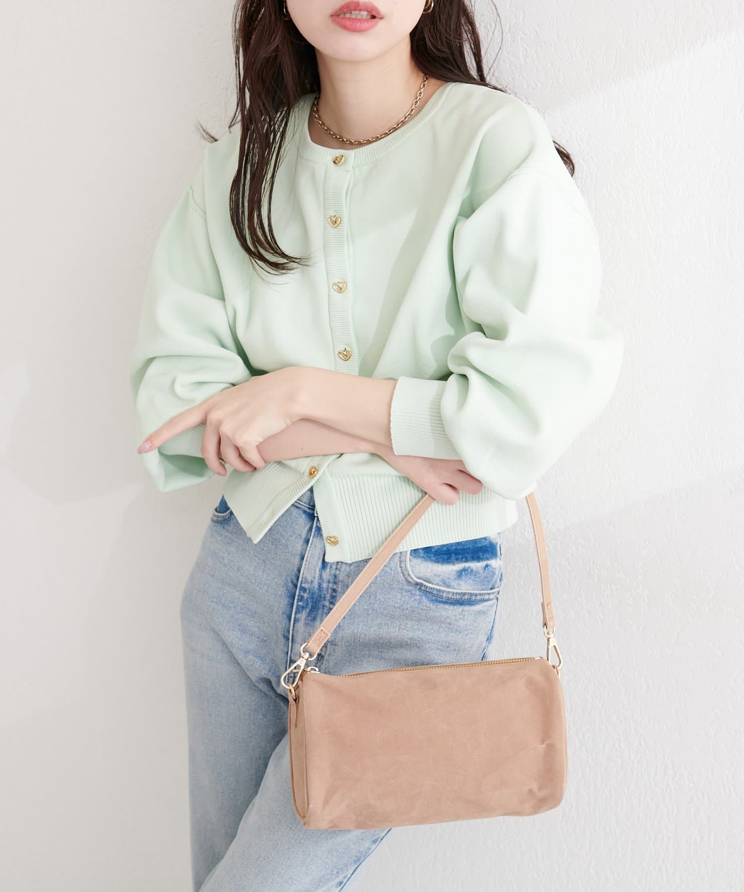 • natural couture(ナチュラルクチュール) お家で洗えるちびハート釦カーディガン