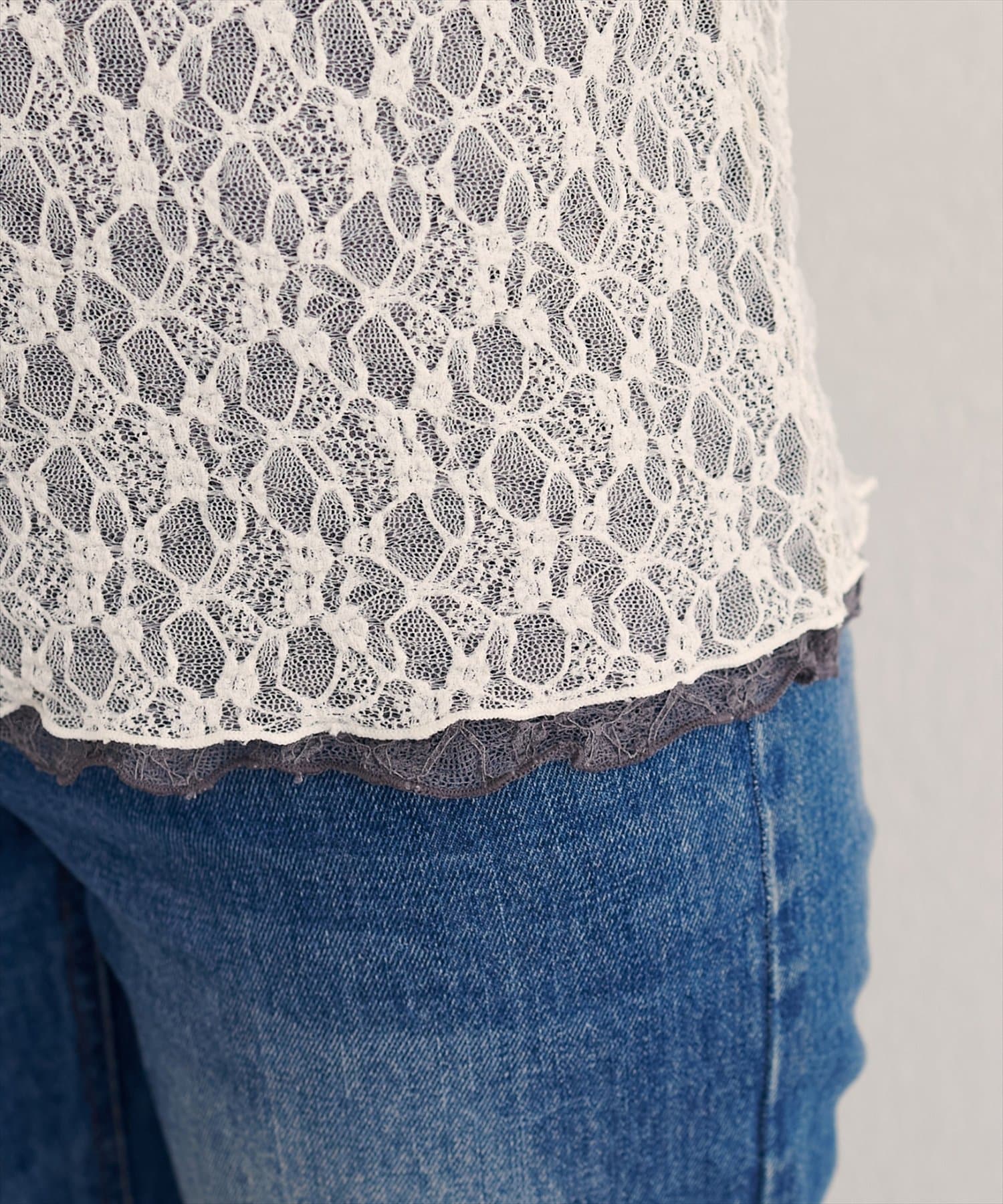 繊細なレース面と、シックな表情の裏面との切り替えが、あなたのスタイリングの幅を広げます。
