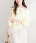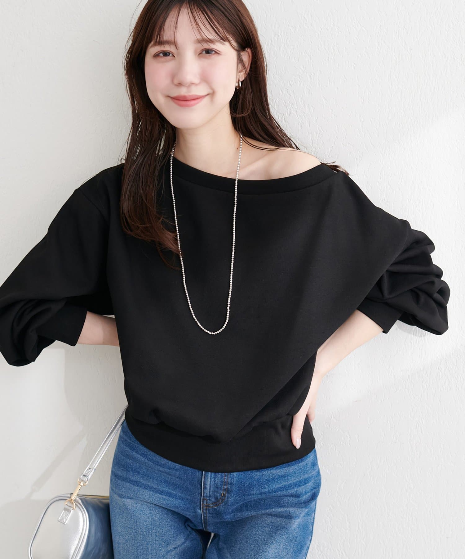 オフショルの開き具合を調整することで、レイヤードスタイルも楽しめます。