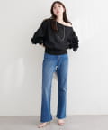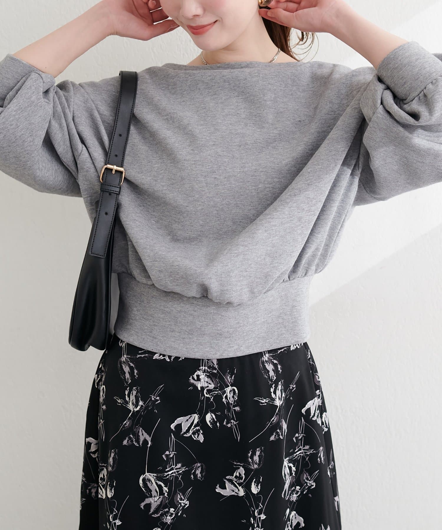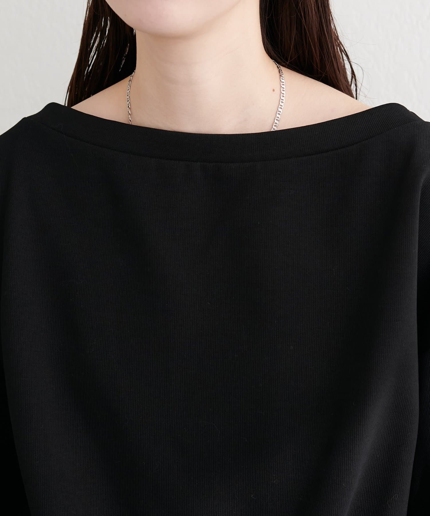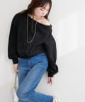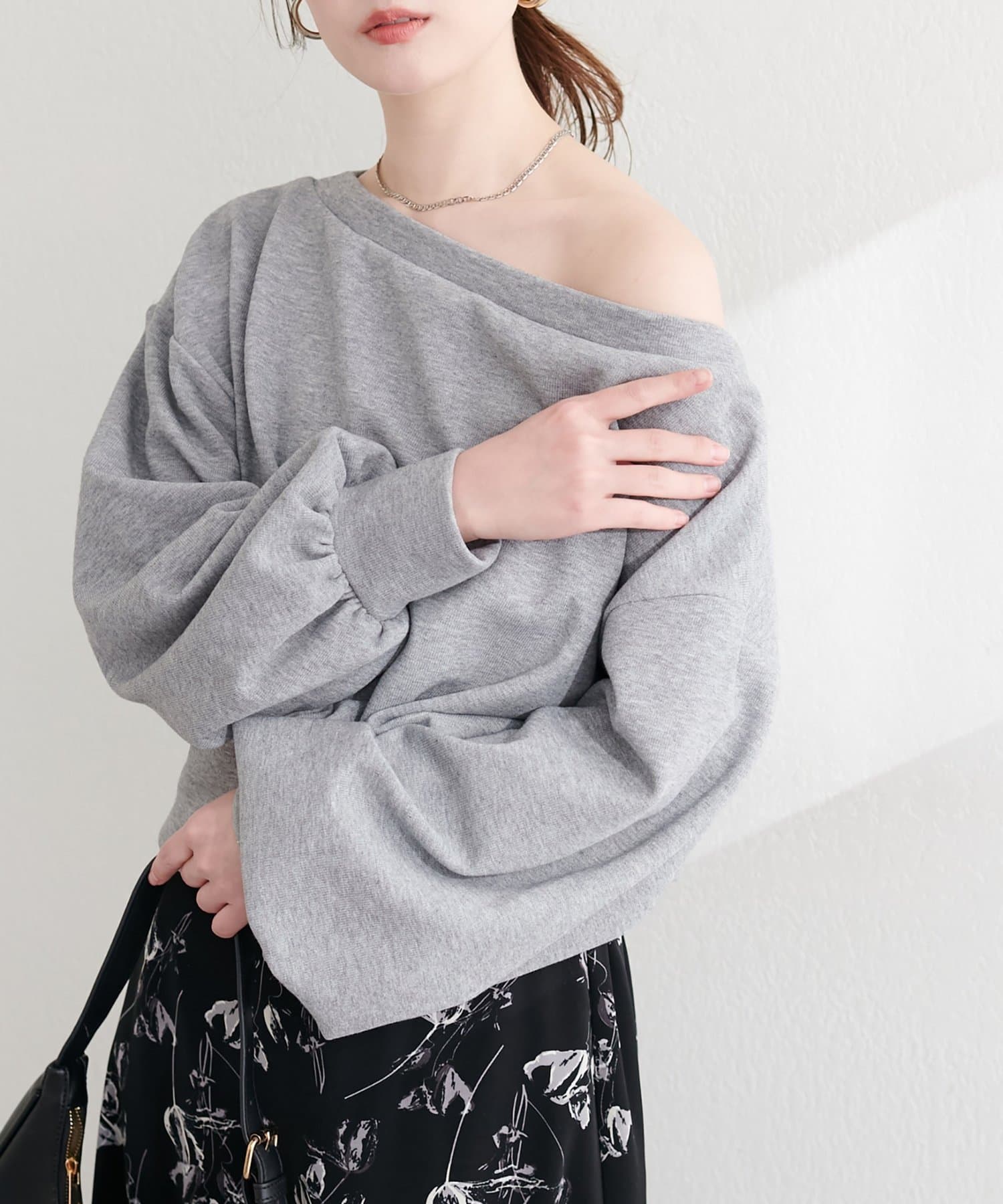 カジュアルなスウェット素材ながら、デコルテを美しく見せるオフショルダーが、大人の女性らしい着こなしを叶えます。
