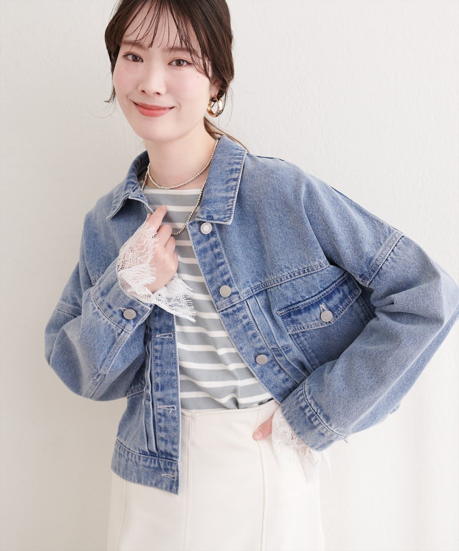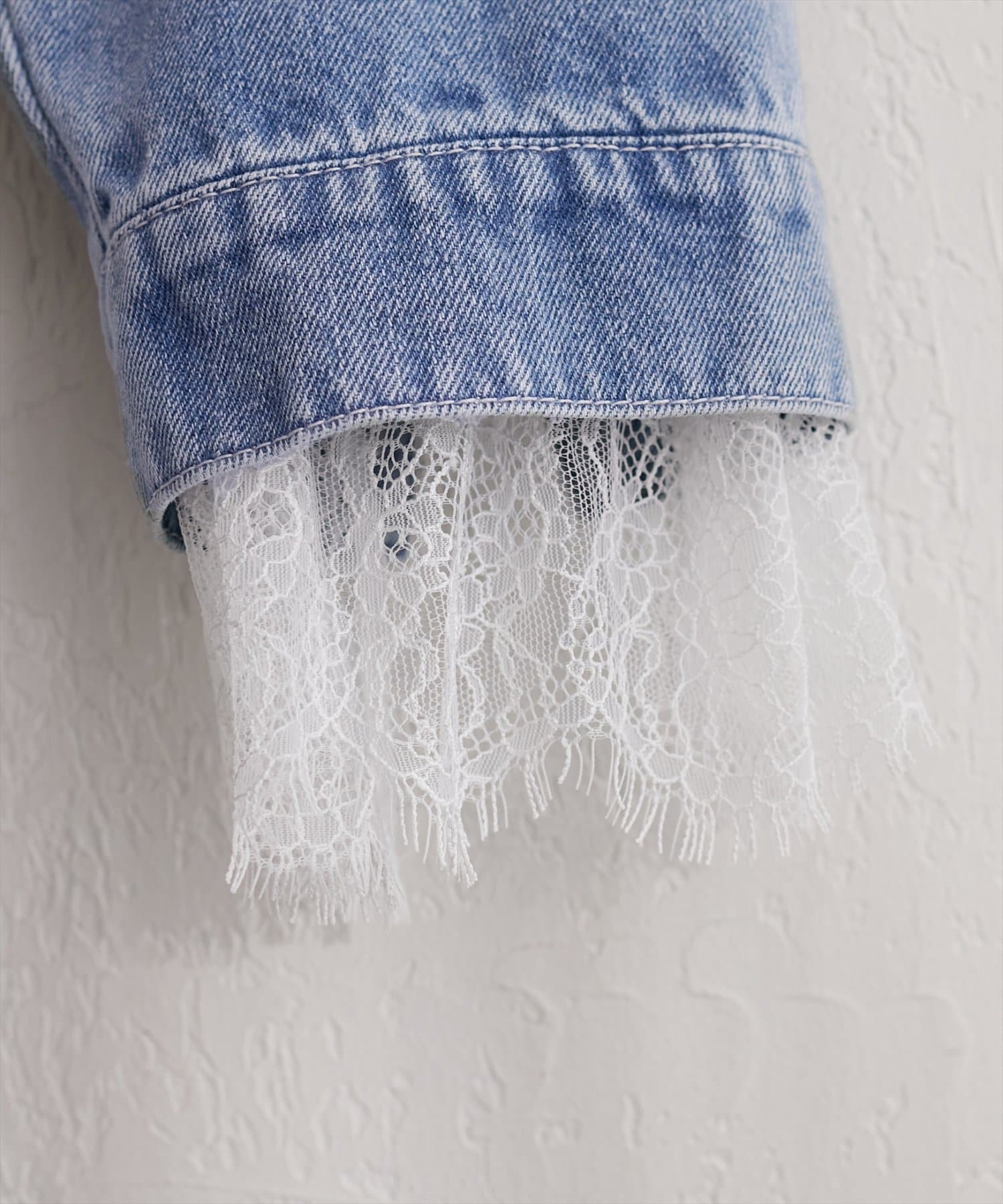 Gジャンのシルエットはそのままに、袖口に贅沢にあしらわれたレースが、さりげない華やかさをプラス。