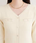 Vネックがデコルテを美しく見せ、女性らしさを際立たせます。