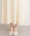 スカート部分は、歩くたびに揺れるプリーツ加工が施され、エレガントな雰囲気を演出。