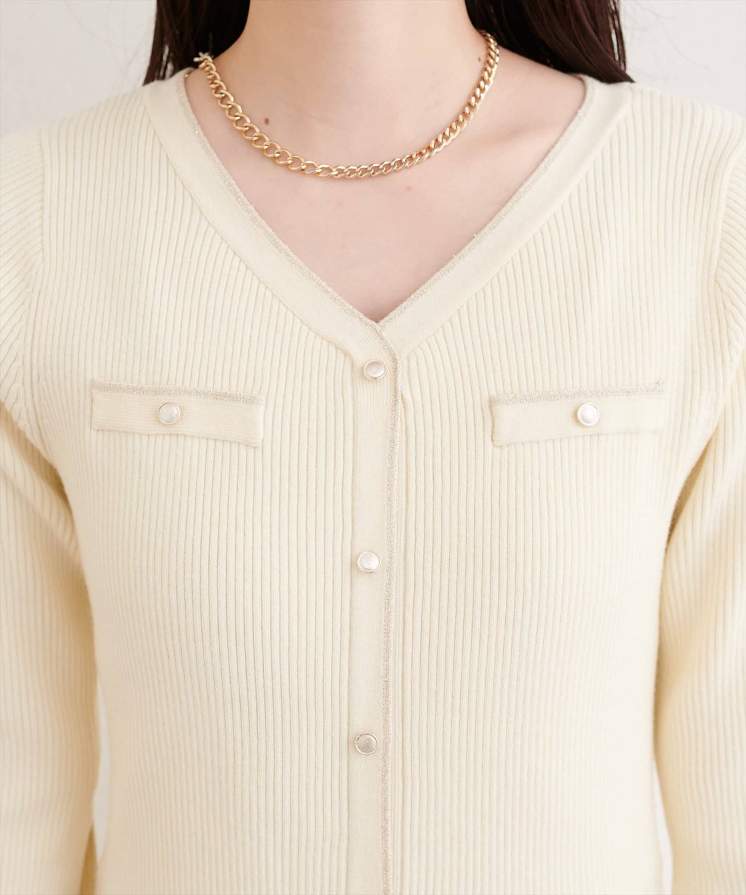 トップス部分はすっきりとしたリブニットで、コンパクトなシルエット。