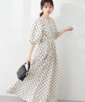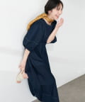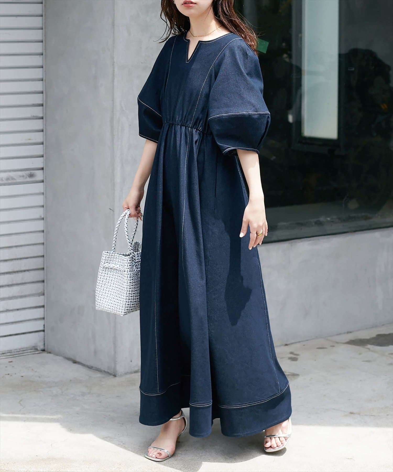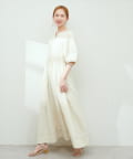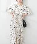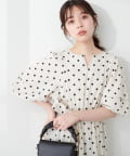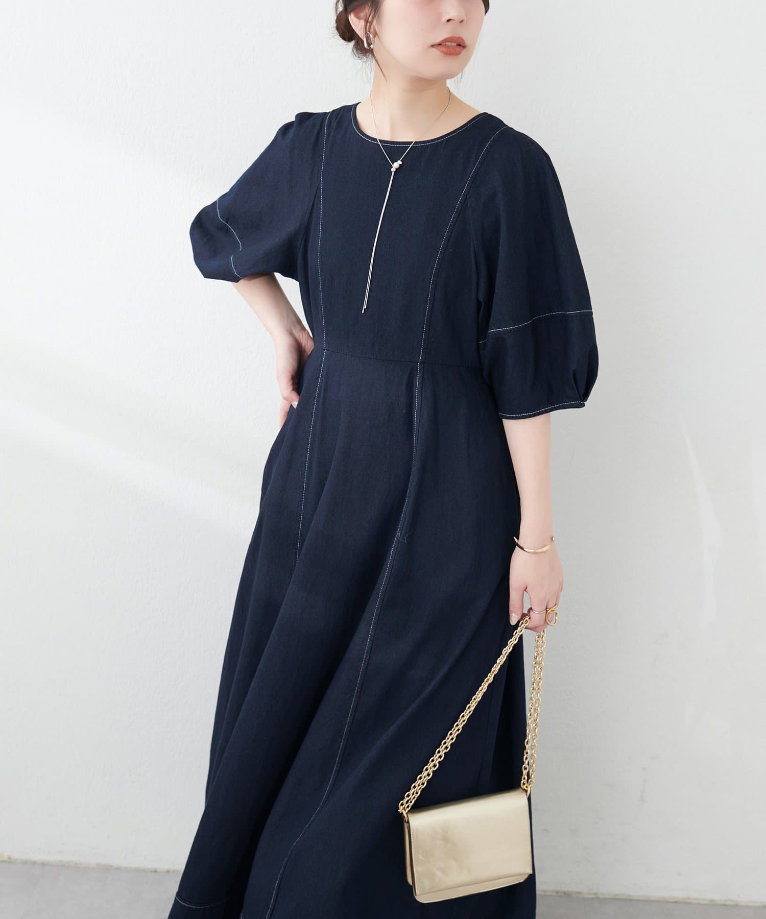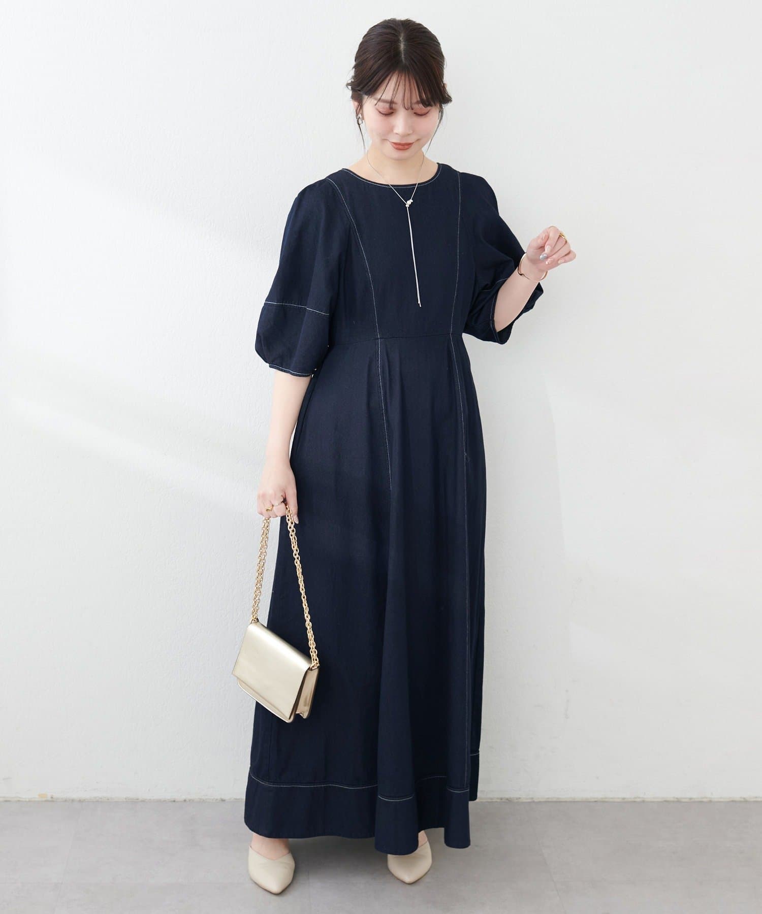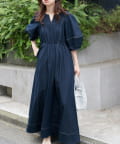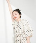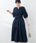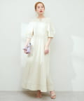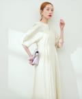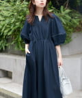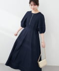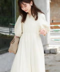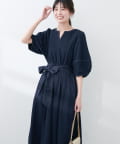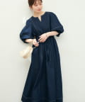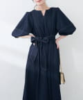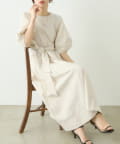 腕を華奢に見せてくれるランタンスリーブが目を引く一着。
