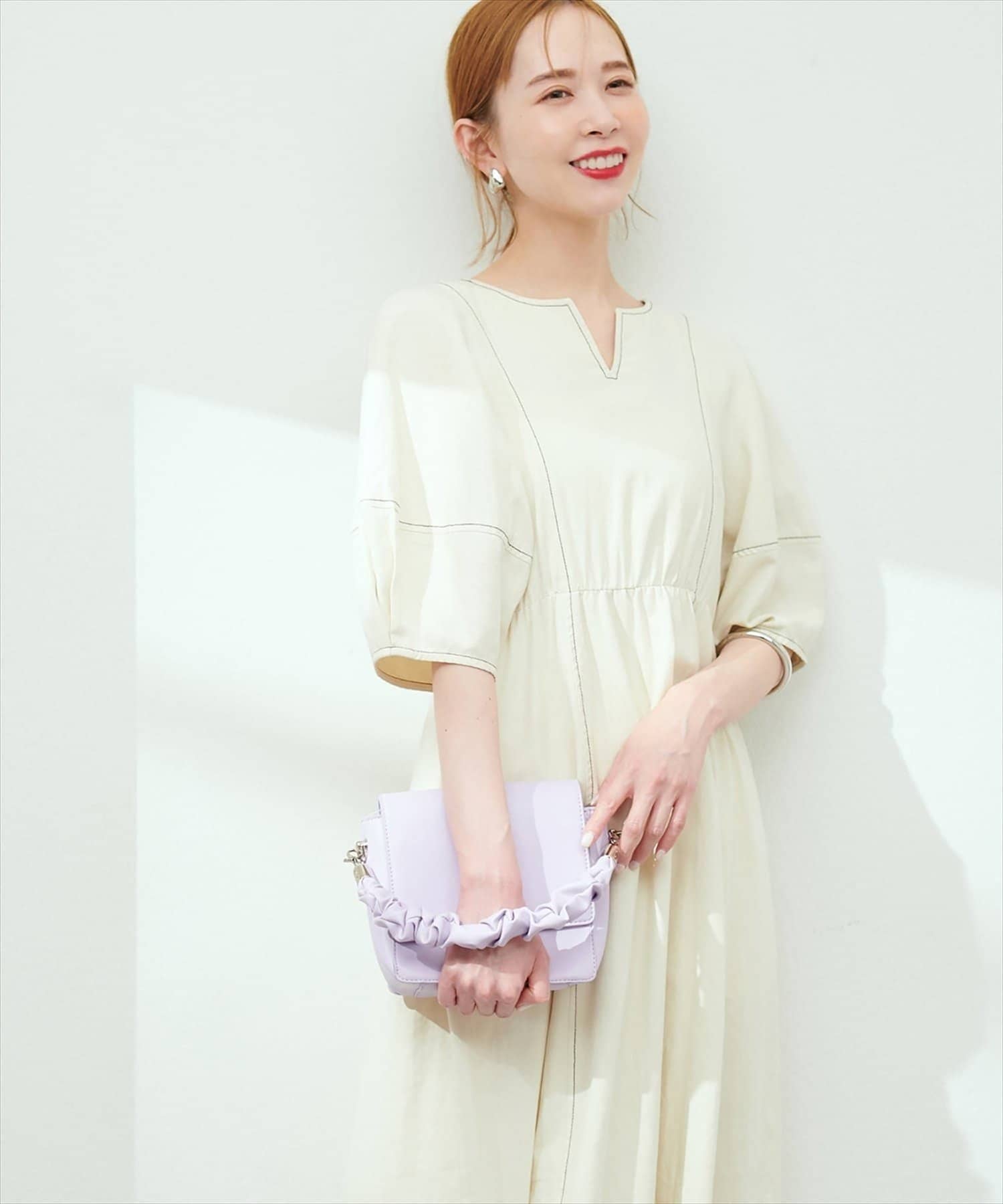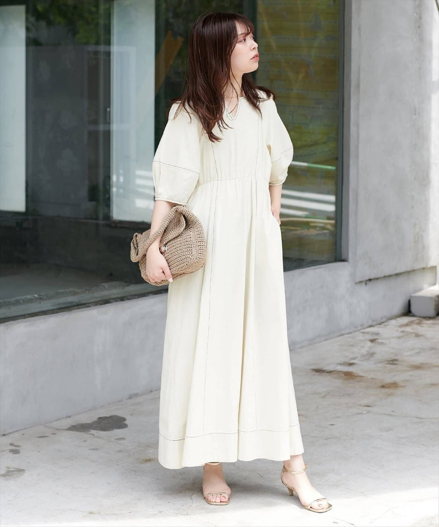購入場所:パルクローゼット予約販売で到着をとても楽しみにしてたワンピース。長さがすごく求めていた着丈だったので嬉しかったです。夏ワンピだったので涼しげなカラーホワイトを選んで正解でした。取り外し可能なウエストのベルトもないバージョン、リボン結びするバージョンとできるのがいい(*^^*)