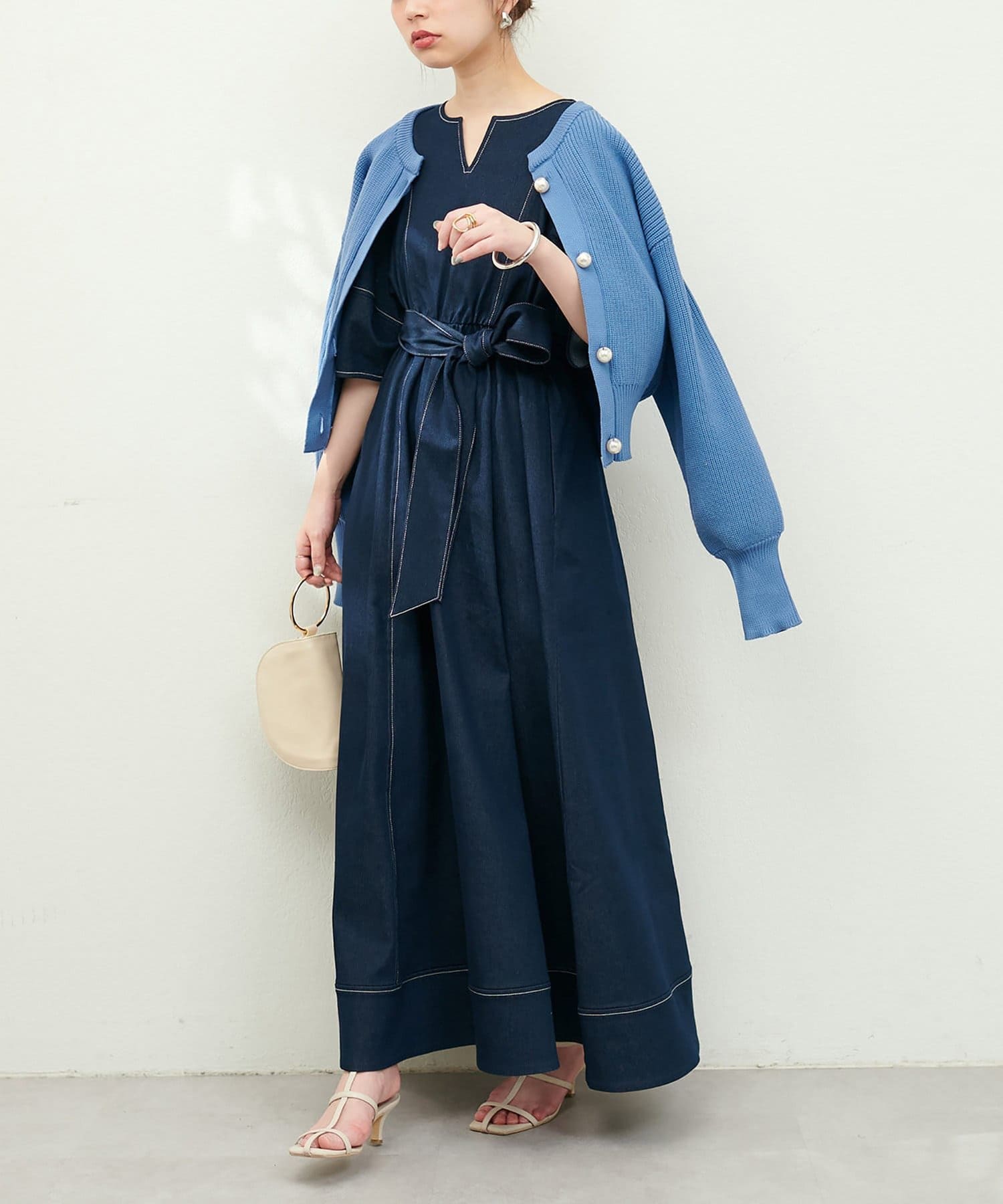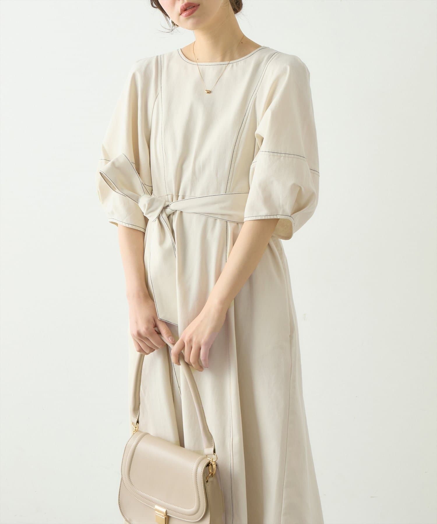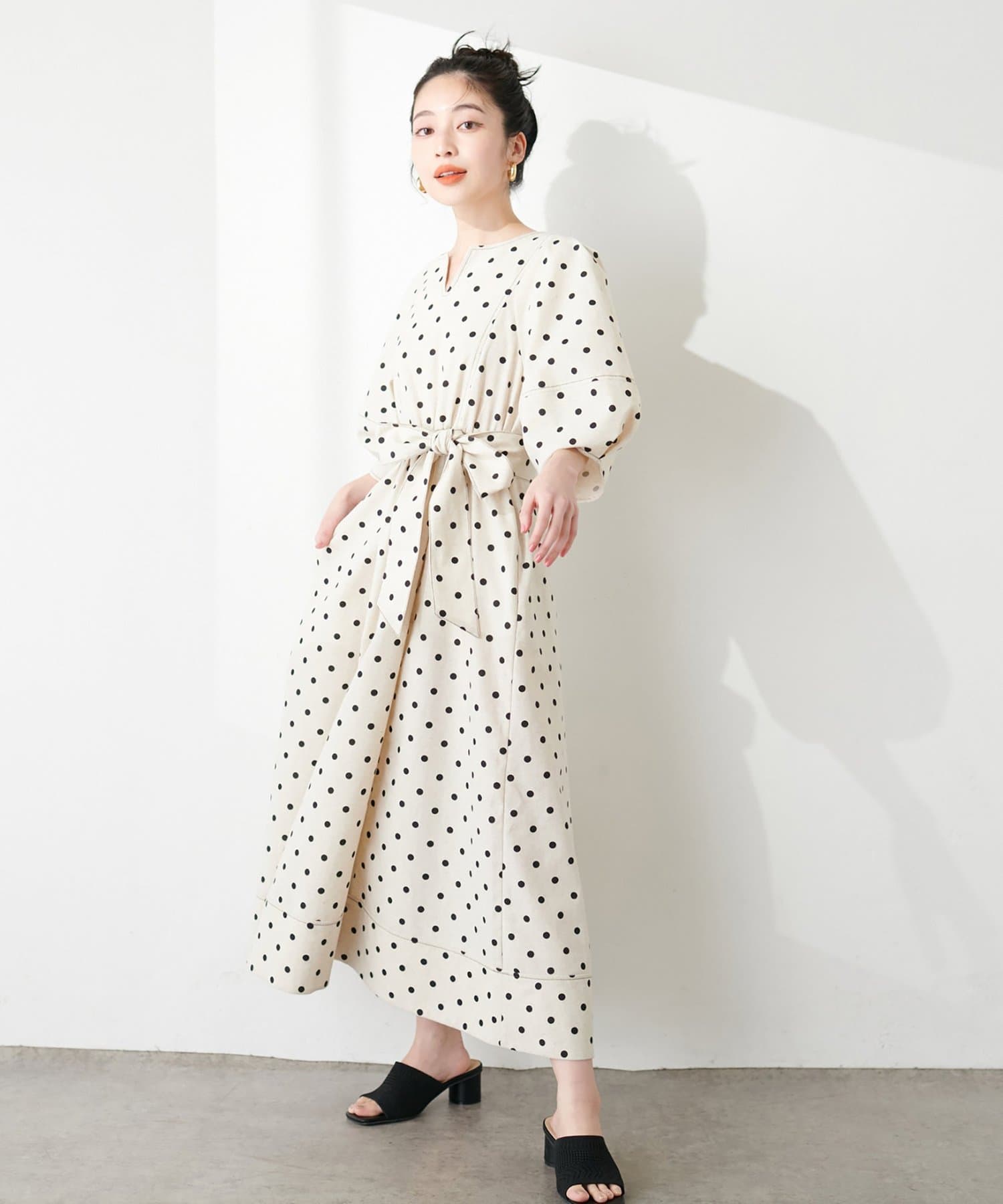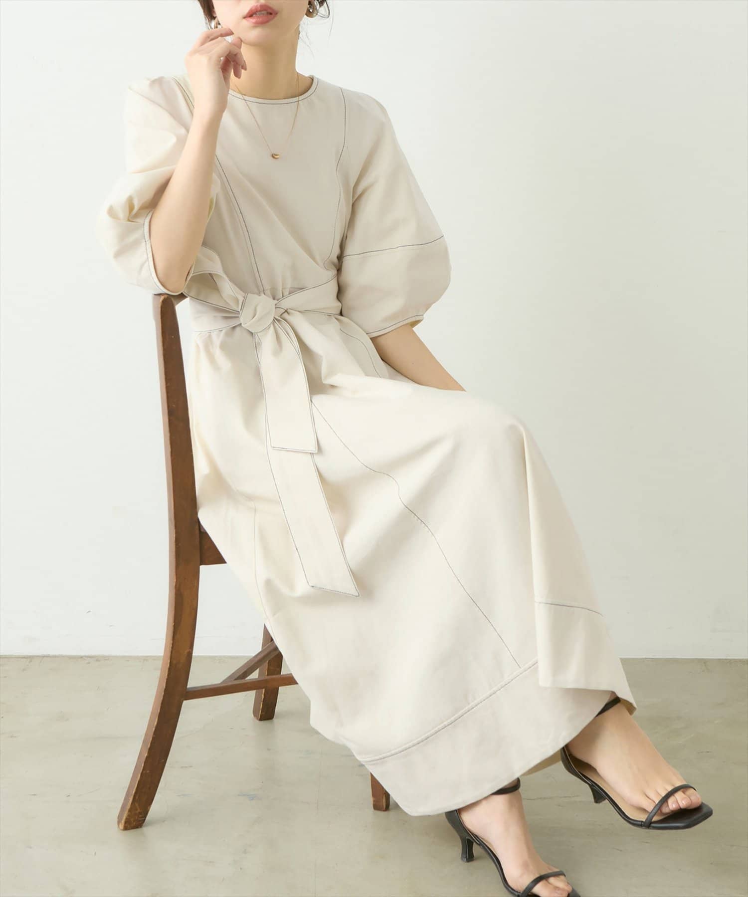 お好みでウエストリボンでマークし、スタイルアップな着こなしも楽しんで頂けます。