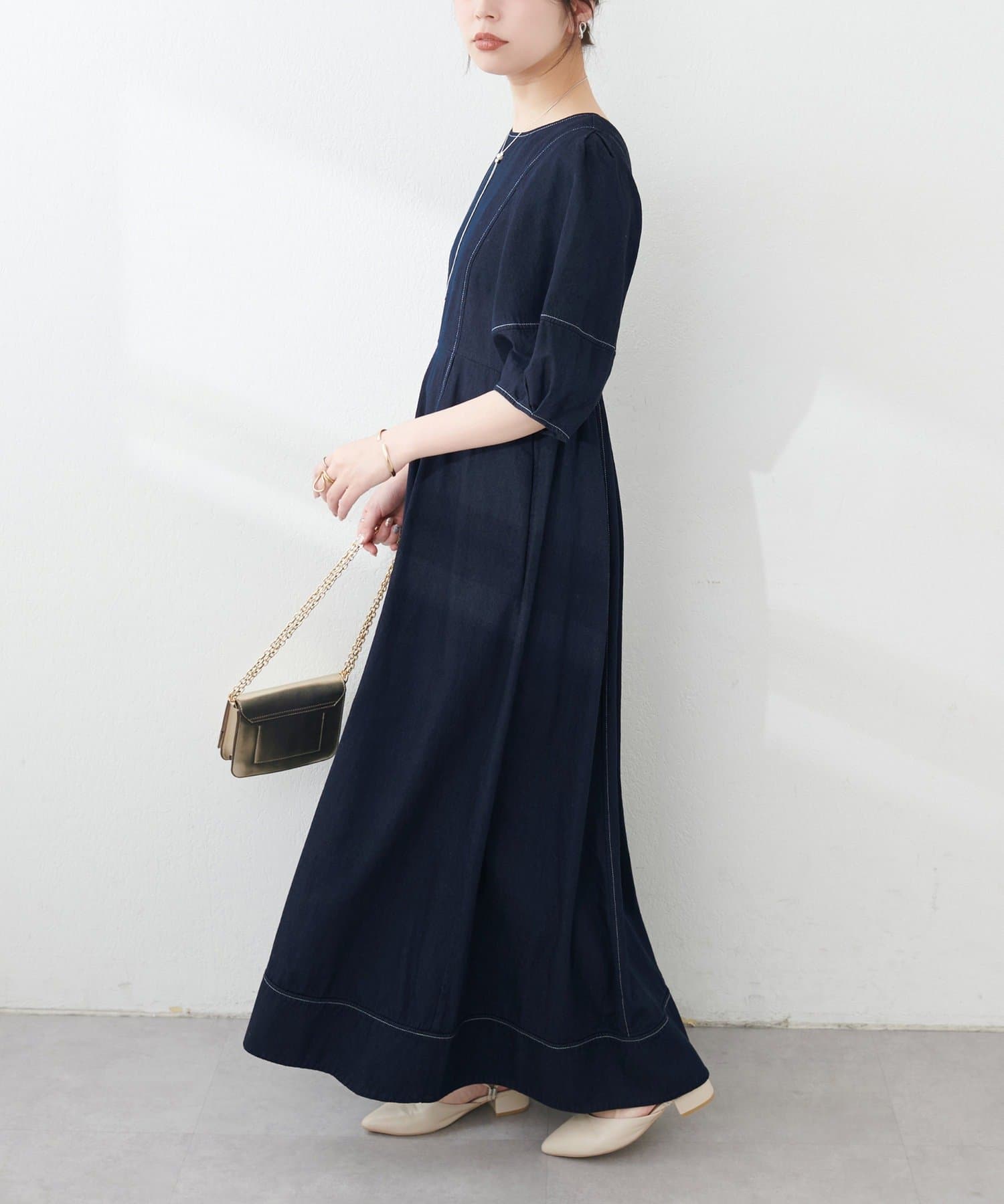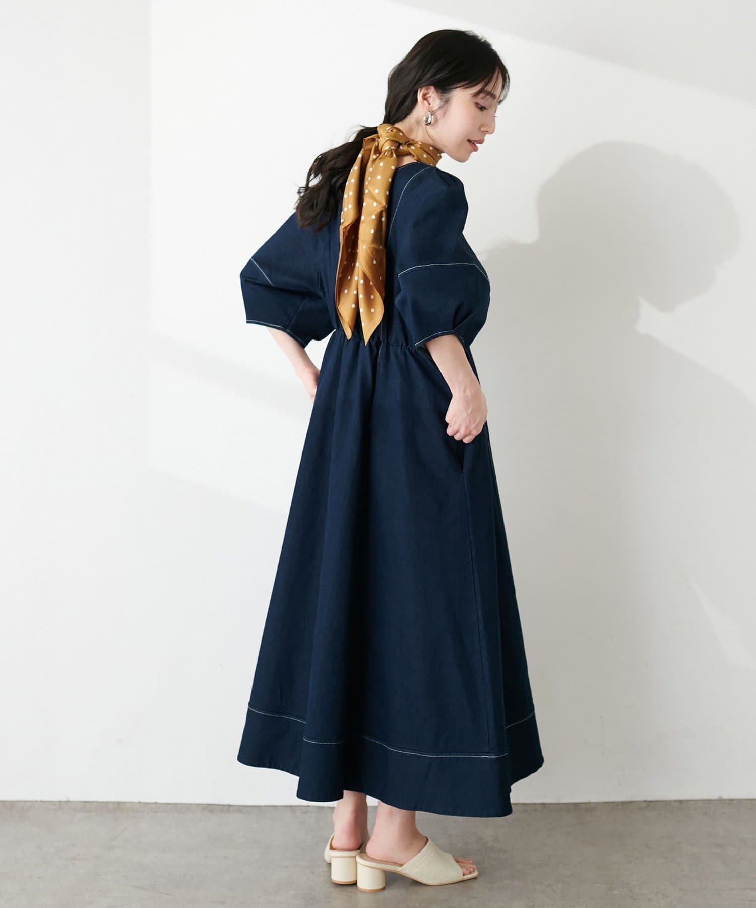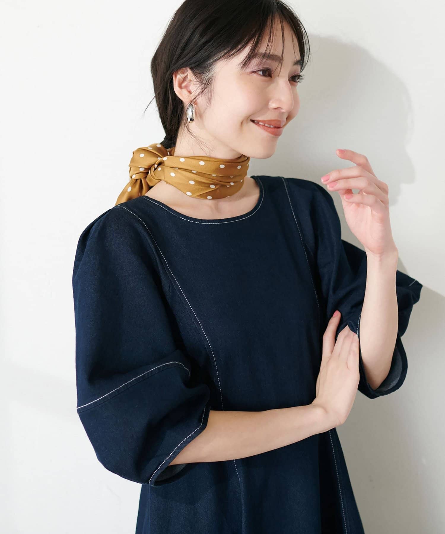 購入場所:パルクローゼット去年インディゴブルー、今年ドット購入です。かぶって着用しようとしたら着れない?!となりましたが、サイドのファスナーで無事着用出来ました。ドットの生地は薄めで、軽くて、涼しげで良さそうです。