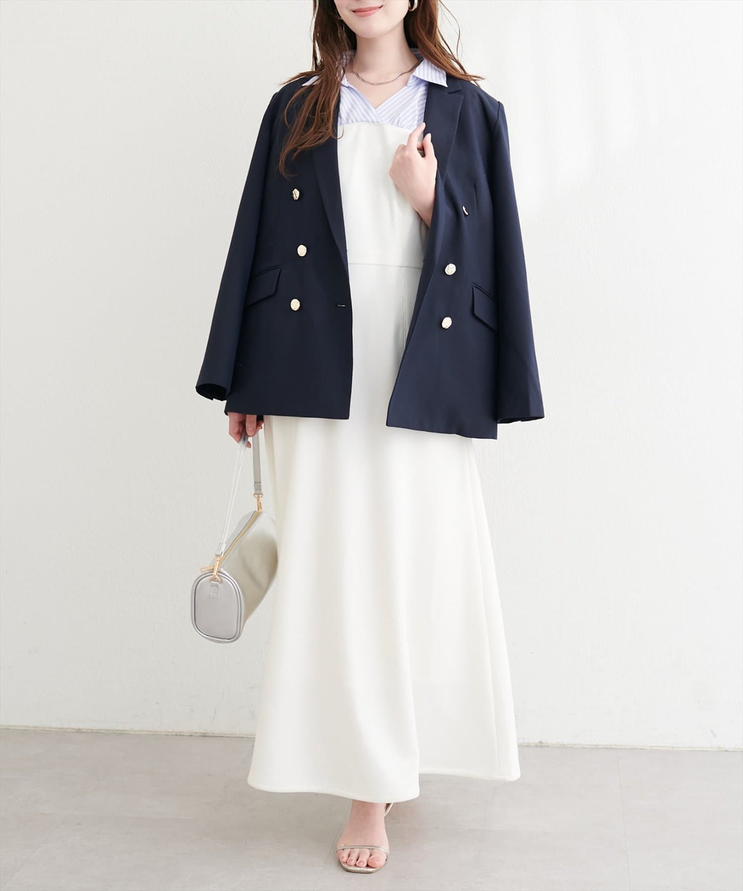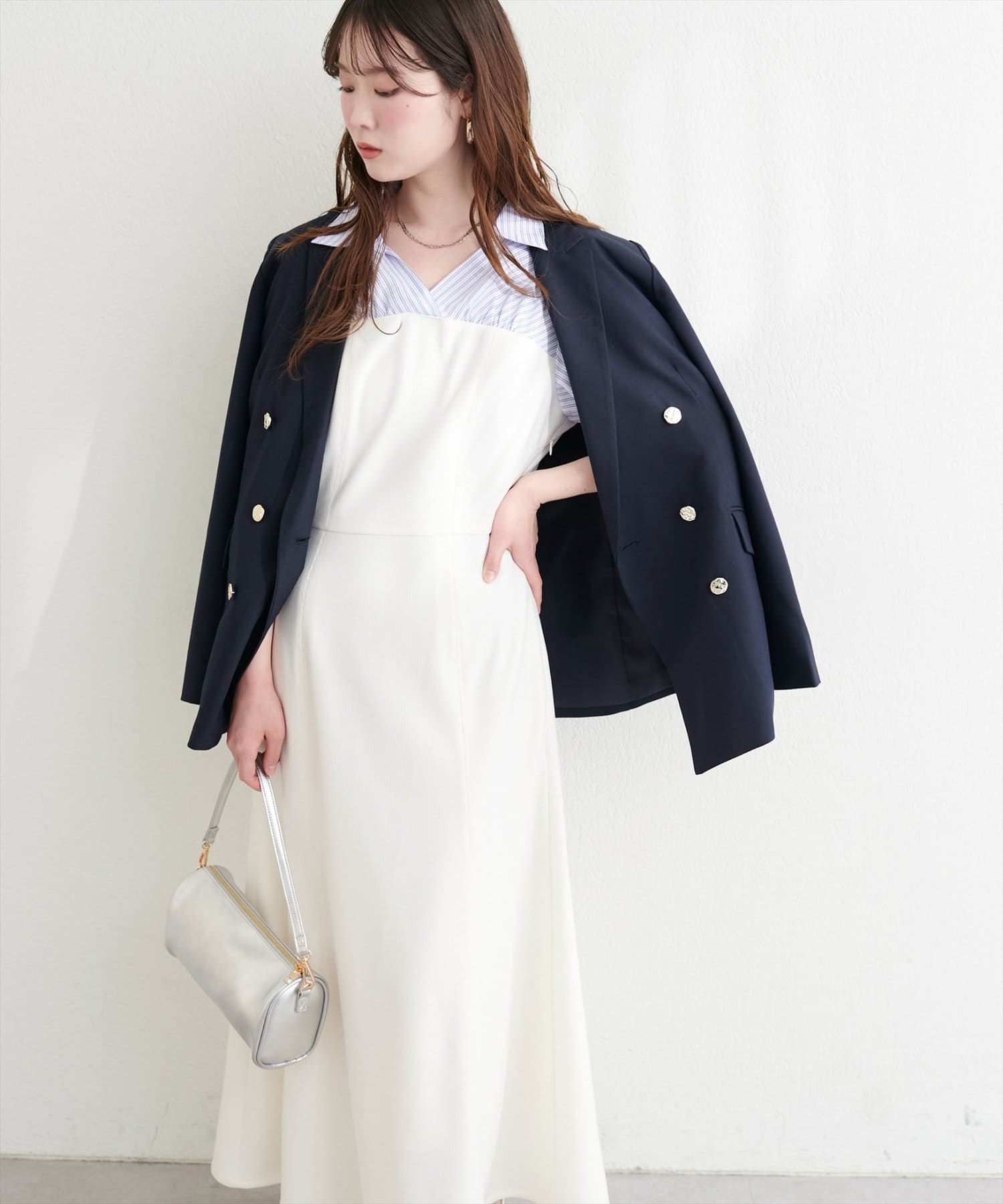ワンピース部分は、上品なIラインシルエットで、スタイルアップ効果も期待できます。