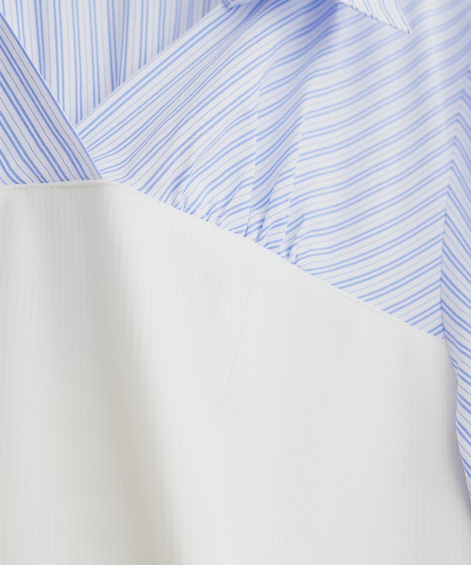 トップス部分は、涼しげな素材感のシャツ生地を使用し、クリーンで爽やかな印象を与えます。