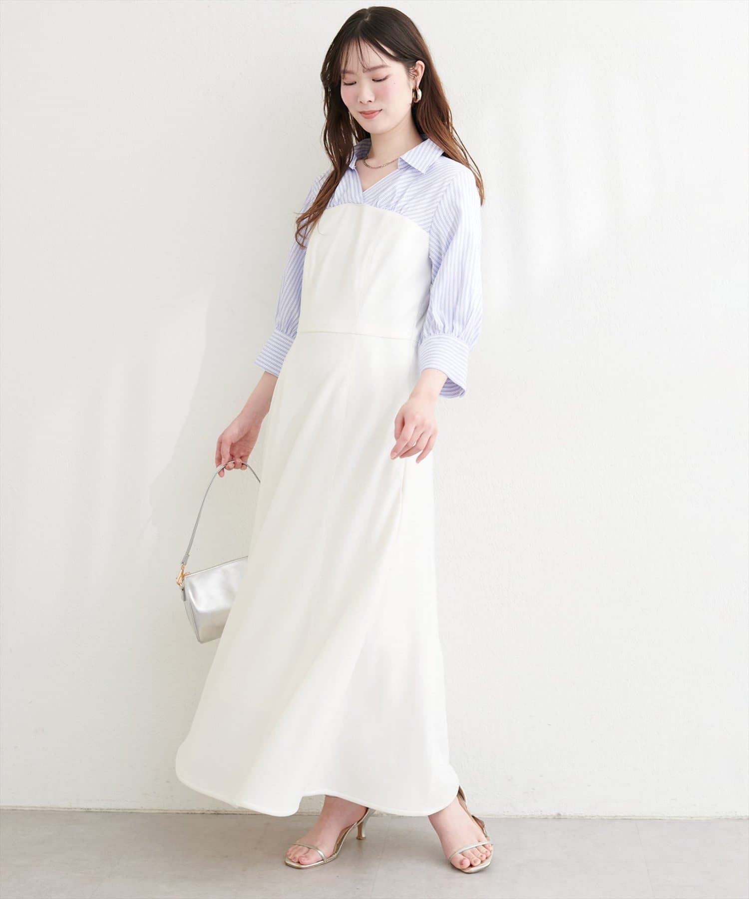 異なる素材を組み合わせた、デザイン性の高いドッキングワンピース。