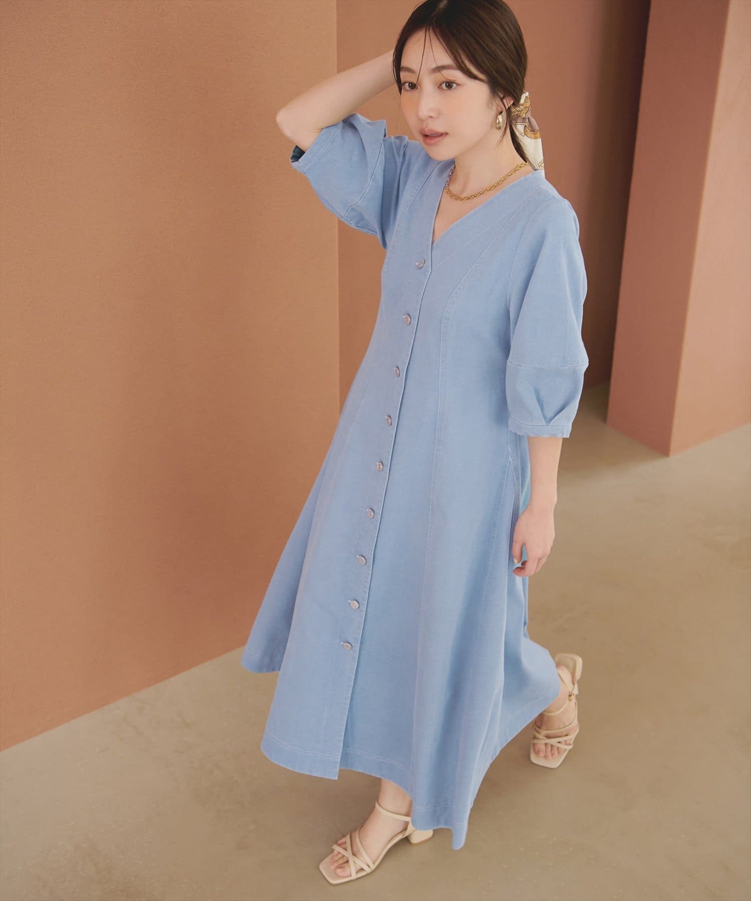 ストレッチ性でがあるので、普段使いから春のピクニックなど、様々なシーンに着ていただけます。