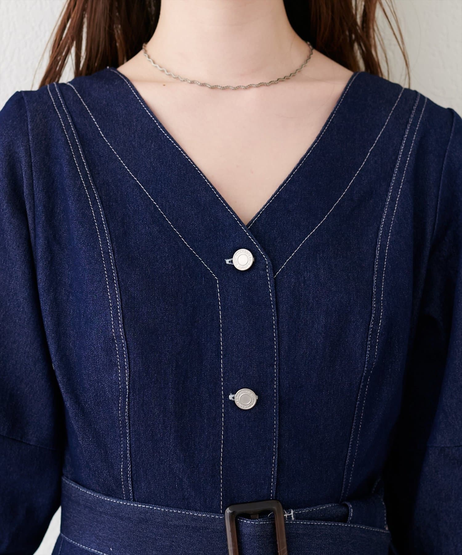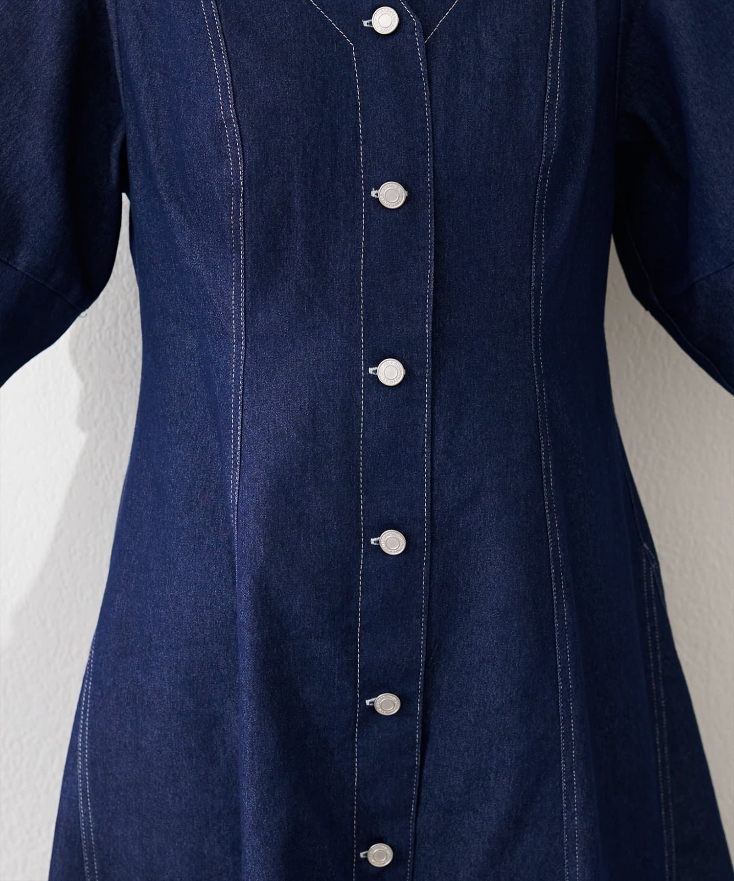 一列に並んだボタンが縦のラインを強調し、スタイルアップ効果も期待できます。