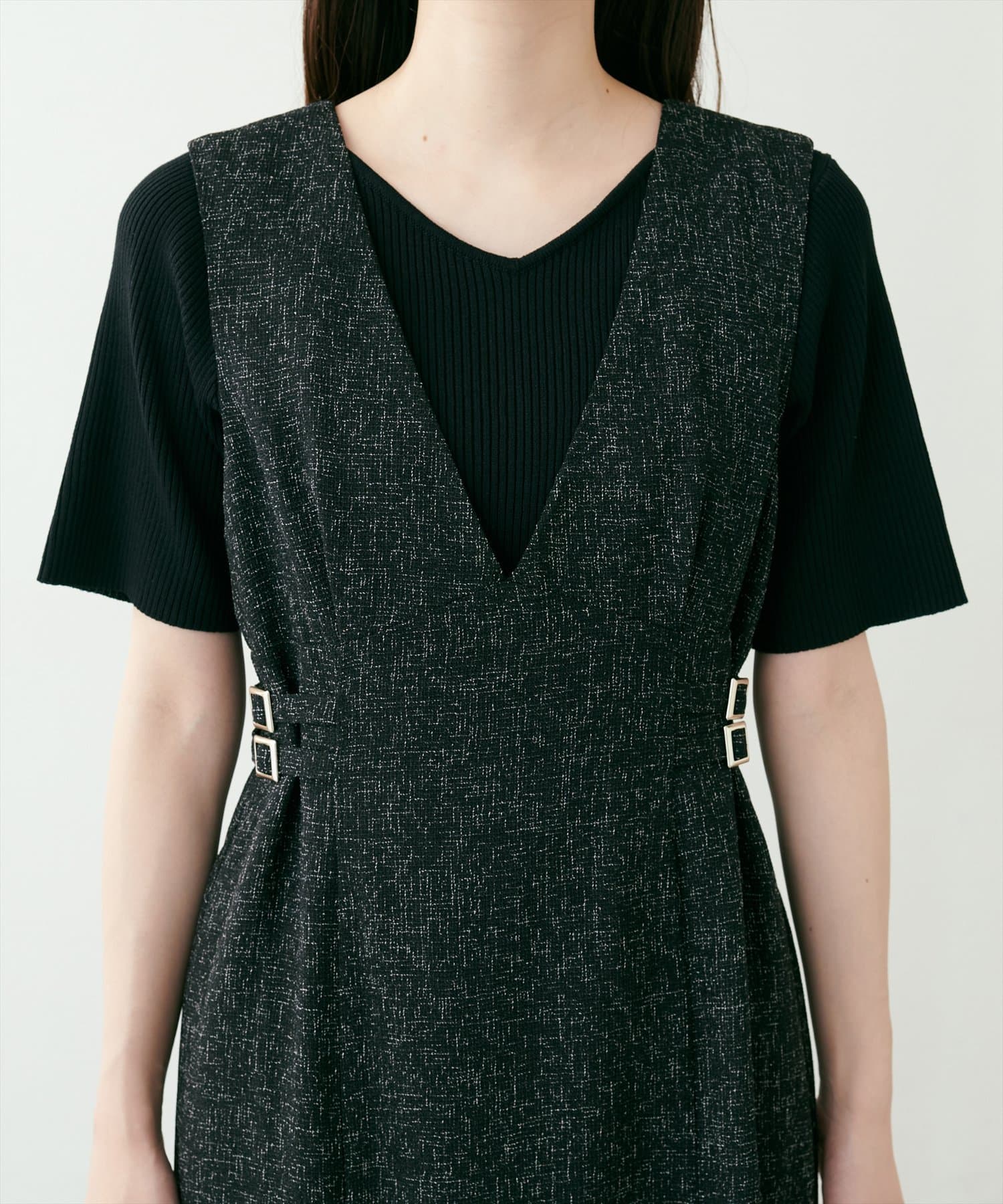 ウエストの切り替え位置が高くスタイルアップ効果がある他、サイドベルトで胴回りのシルエットもお好みに調整していただけます。
