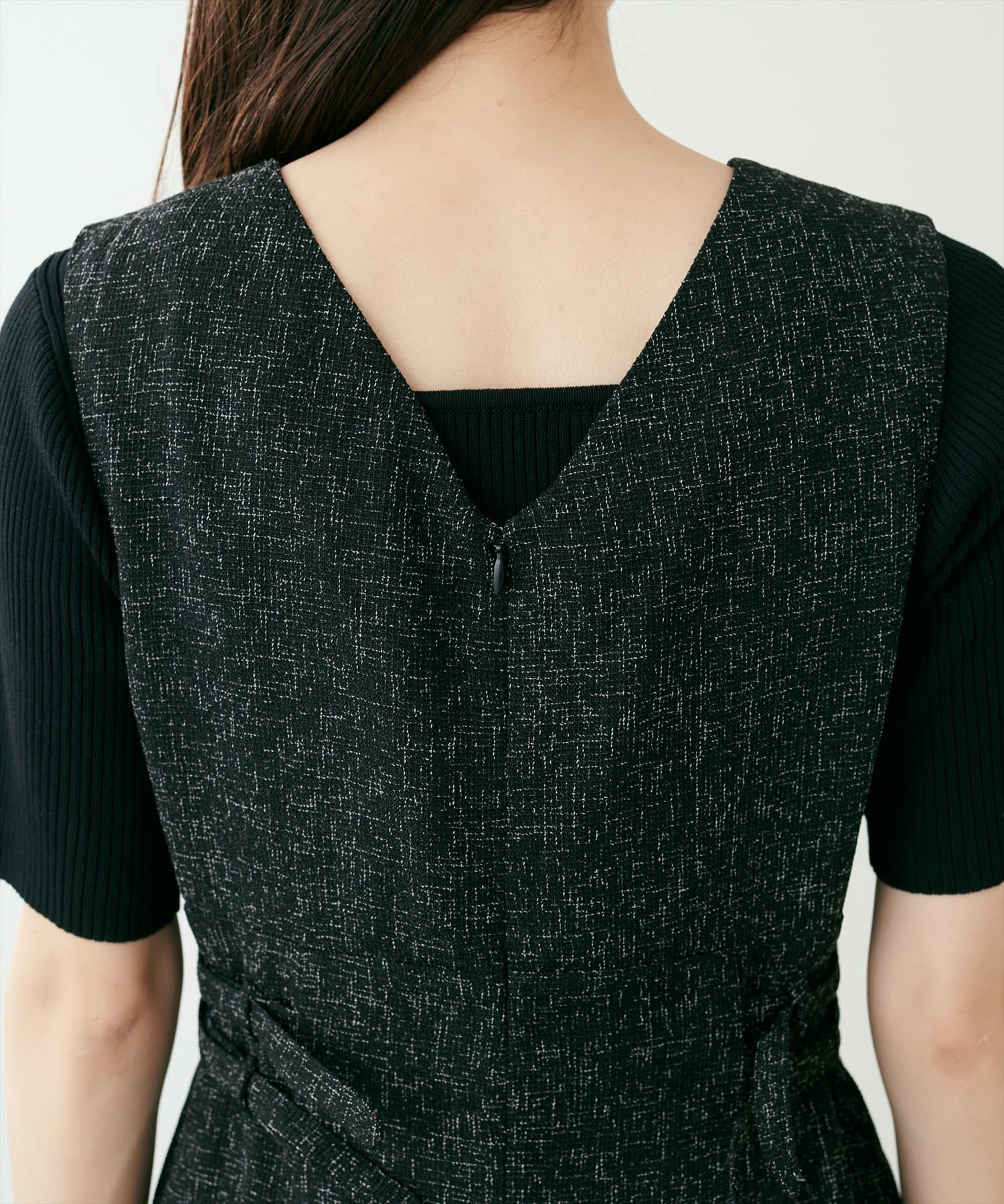 上半身のフロントとバックはVになっており、すっきり華奢見せするデザインです◎