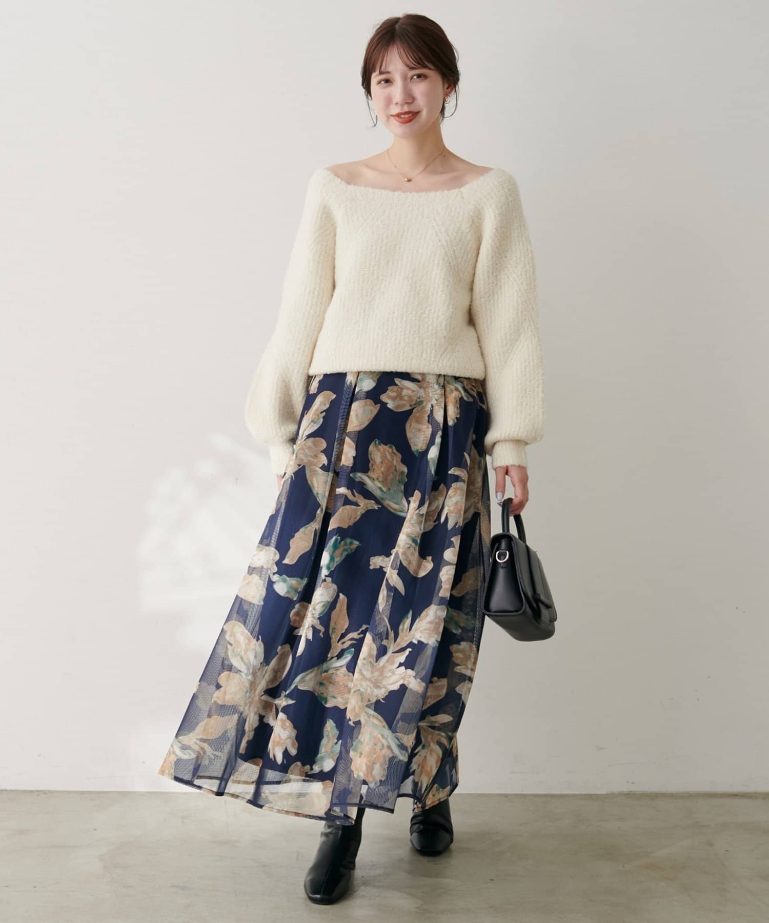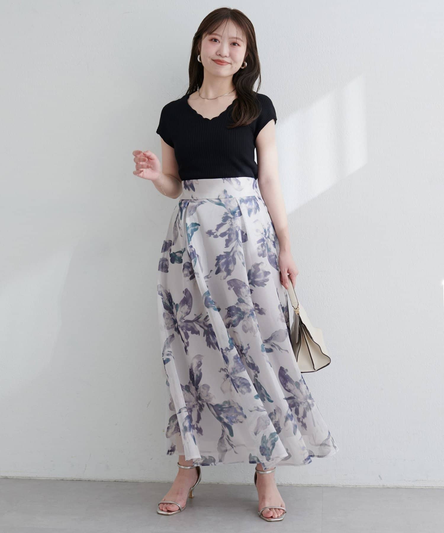 動くたびにふわりと揺れるシルエットが、コーディネートに軽やかさと華やかさをプラス。