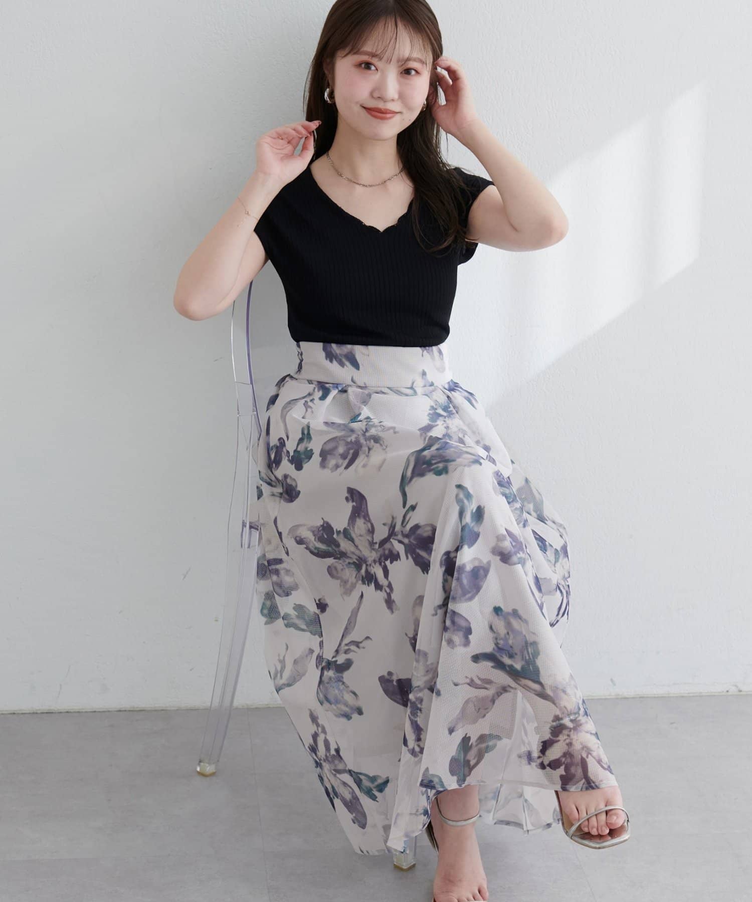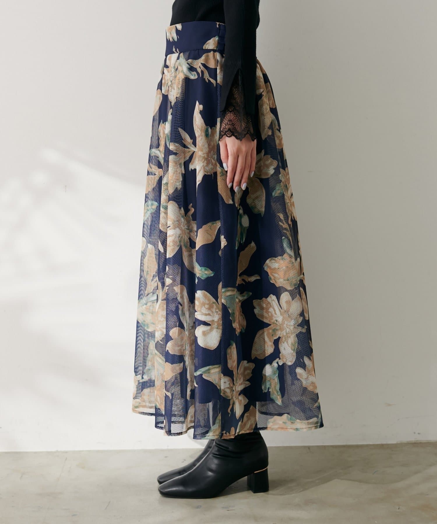 エアリーな透け感に心ときめく、大人のためのロマンティックメッシュスカート。
