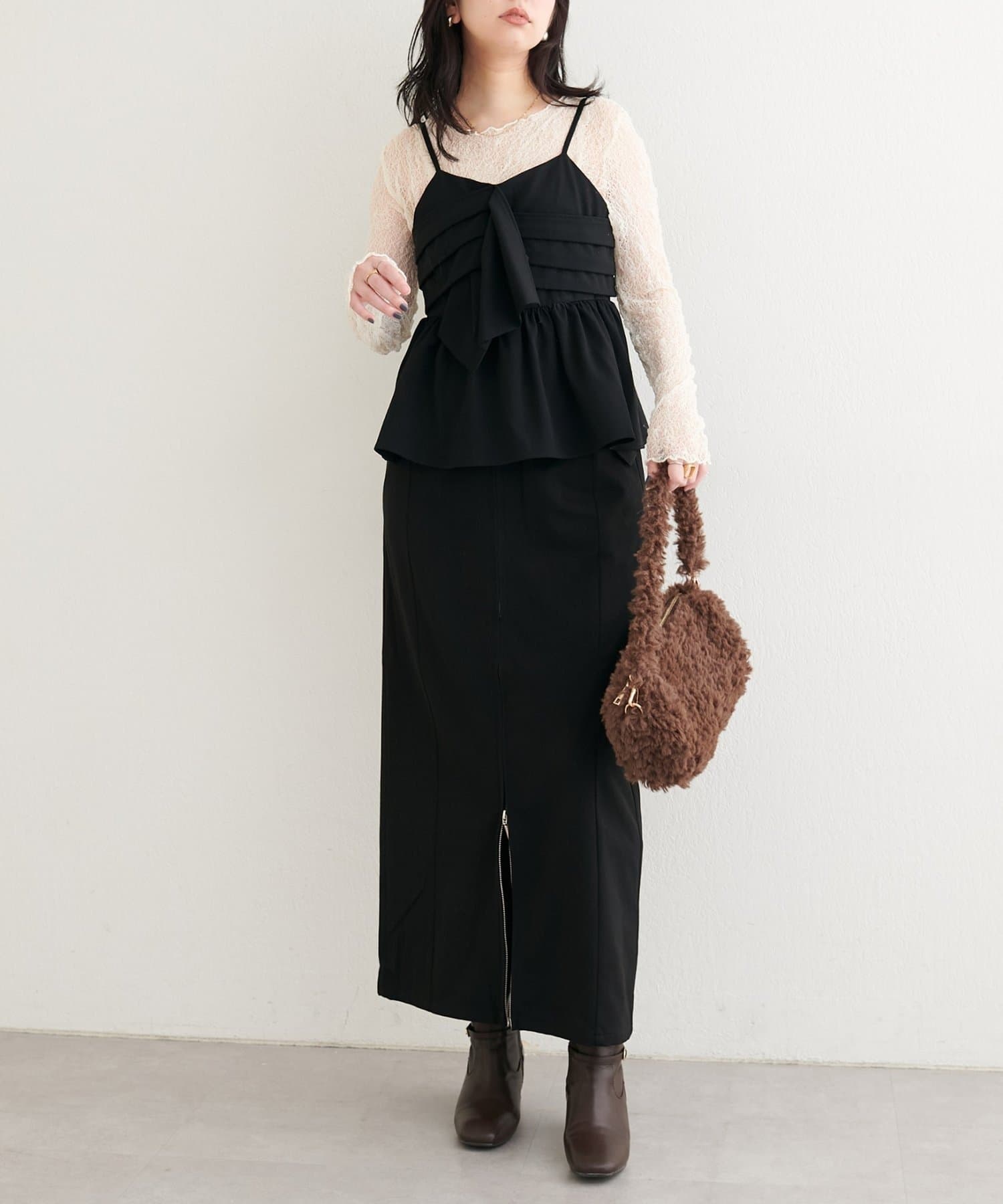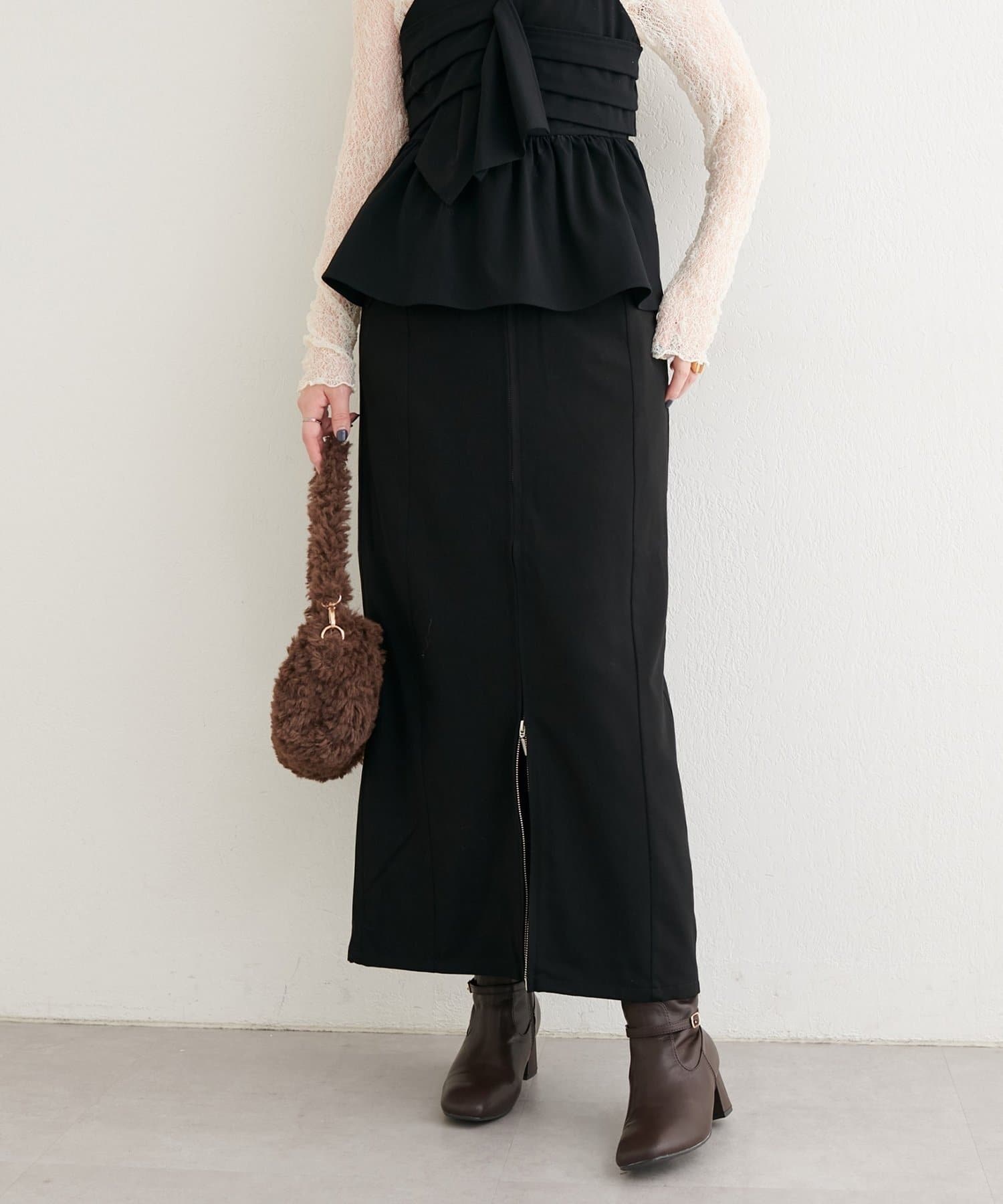 フロント部分にジップが施されており、ジップを開けてスリット見せして着るのがおすすめです。