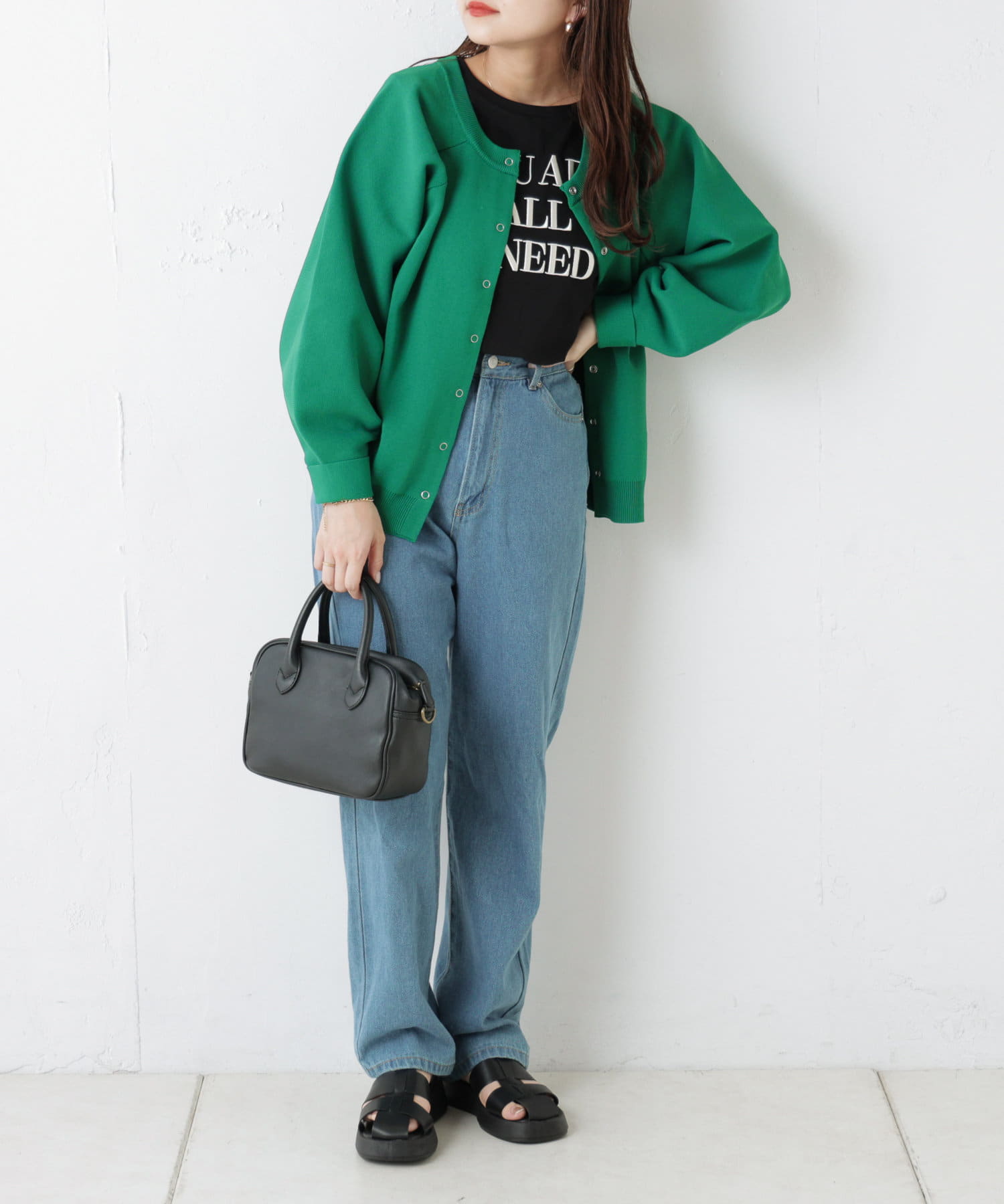 ・タートルネックや華奢なネックレスをつけて、綺麗めに仕上げるのも◎