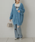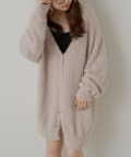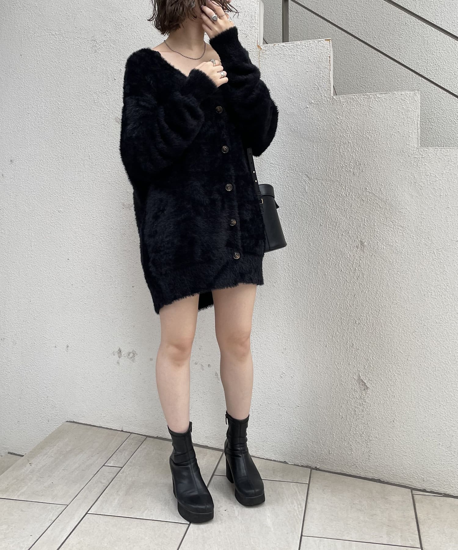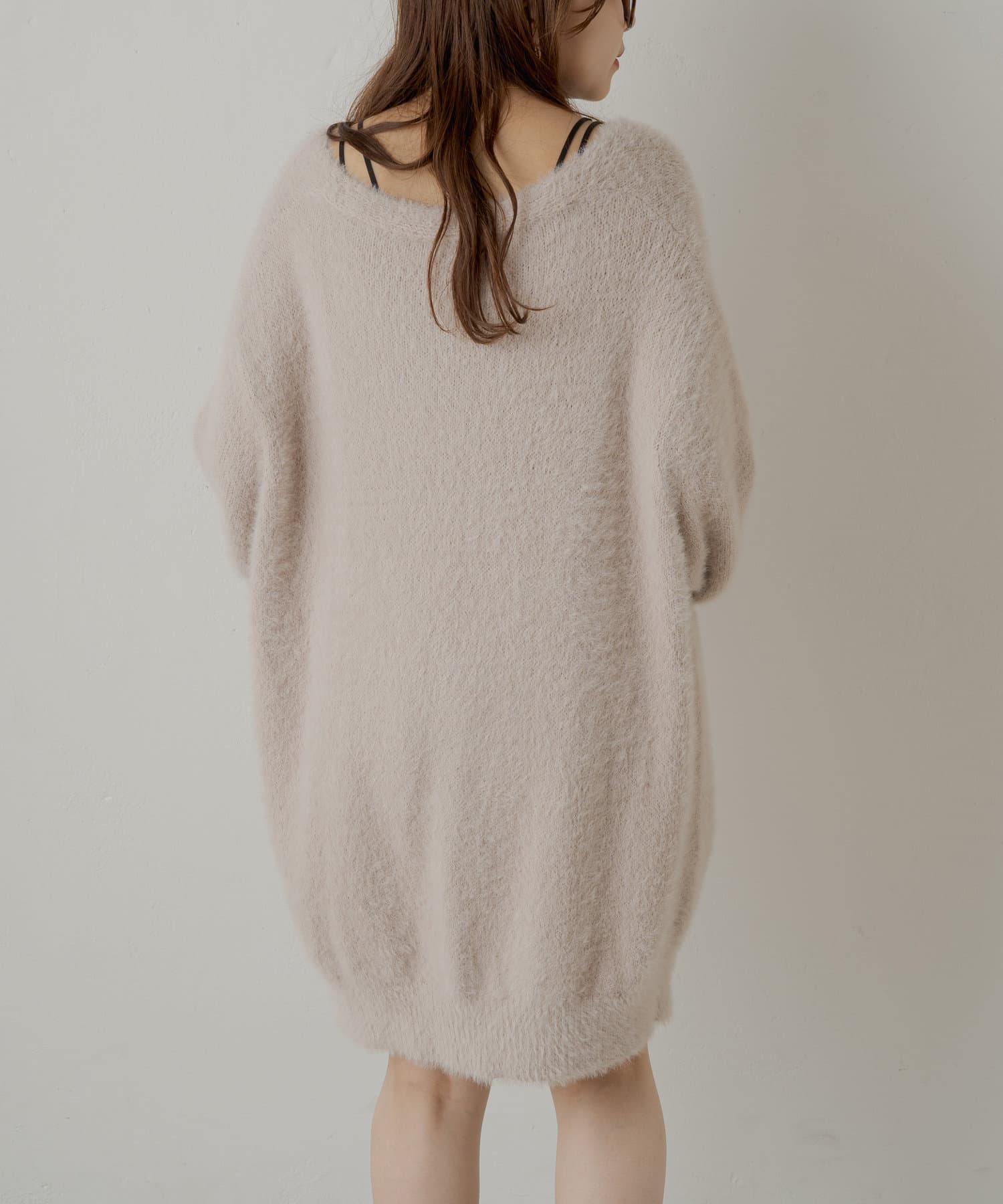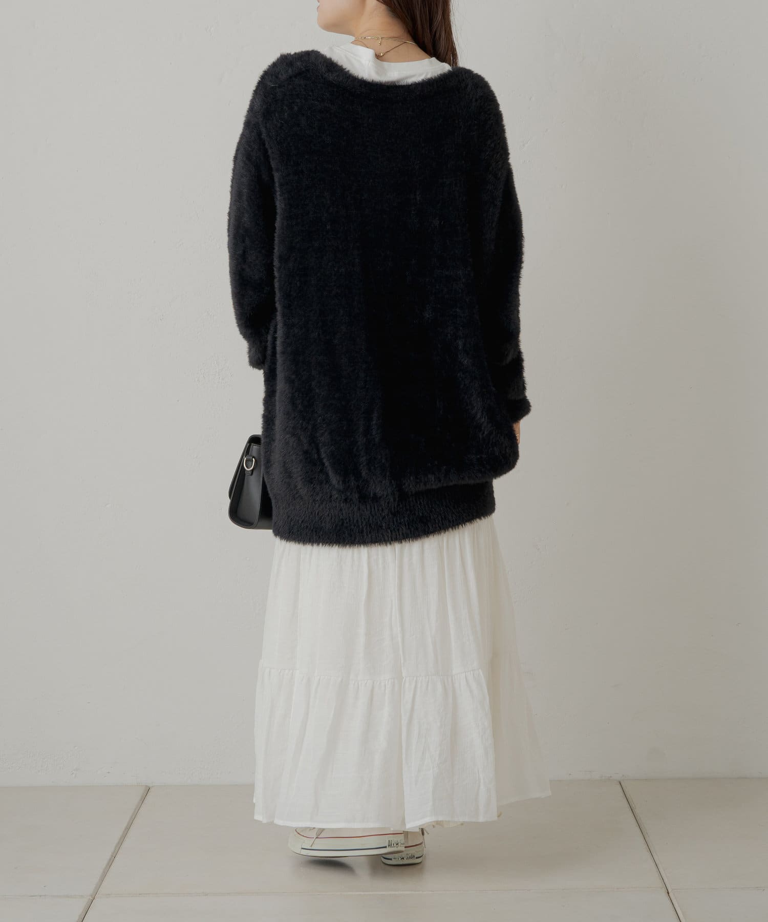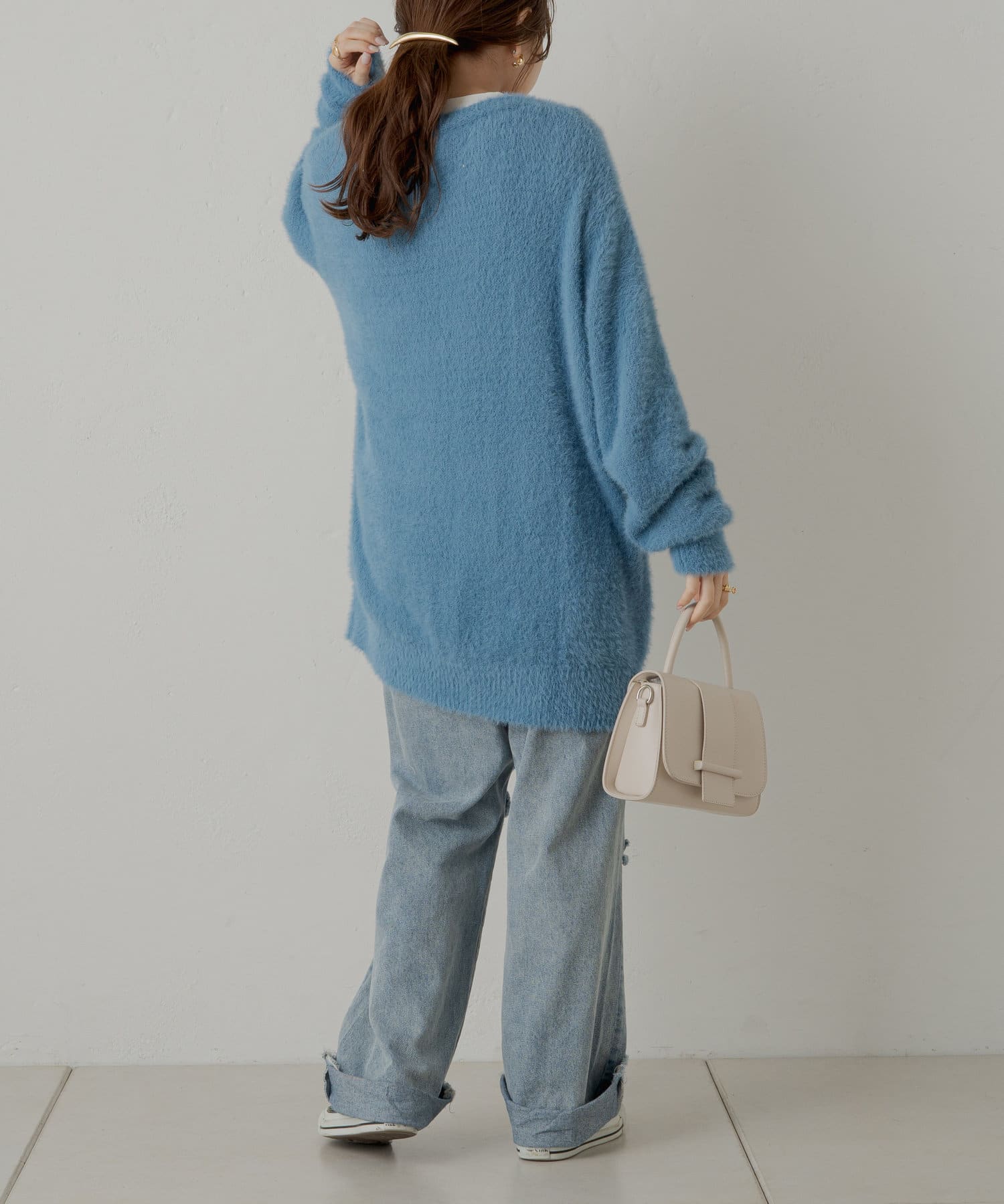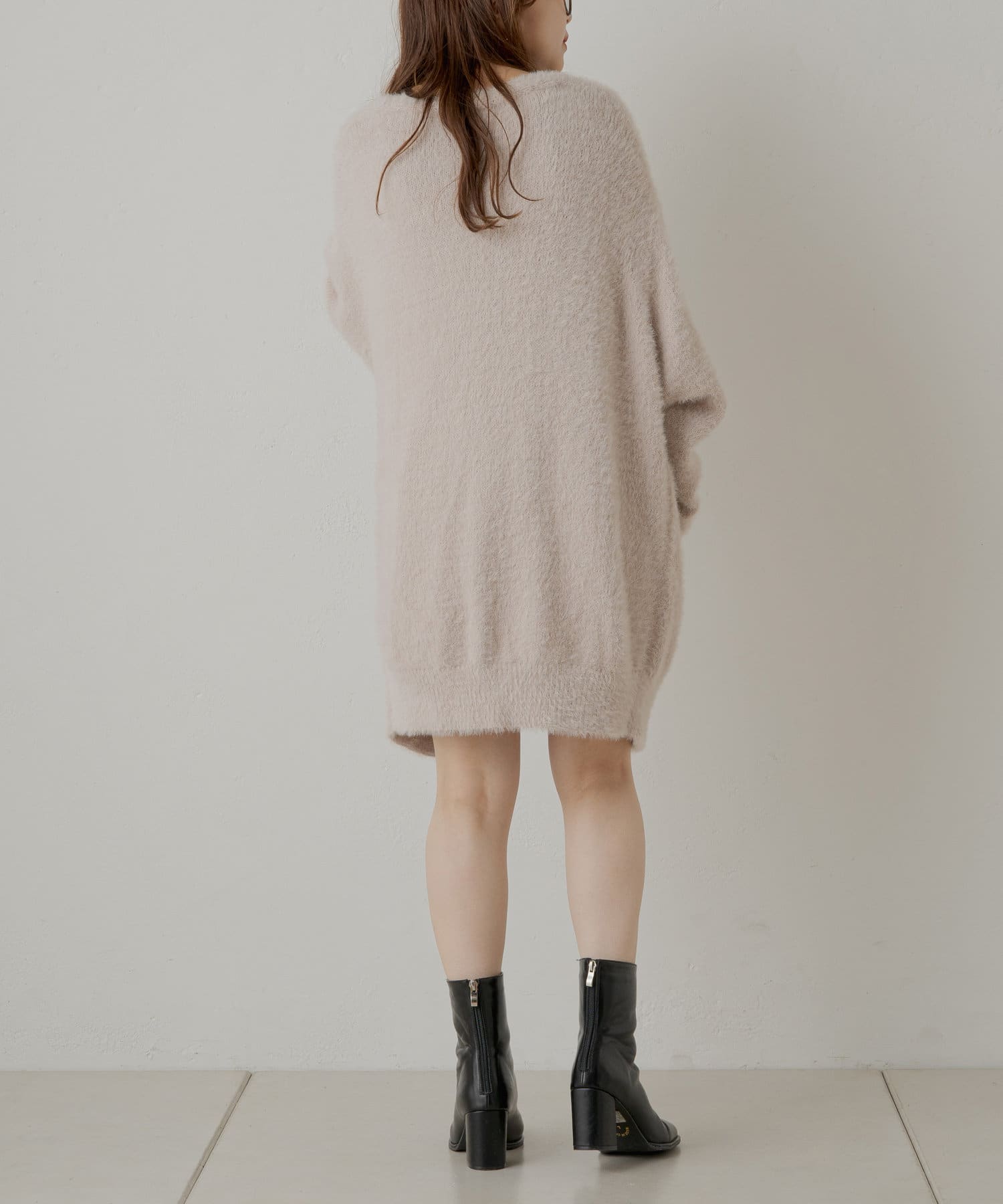 ・ふわふわしたフェザーヤーンで表情たっぷりに仕上げたビッグシルエットのニットカーディガン。