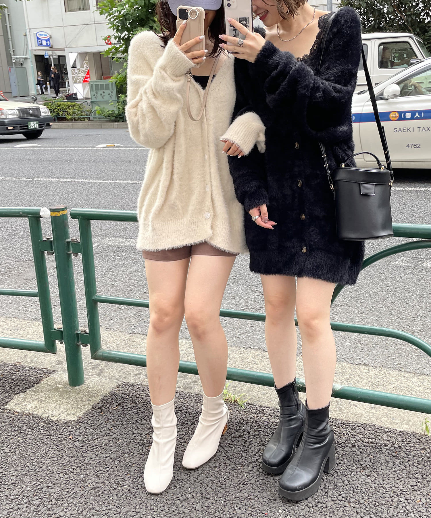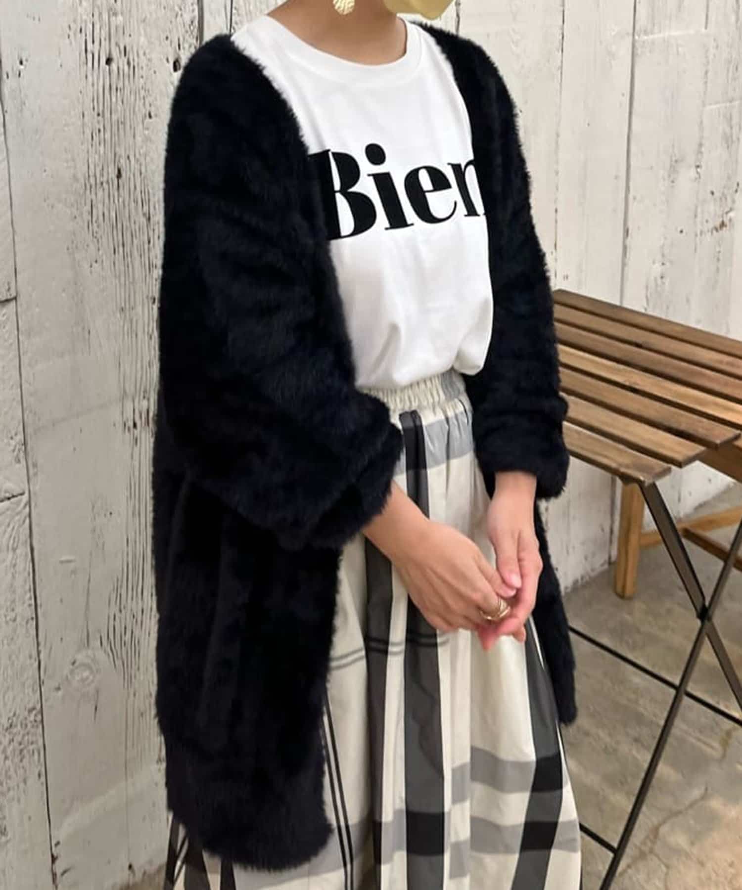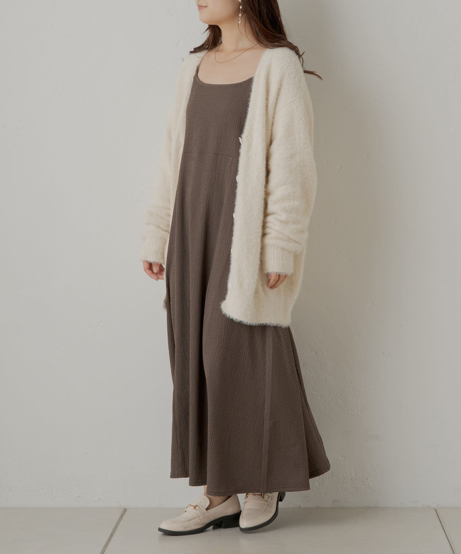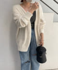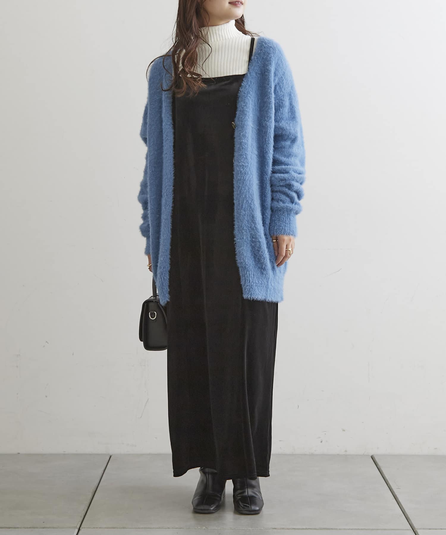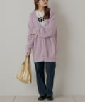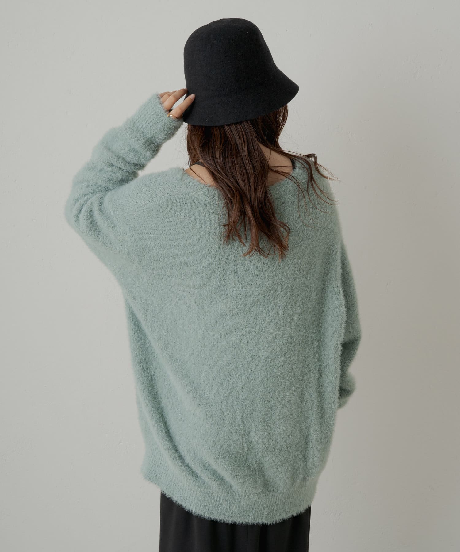 ・ふわふわしたフェザーヤーンで表情たっぷりに仕上げたビッグシルエットのニットカーディガン。