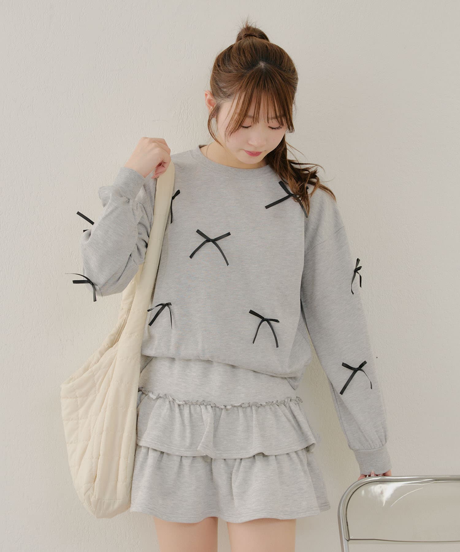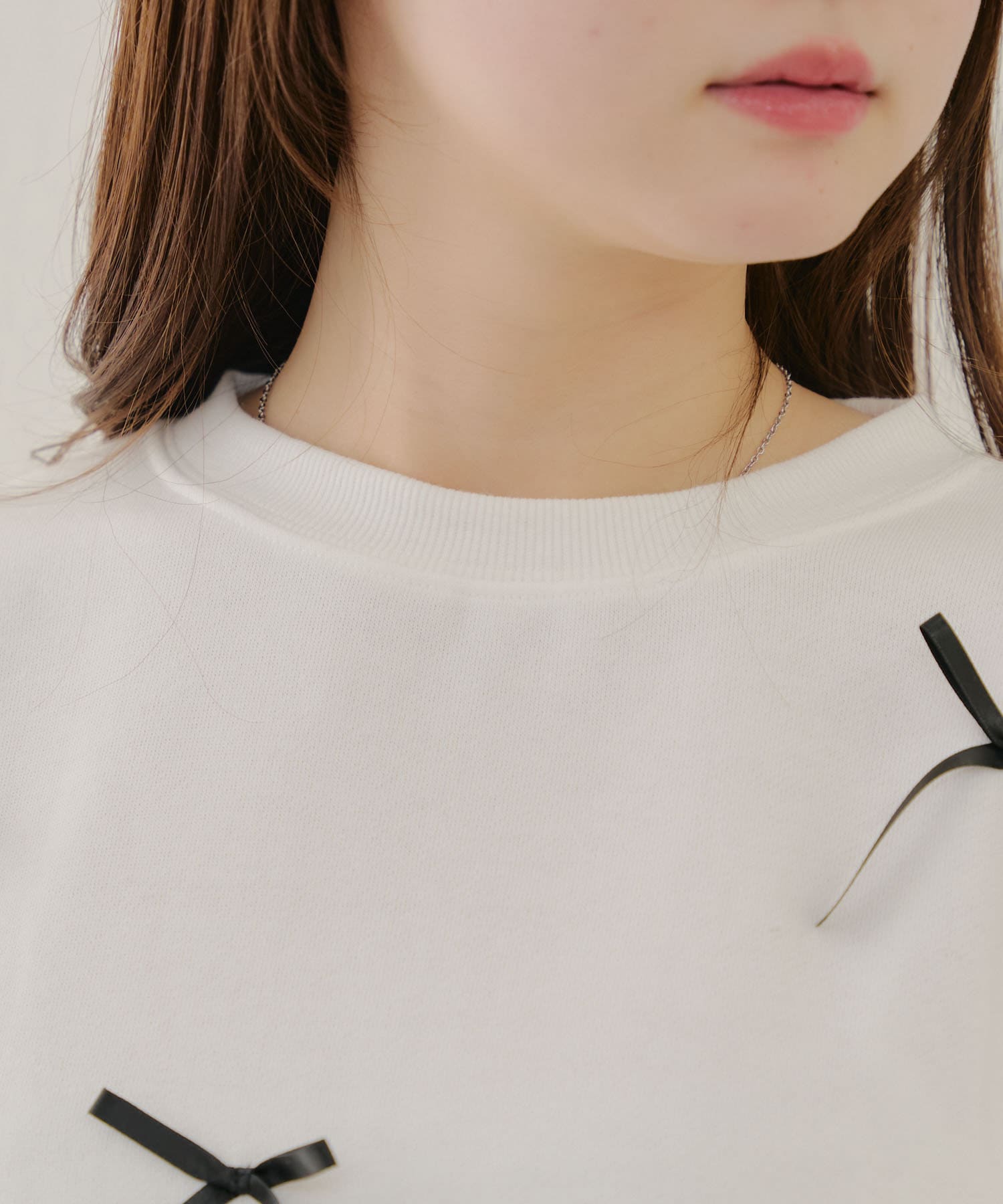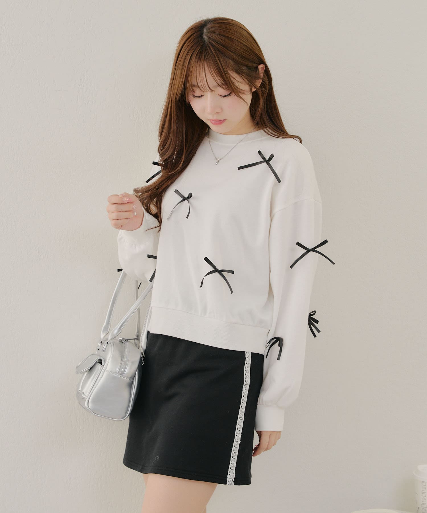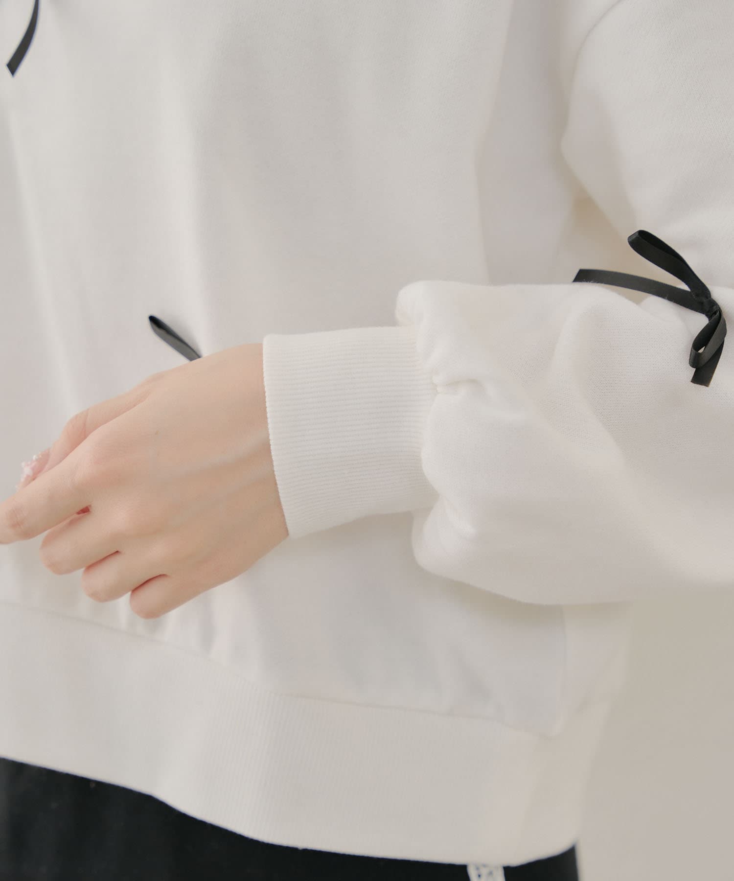 ・リボンをちりばめ、トレンド感満載のガーリーなスウェット