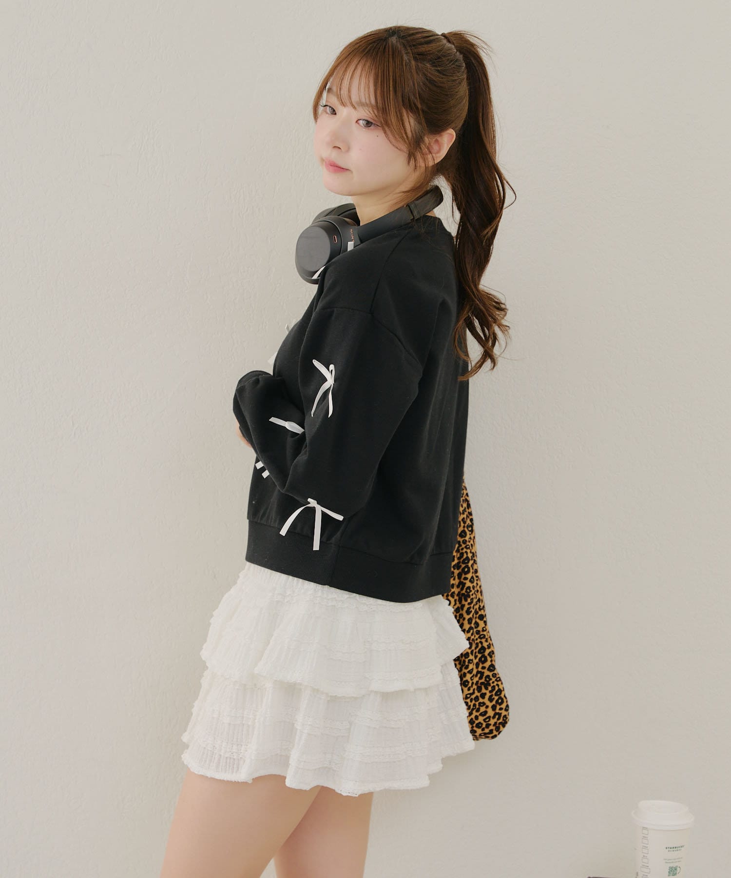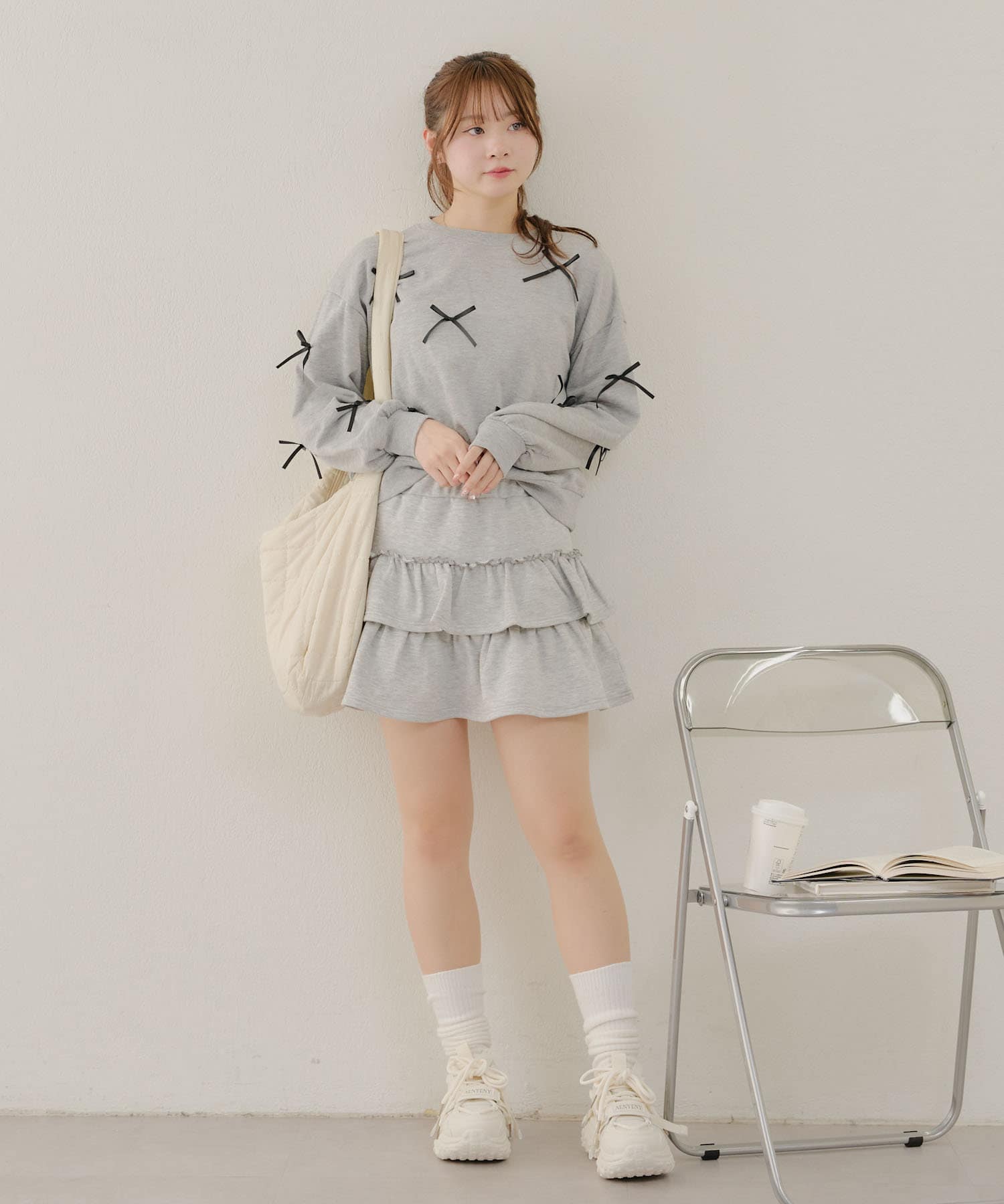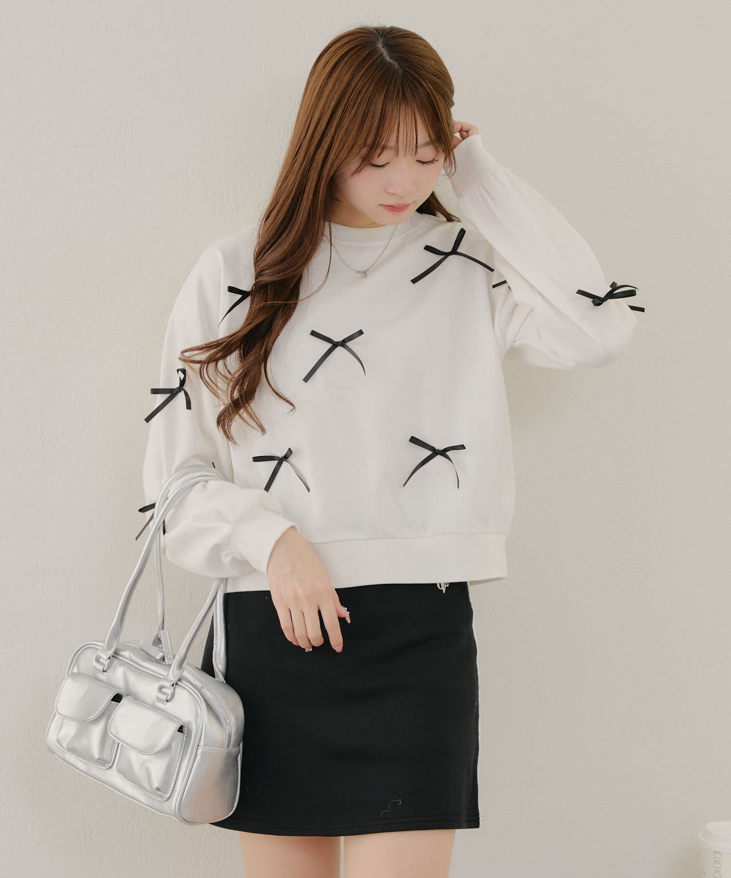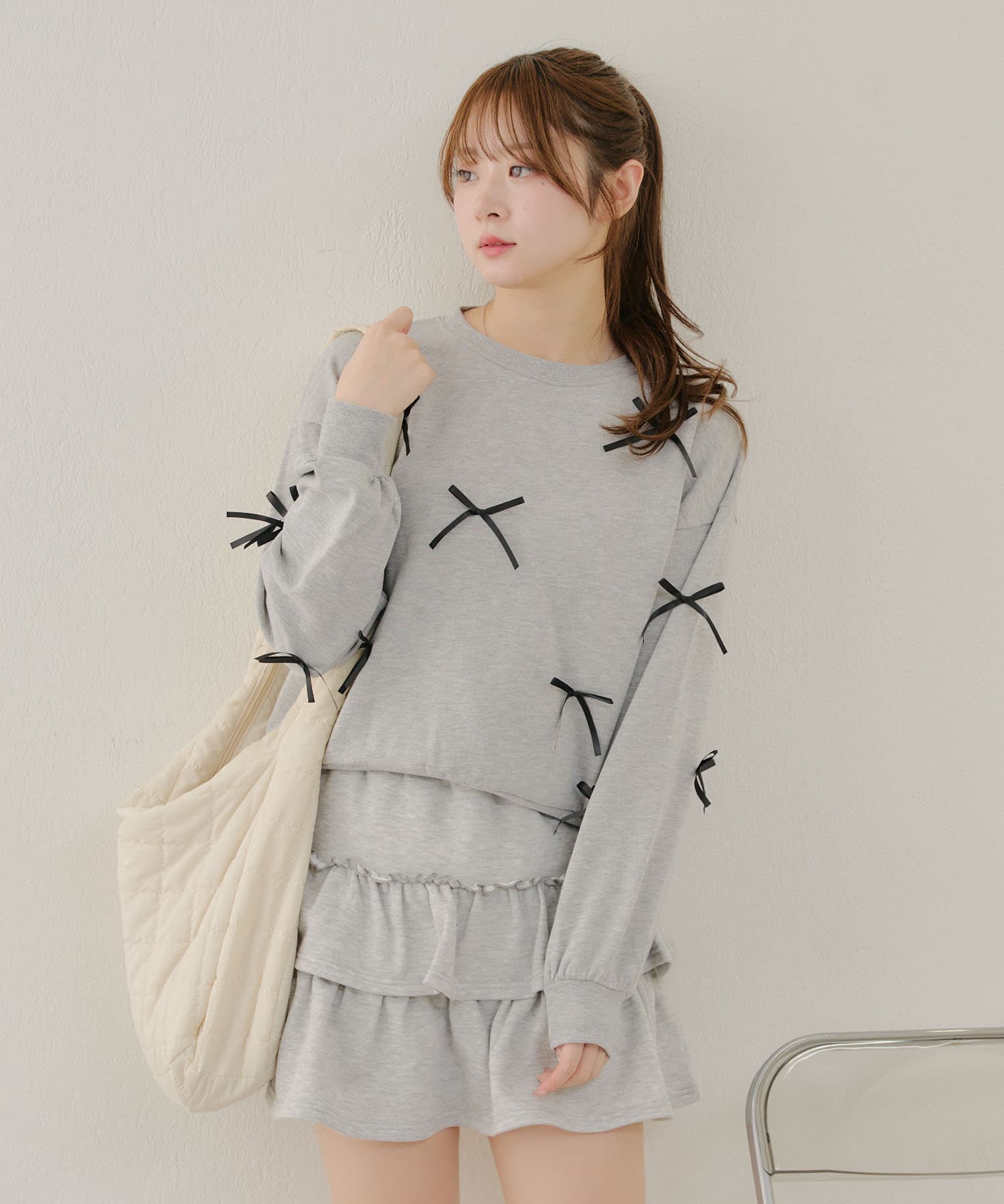 ・リボンをちりばめ、トレンド感満載のガーリーなスウェット