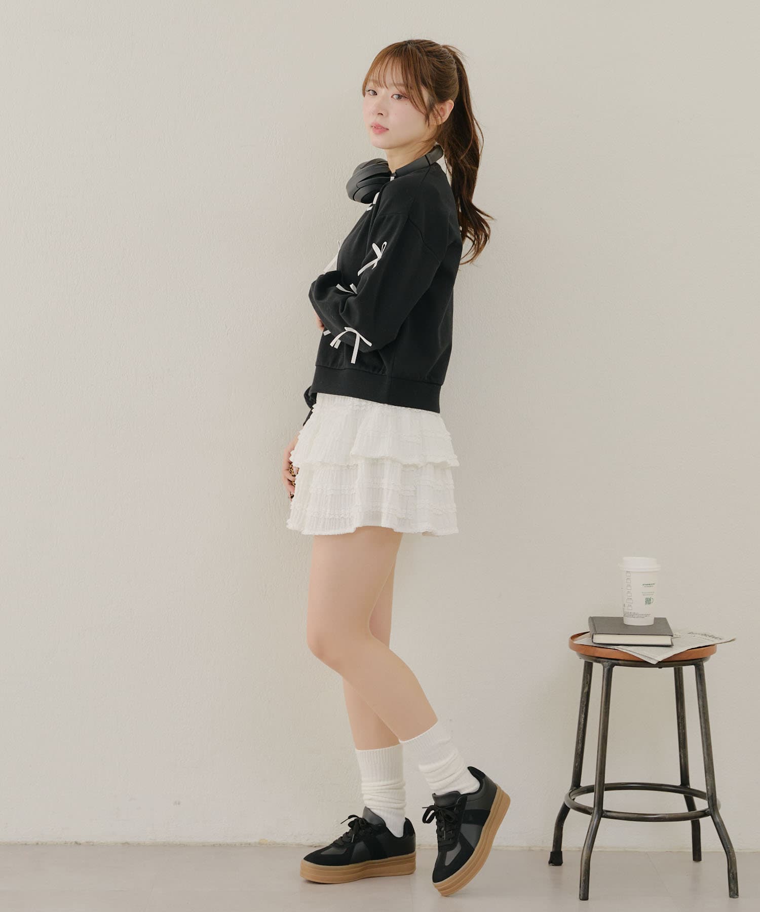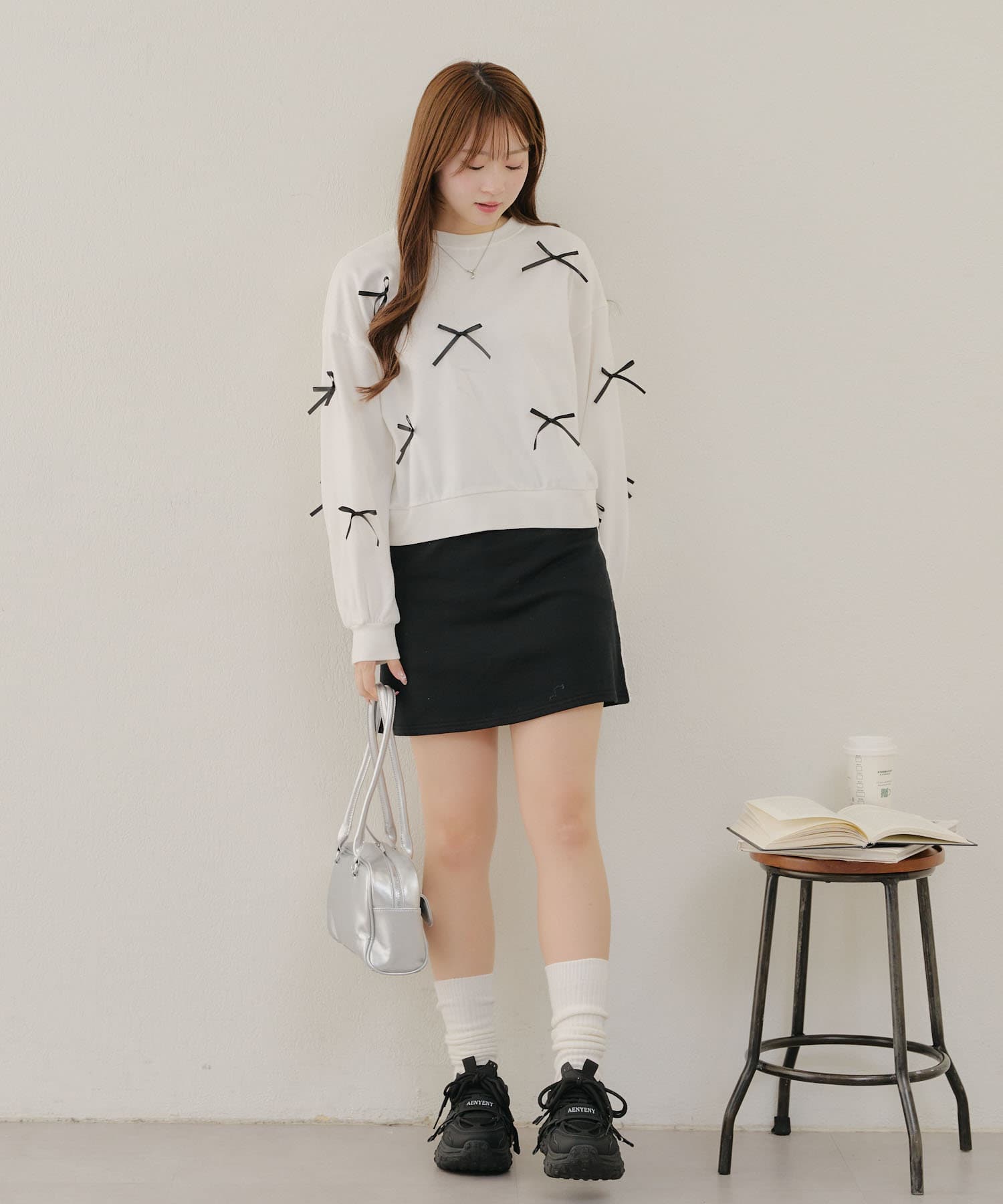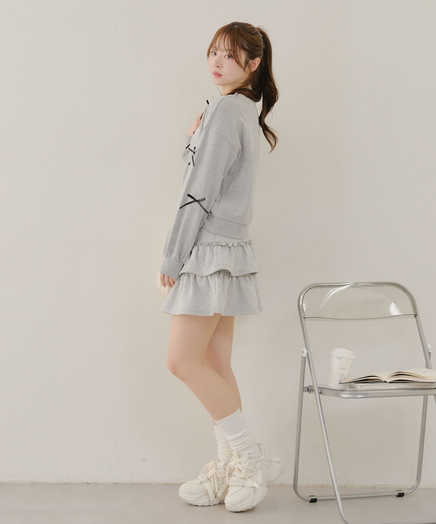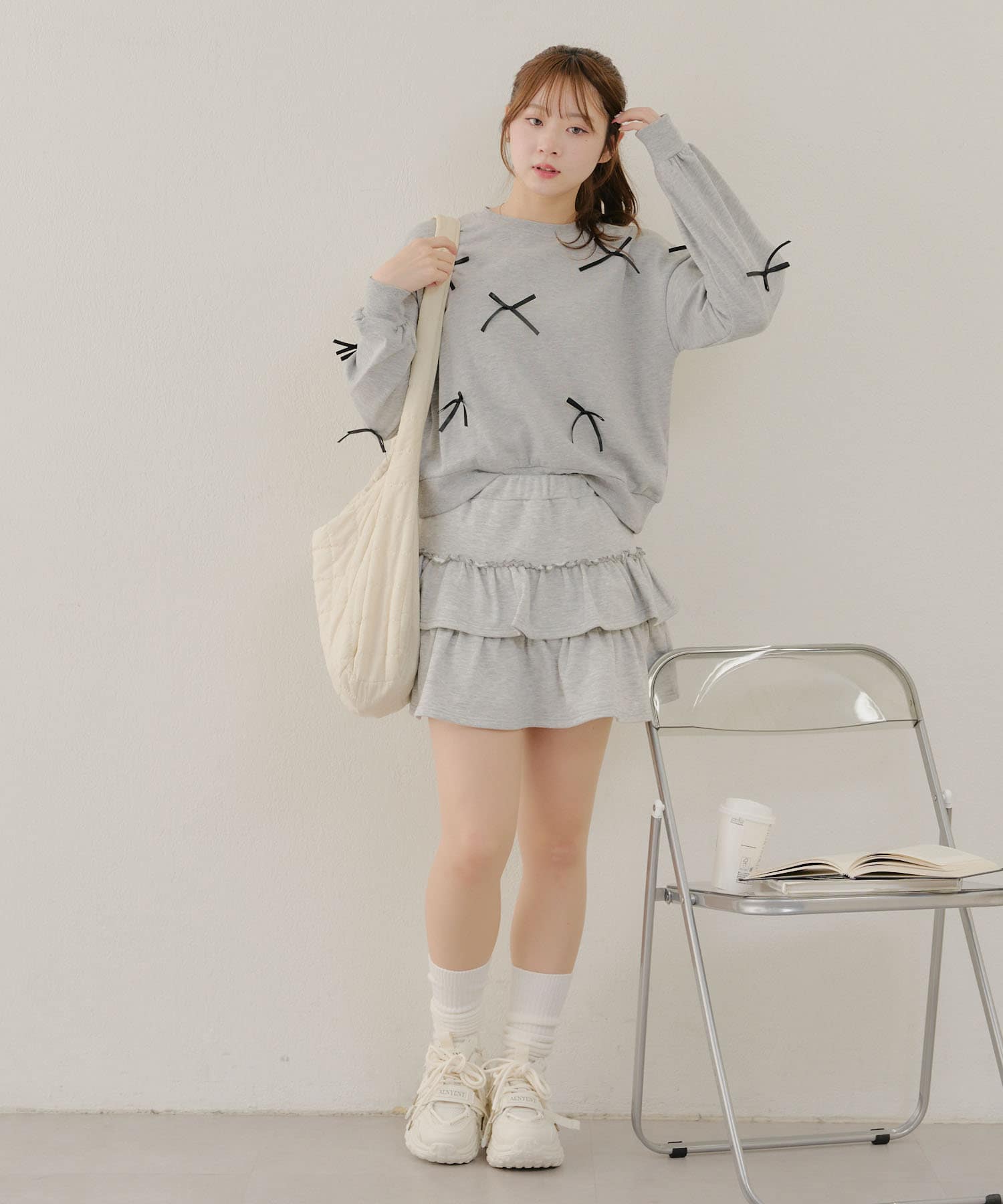 ・リボンをちりばめ、トレンド感満載のガーリーなスウェット