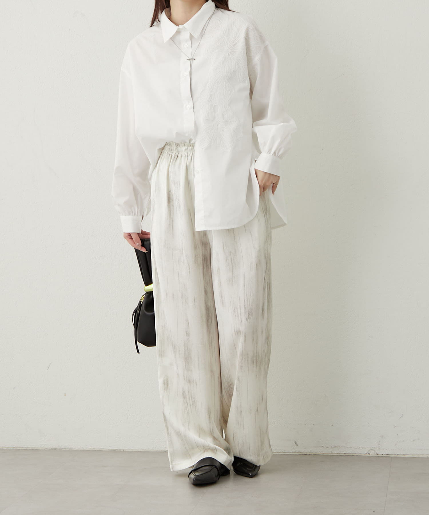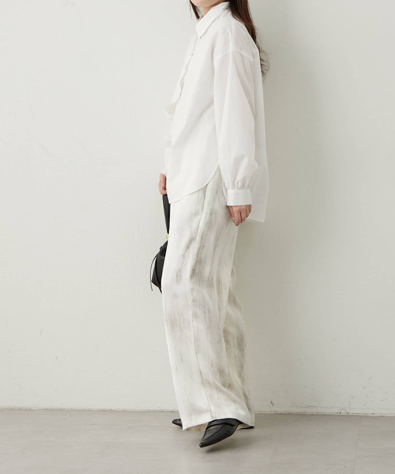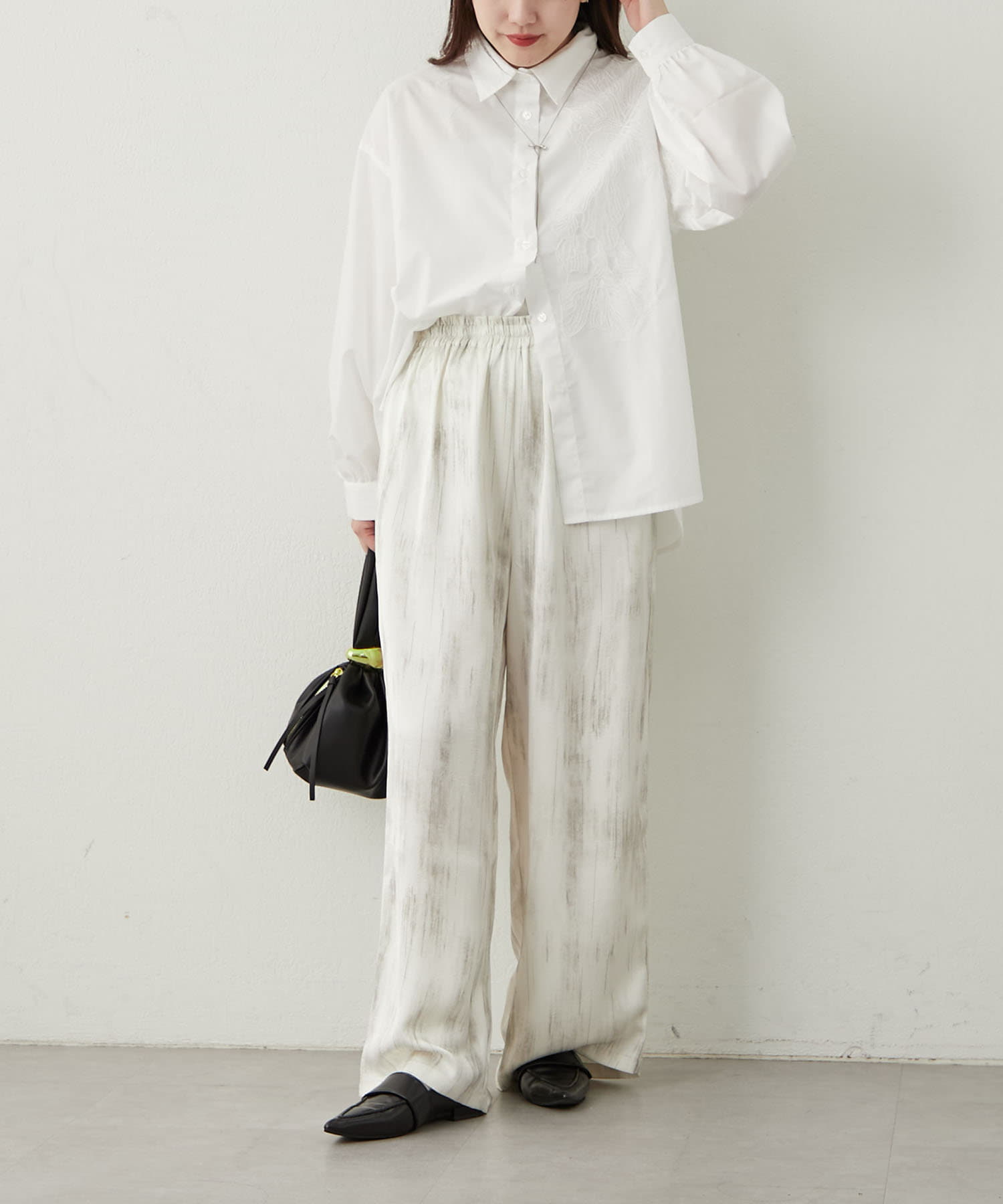 さりげないペイント柄の雰囲気漂うリラックスパンツ