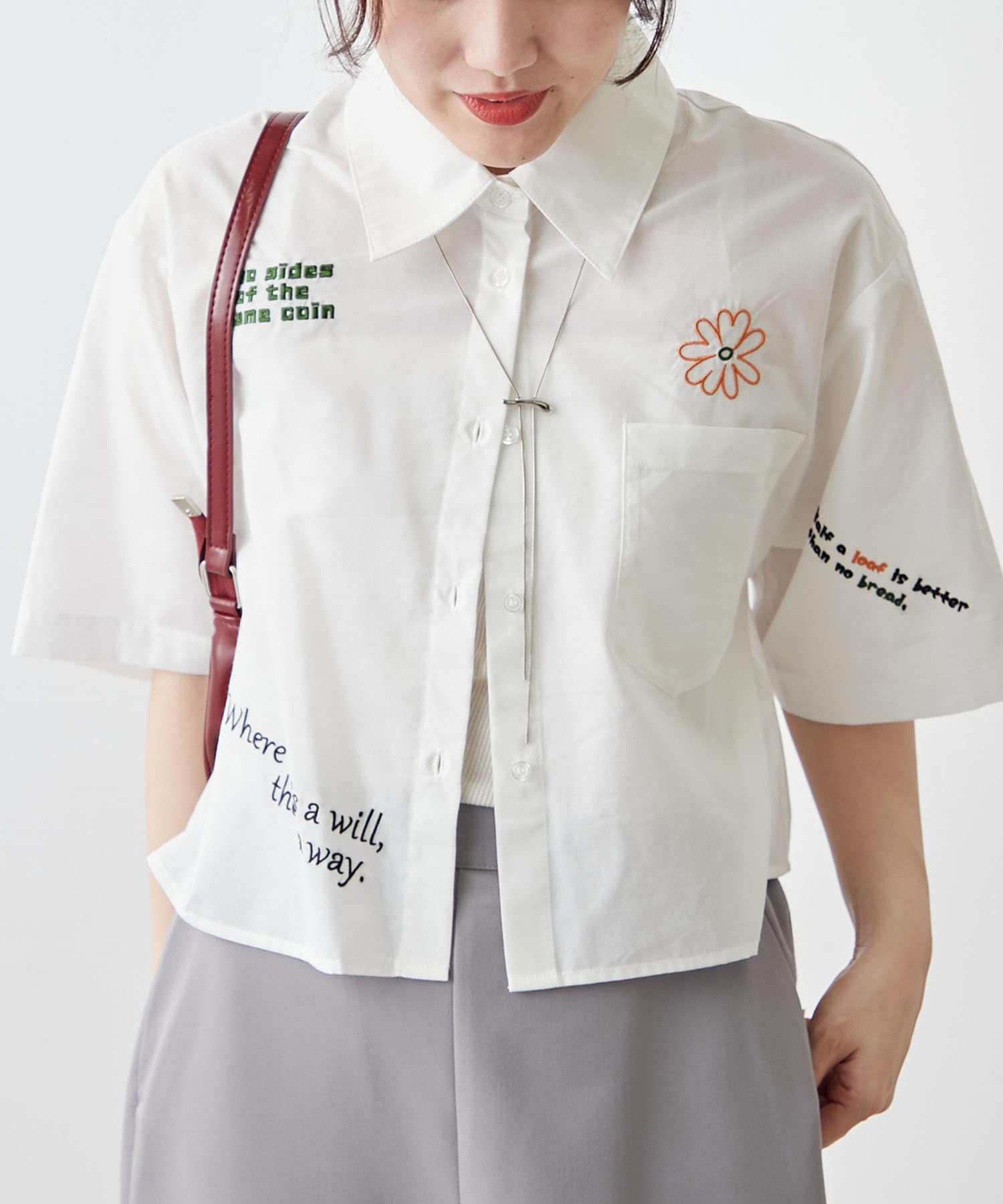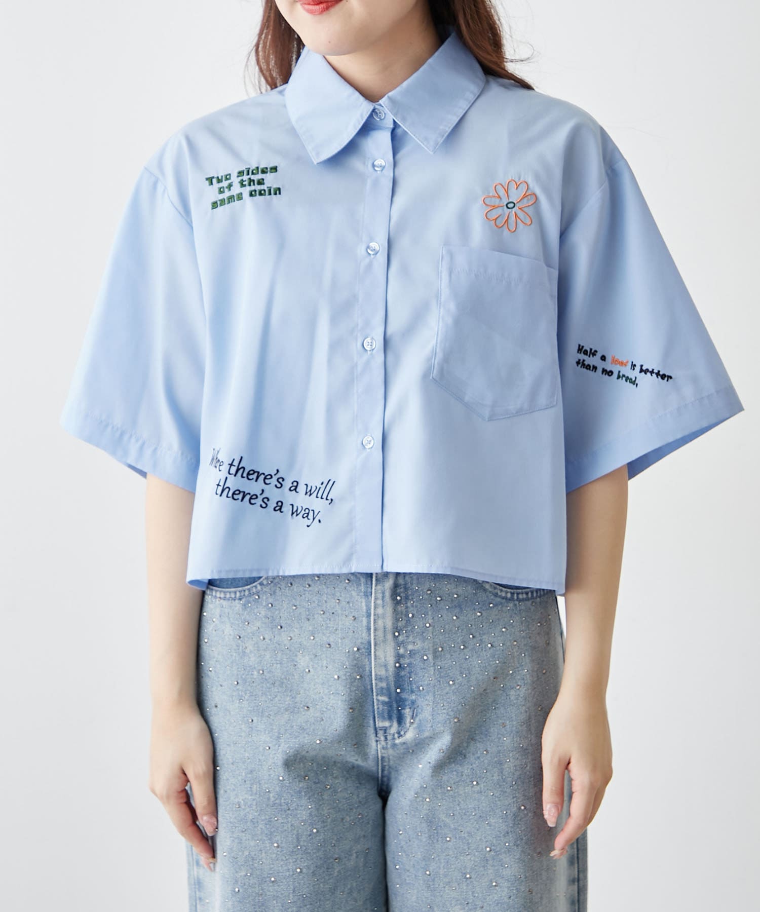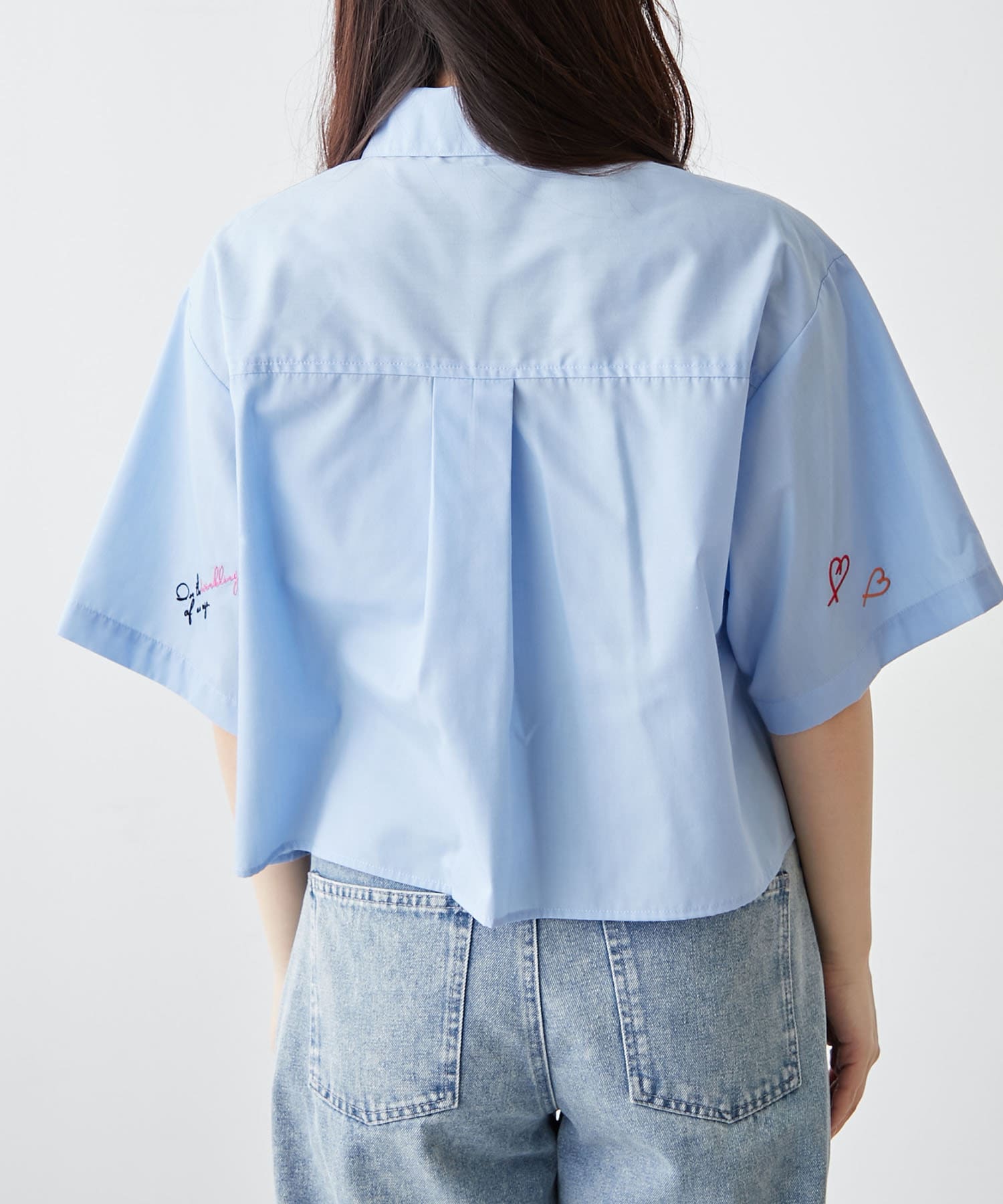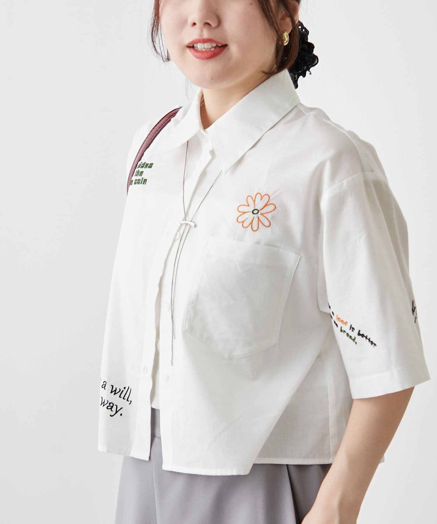 ・カラフルな刺繍がポップで可愛いショート丈シャツ