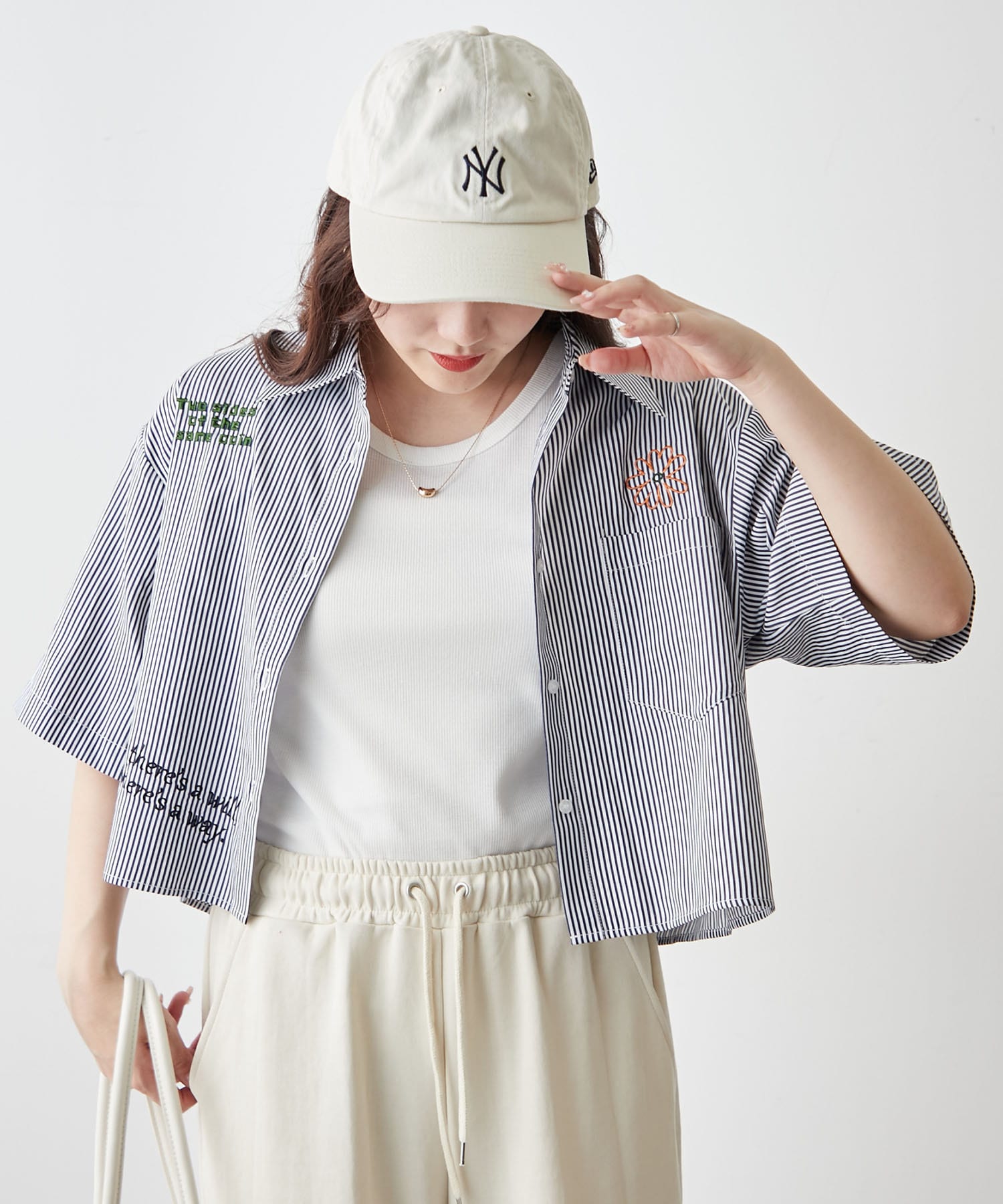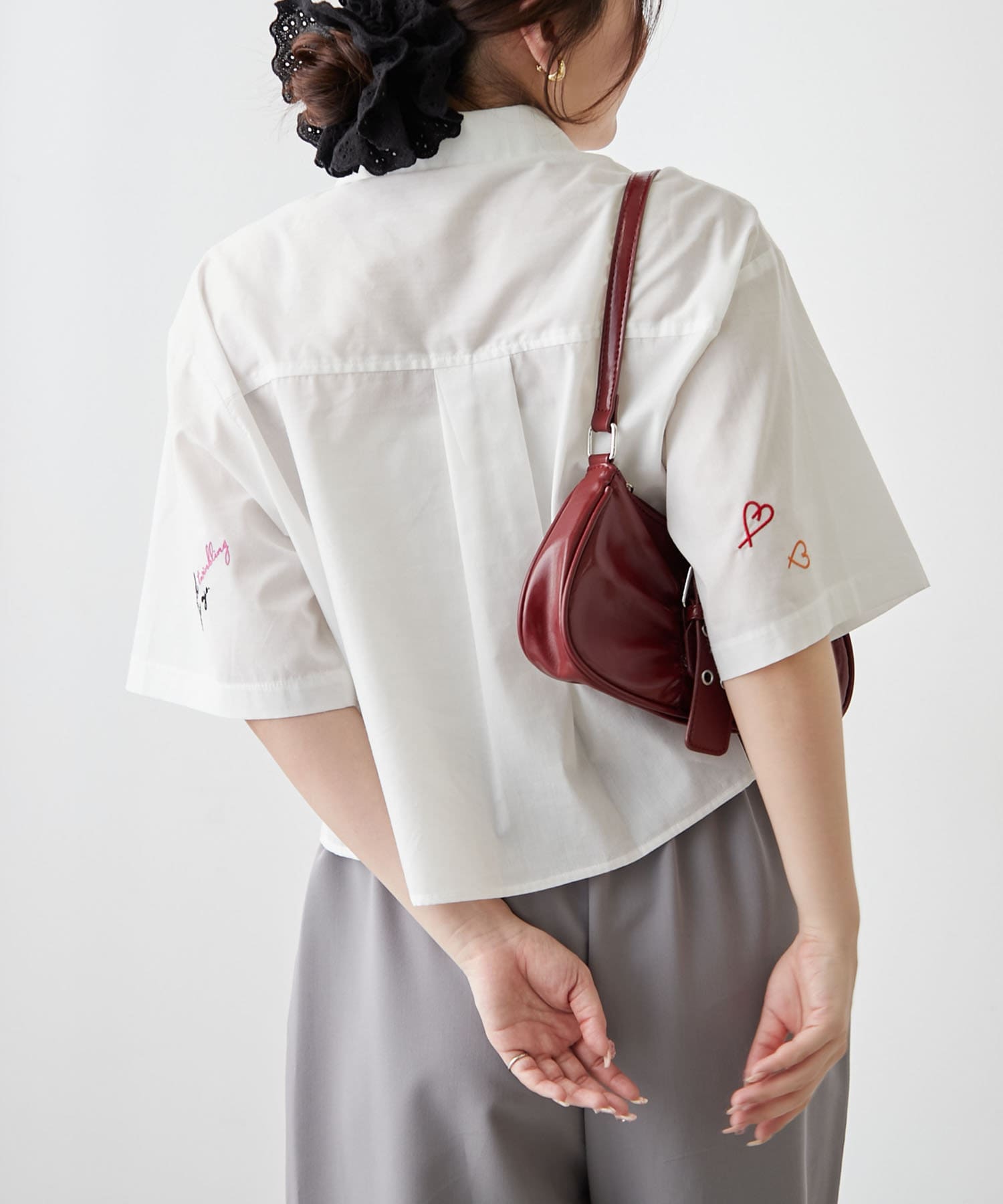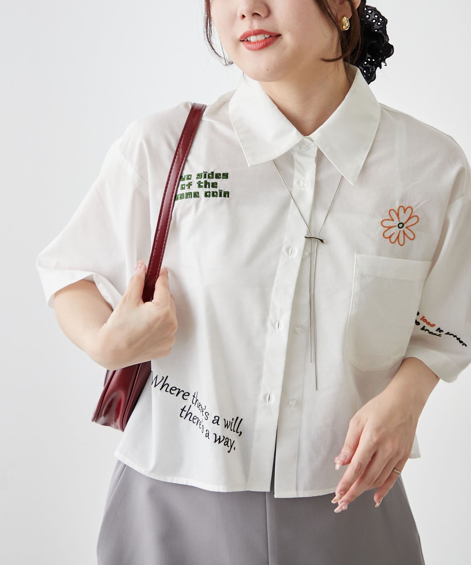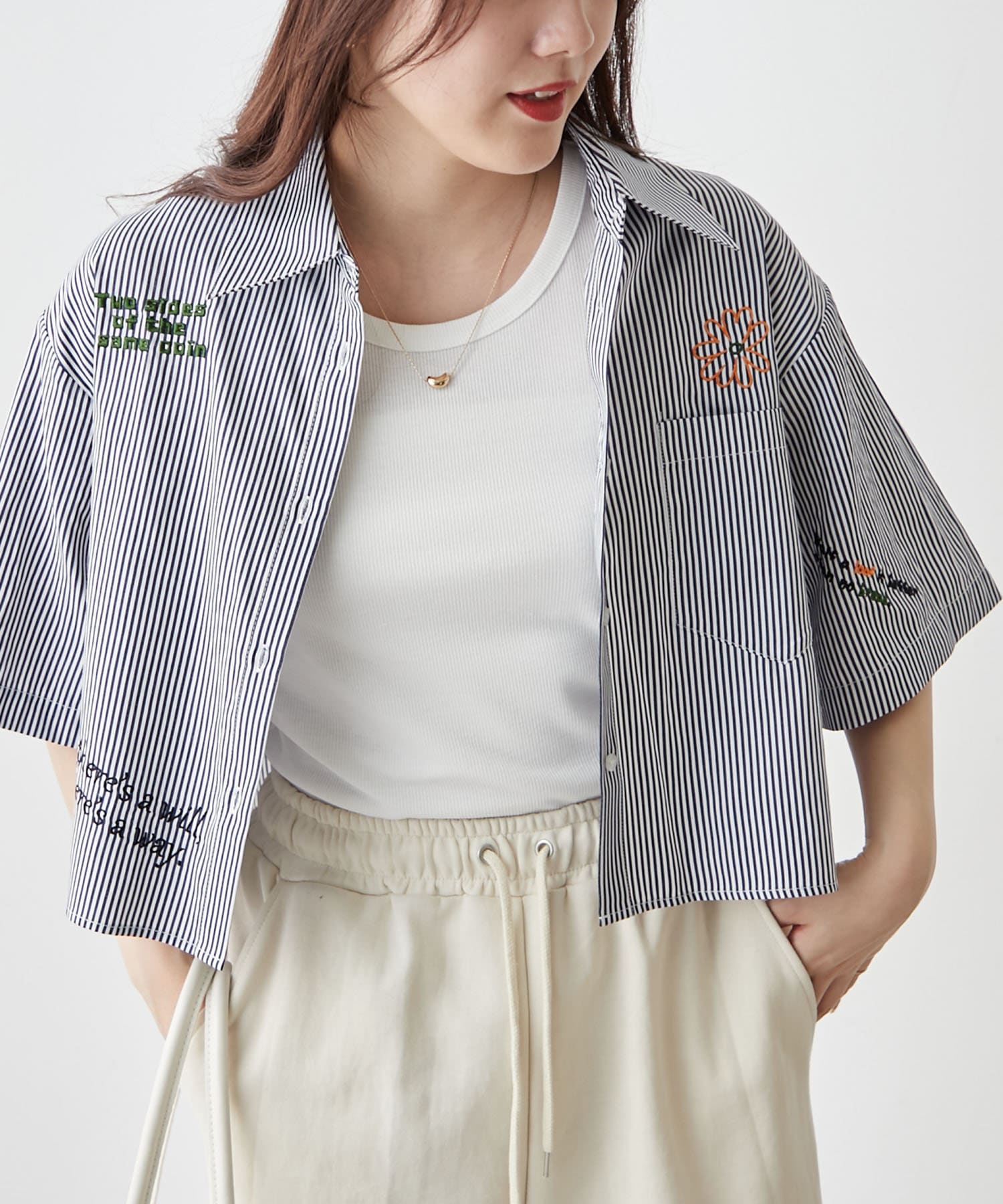 ・カラフルな刺繍がポップで可愛いショート丈シャツ