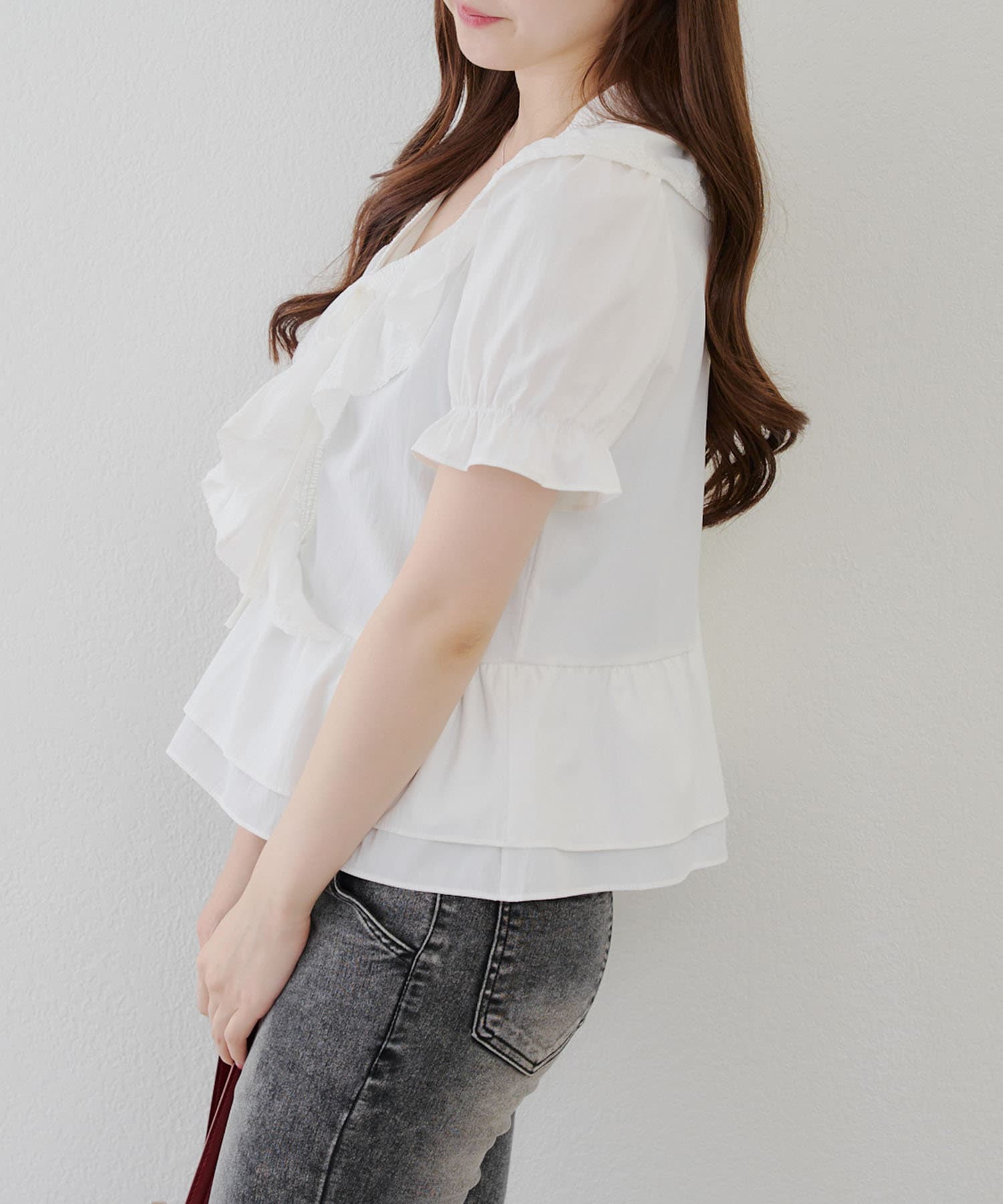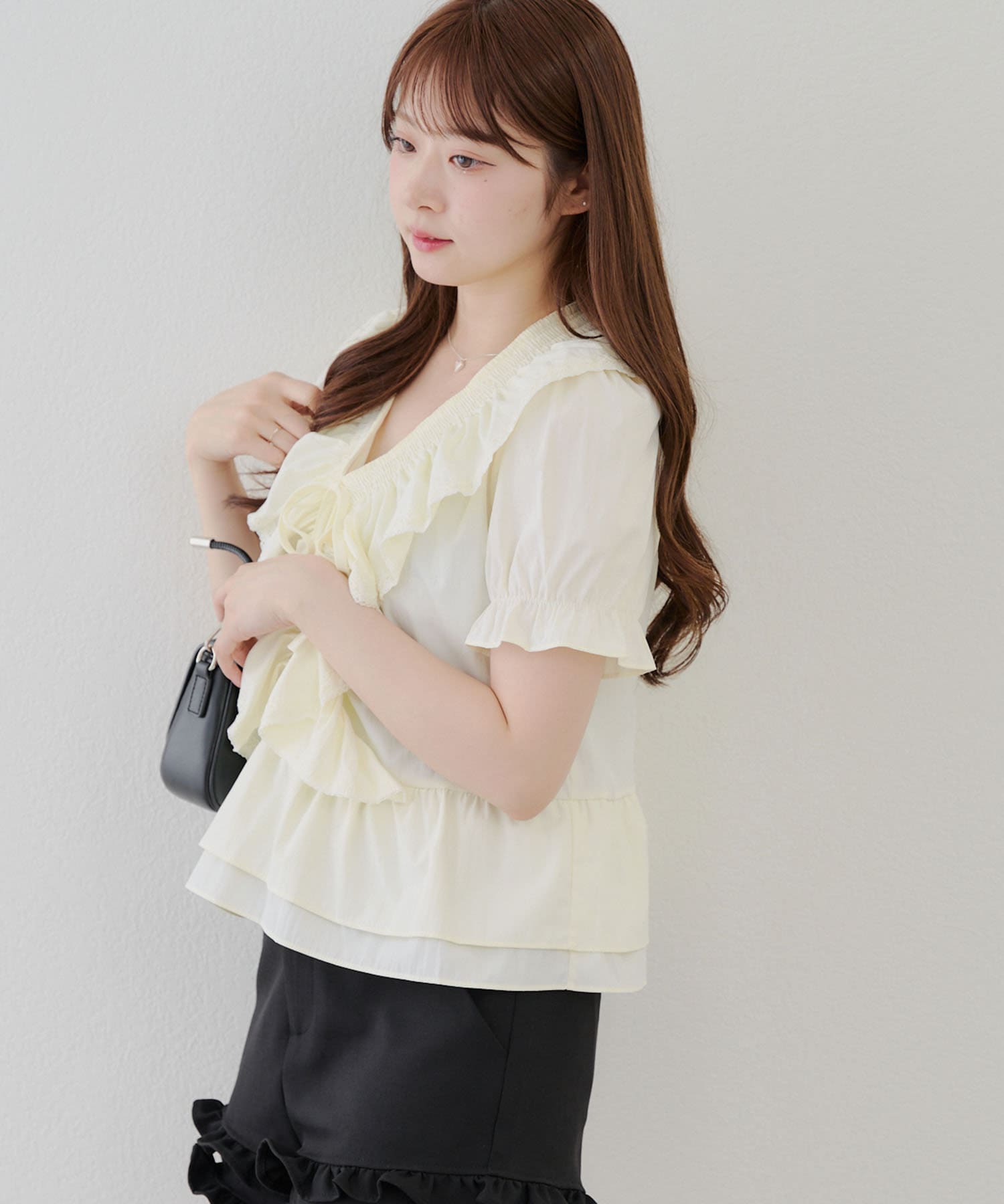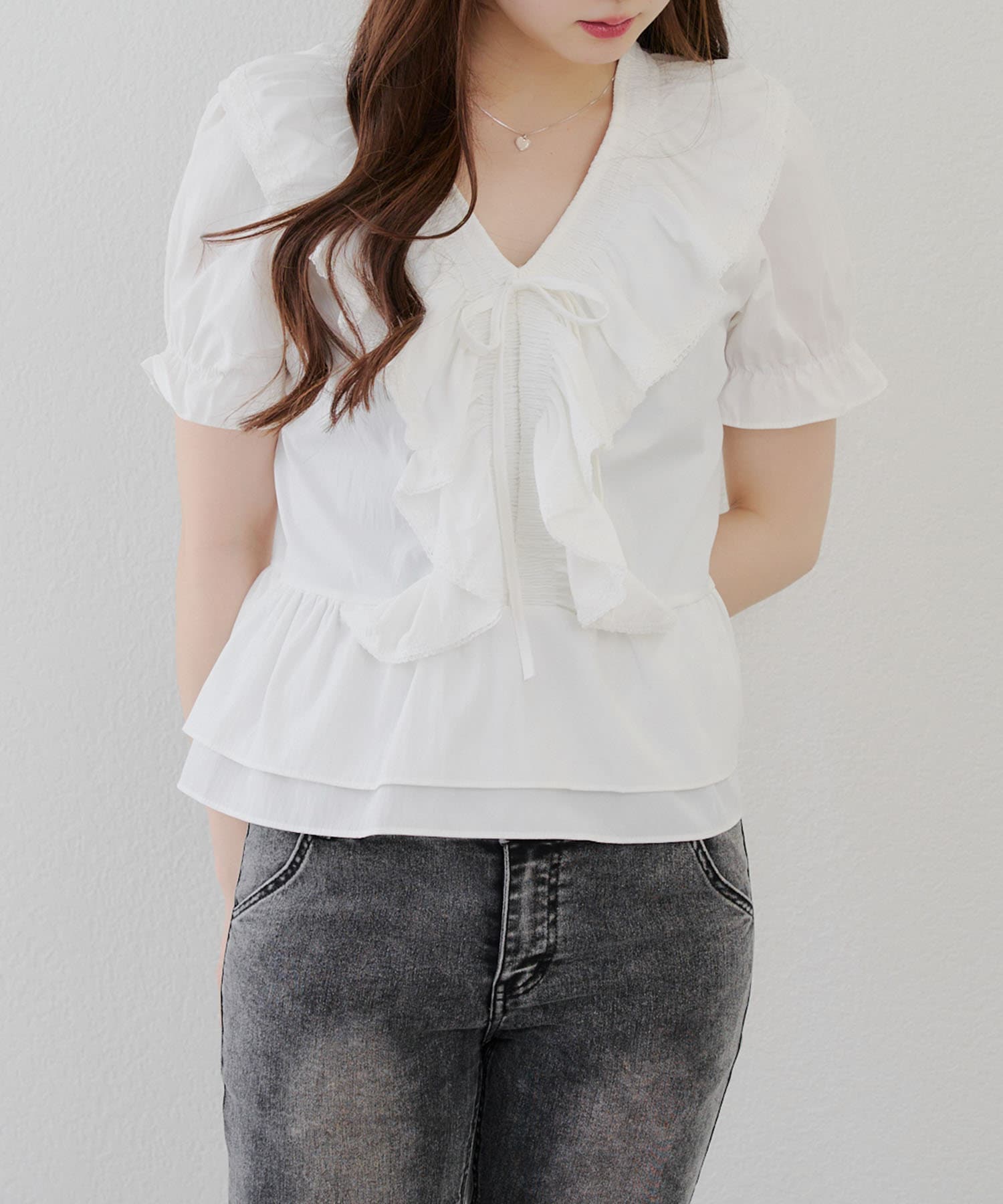 ・ふんわりとしたフリルデザインが印象的な、女性らしさを演出するブラウス♪