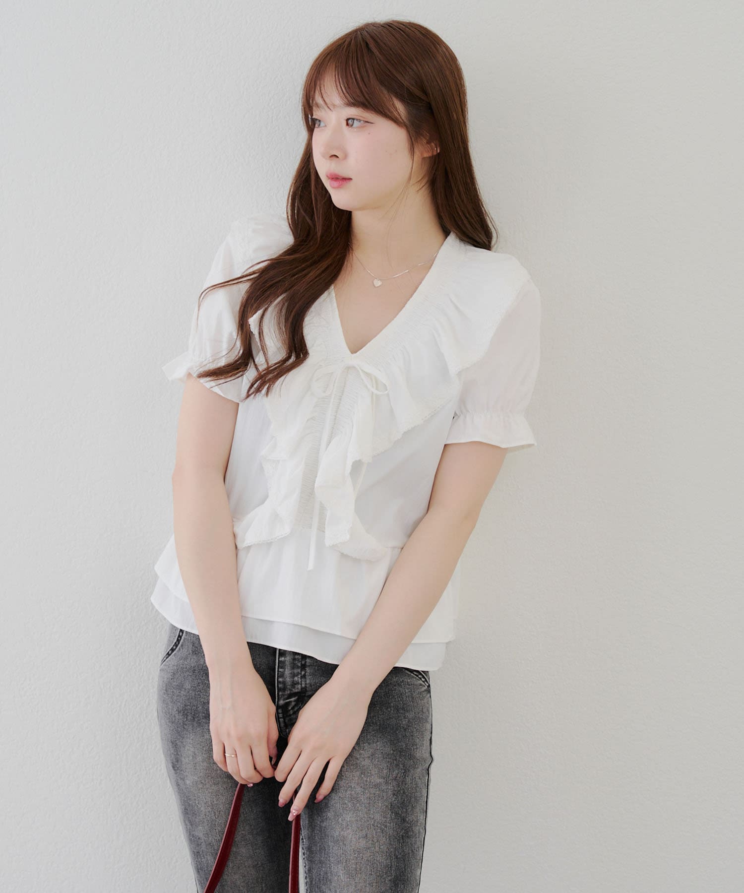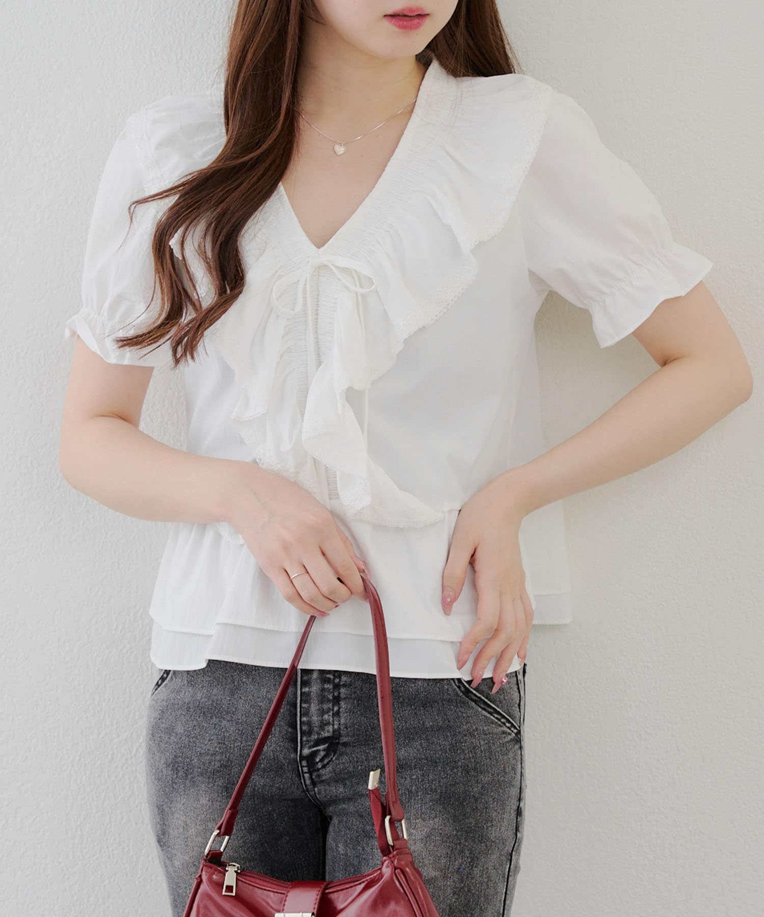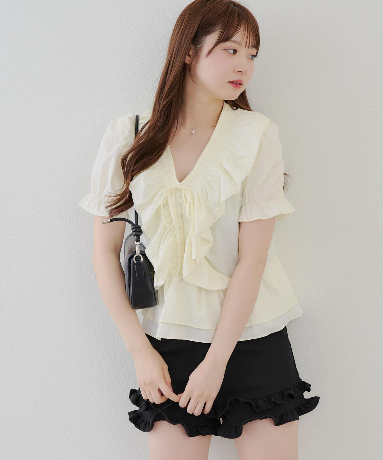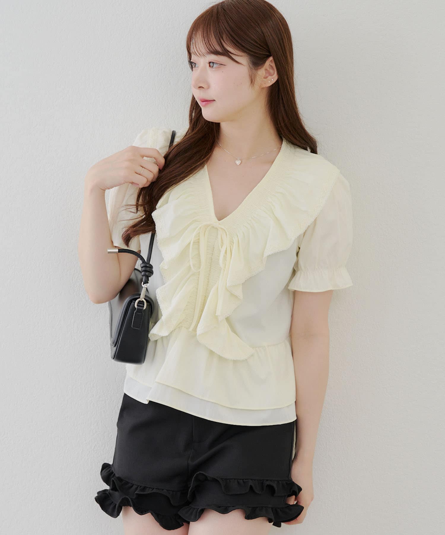・ふんわりとしたフリルデザインが印象的な、女性らしさを演出するブラウス♪