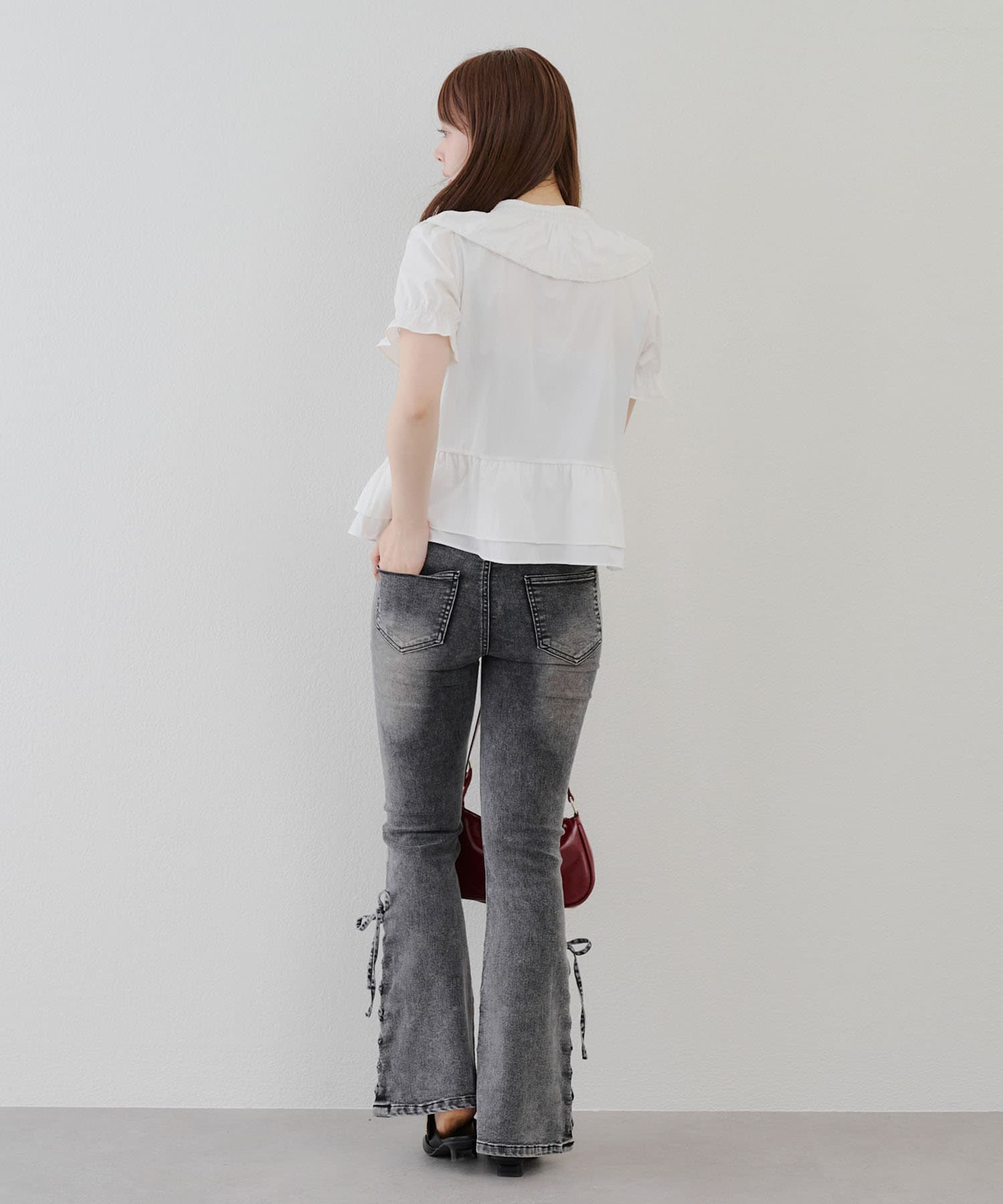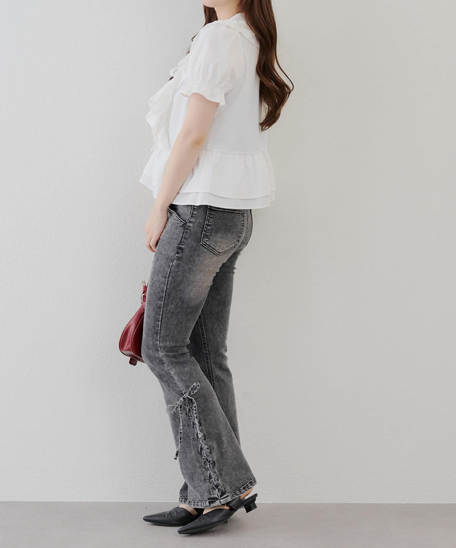 ・ワイドパンツやスキニー合わせはもちろんのこと、デニムでカジュアルダウンさせるのもオススメ。