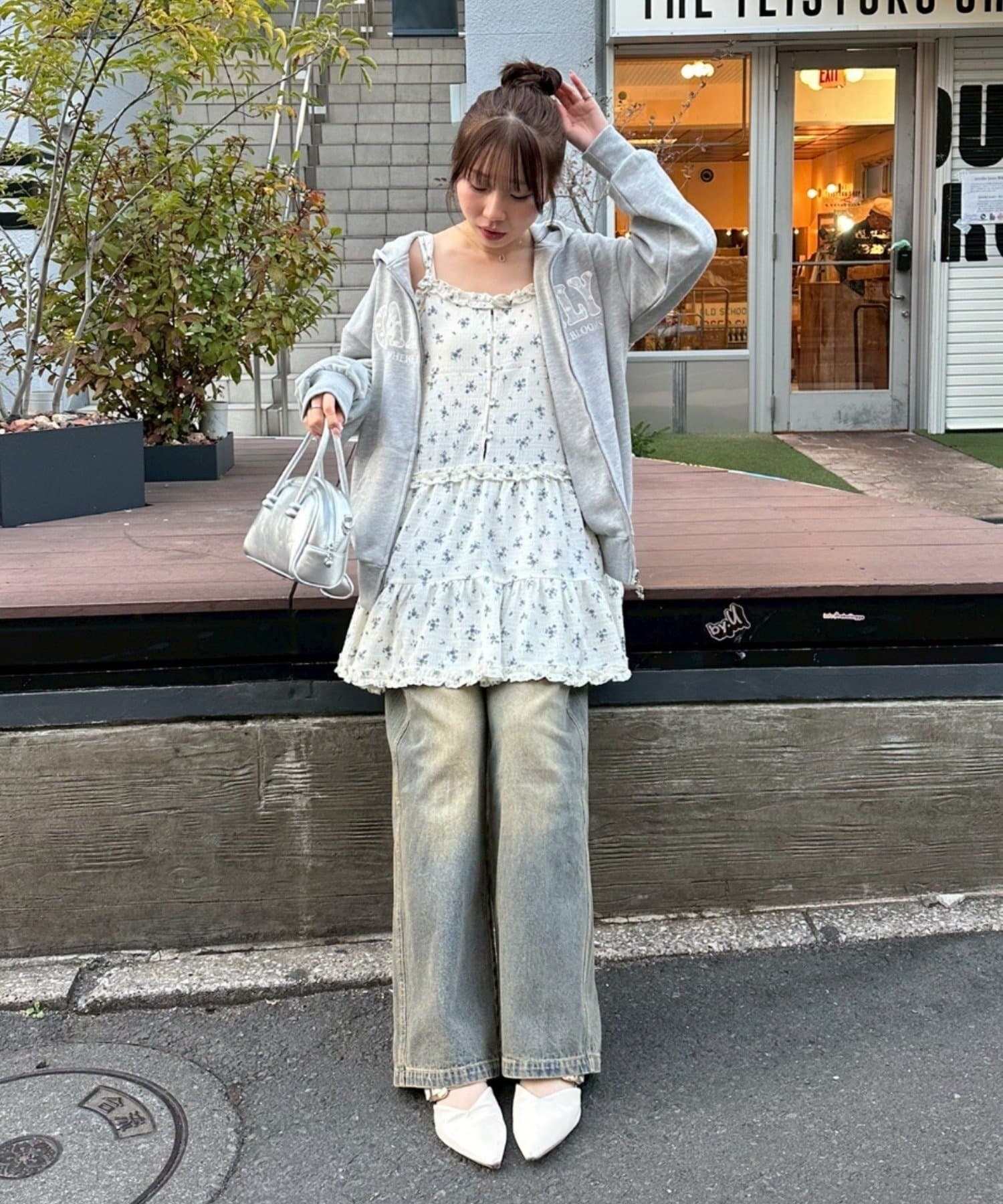 ・下にデニムをレイヤードしてあげるとよりトレンドライクなコーデが出来上がります!