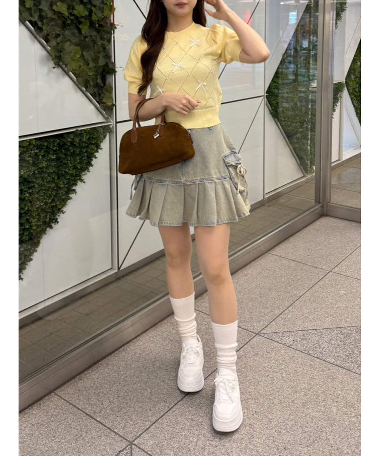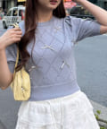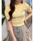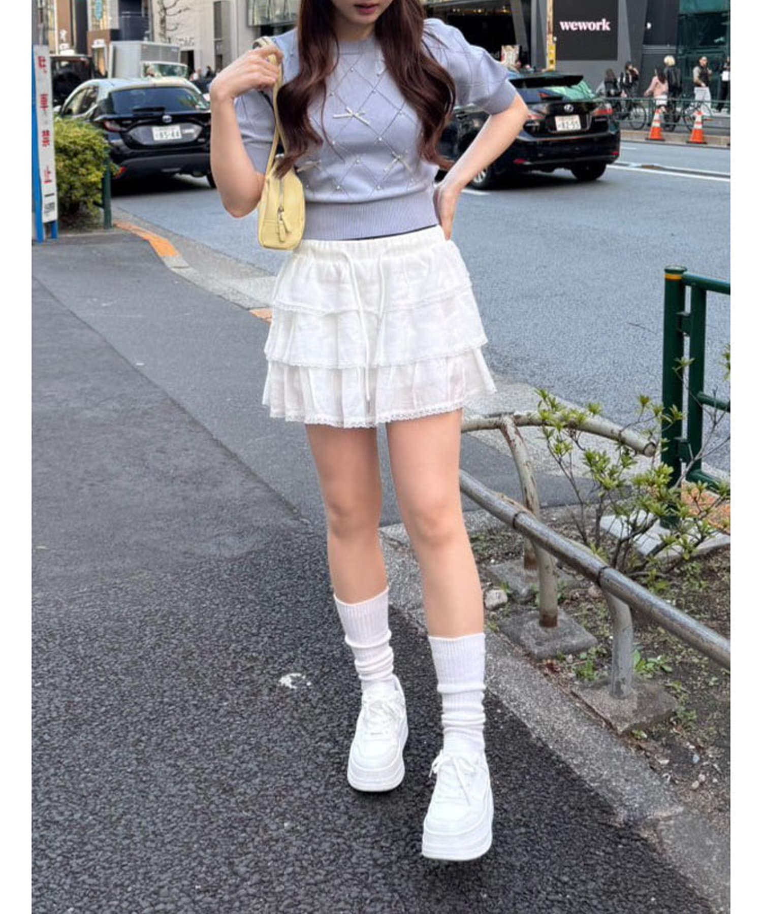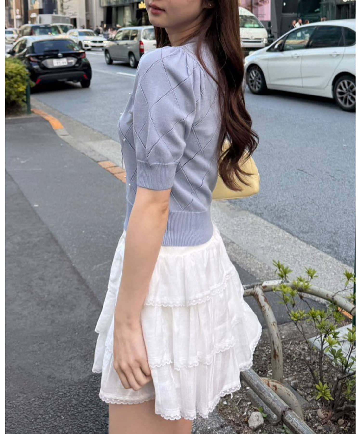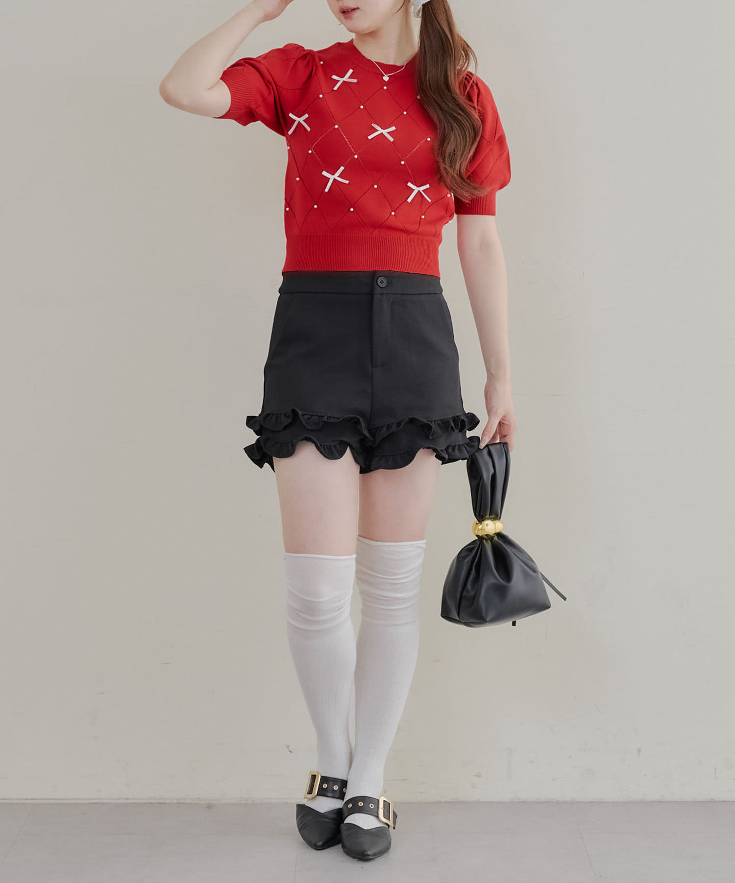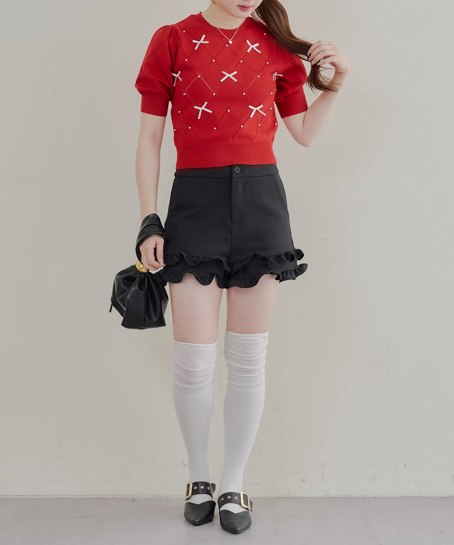 ◇パールとリボンがガーリーな半袖ニットトップス◇