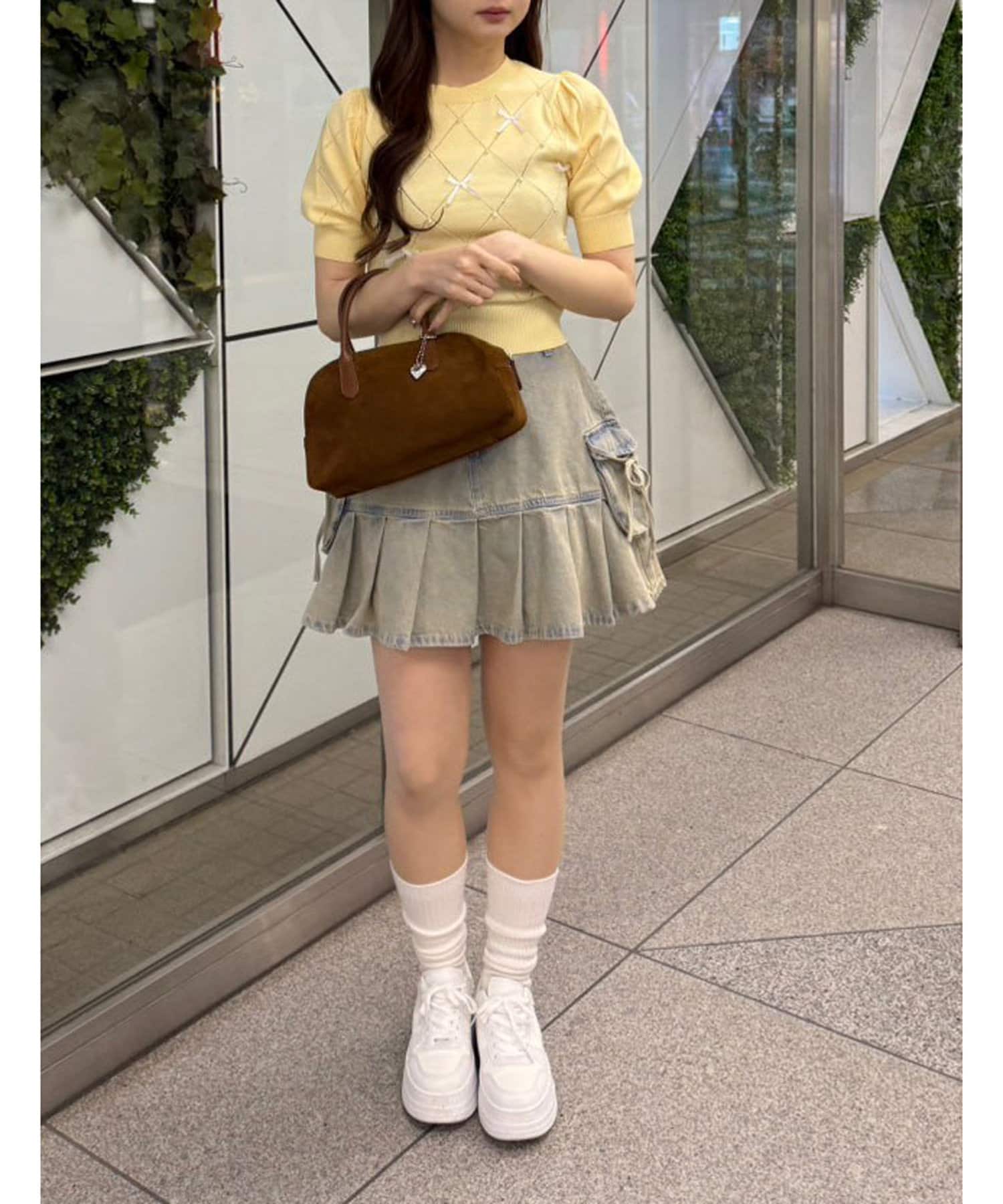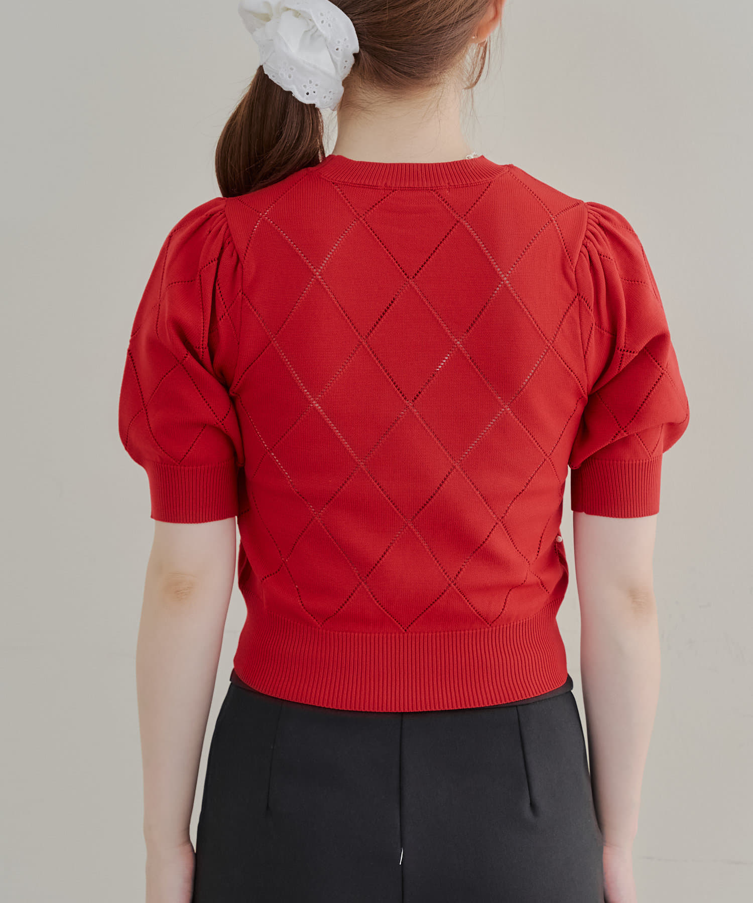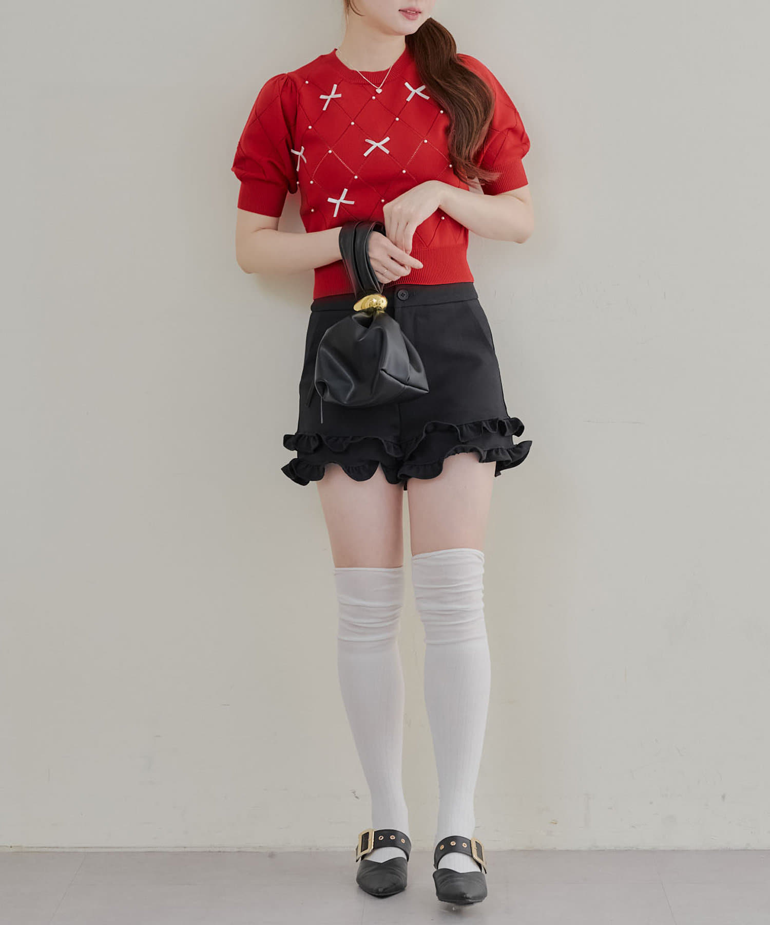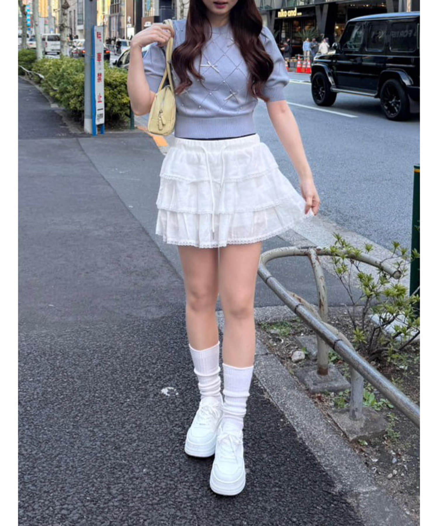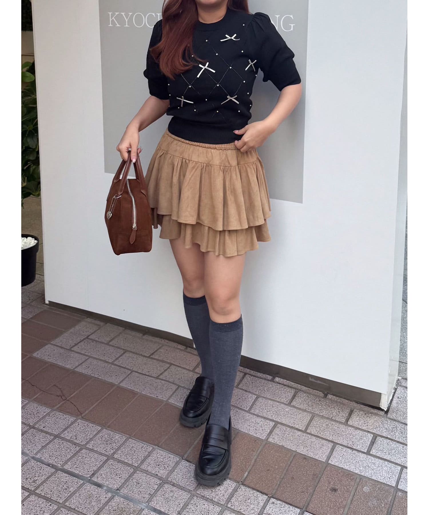 ◇パールとリボンがガーリーな半袖ニットトップス◇
