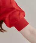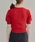 着用感:伸縮性のあるニットトップスです。さりげないパフスリーブが女性らしく二の腕もカバーしてくれます。