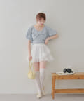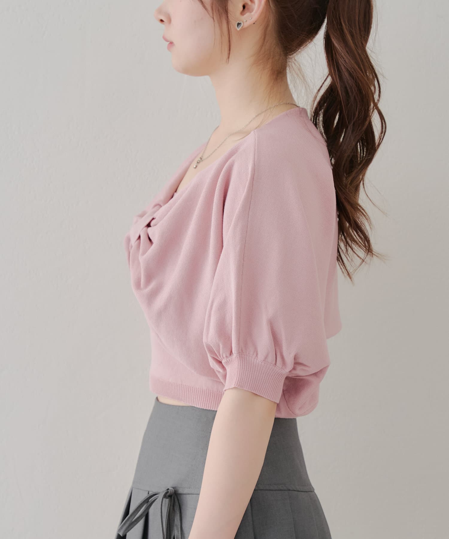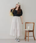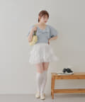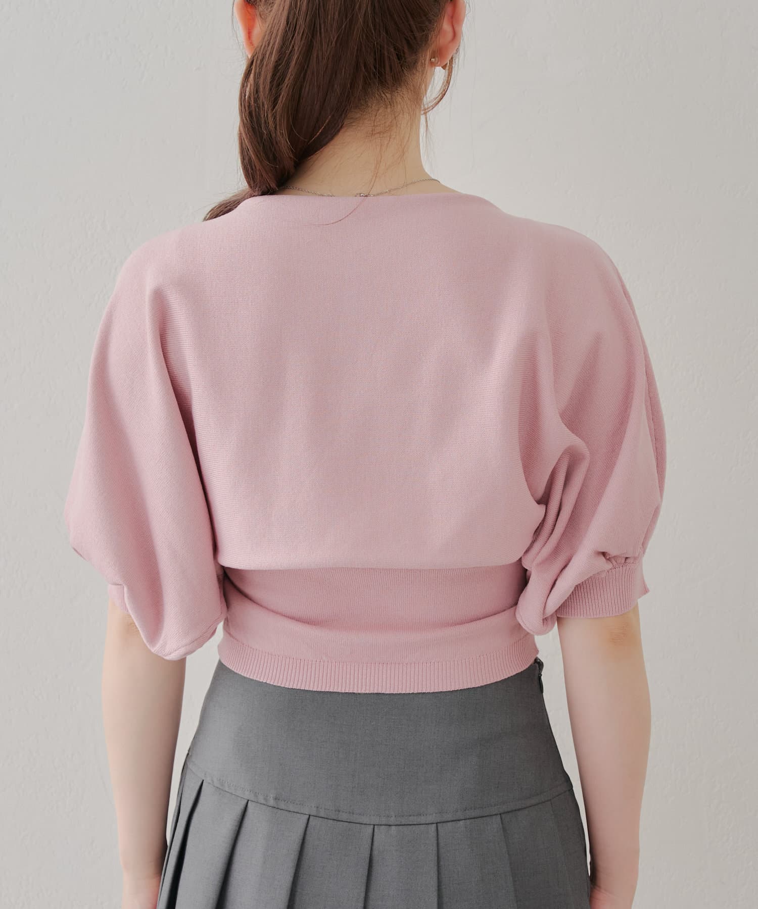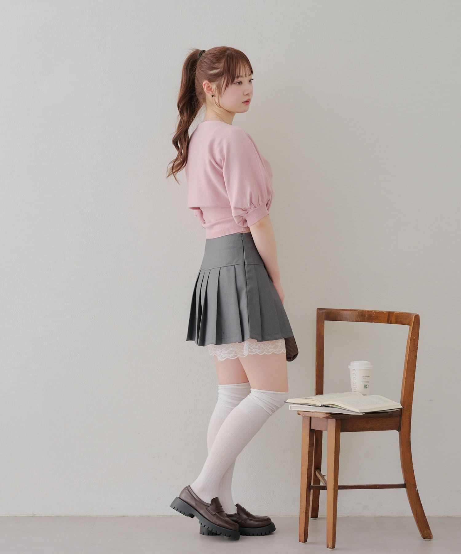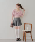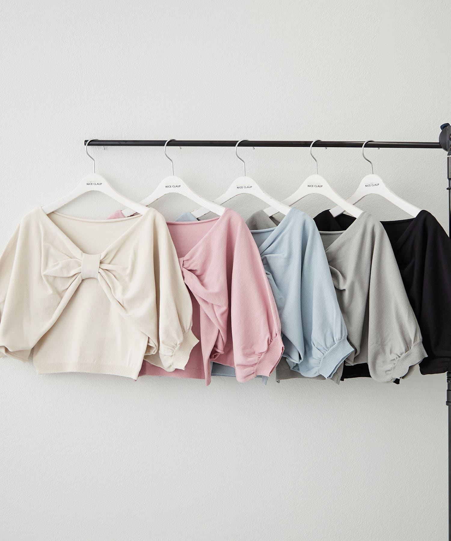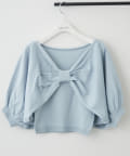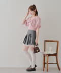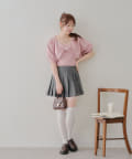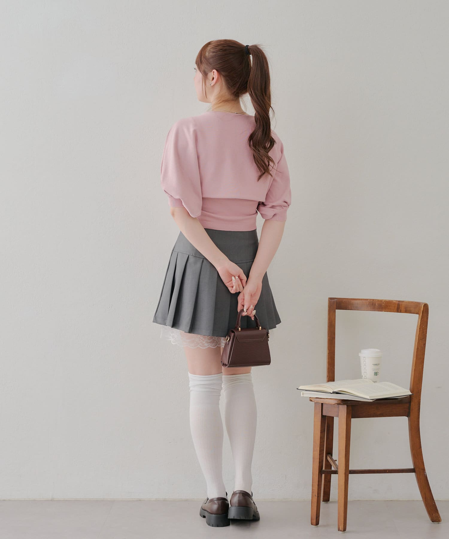 胸元の大きなリボンデザインがガーリーにしてくれるアンサンブル