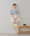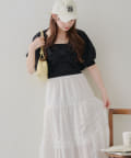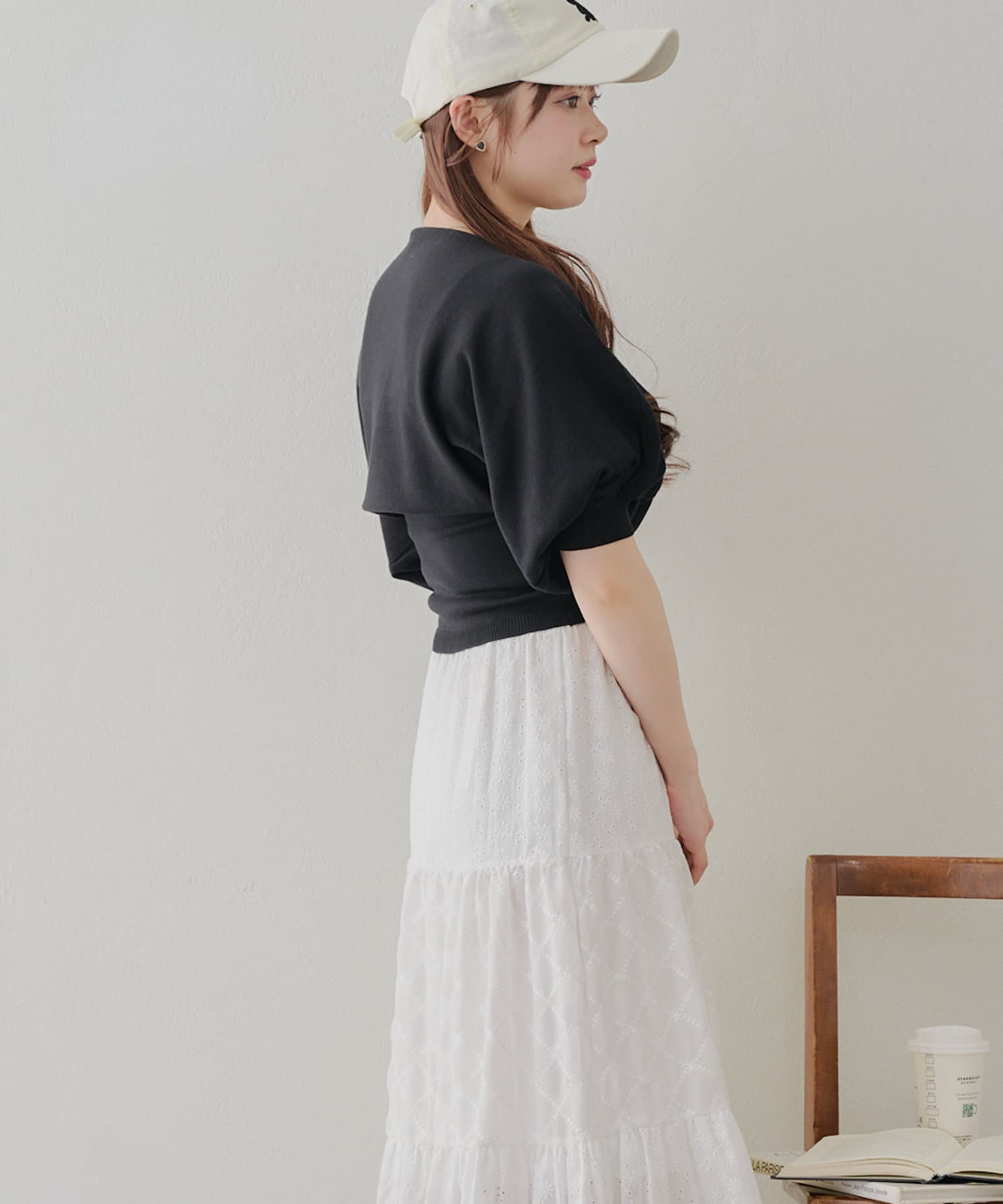 キャミジャンスカの上にリボンボレロをレイヤードする