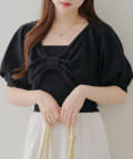 《2点セットでお得》【麻タッチで夏も快適】【RMAF】リボン半袖アンサンブル