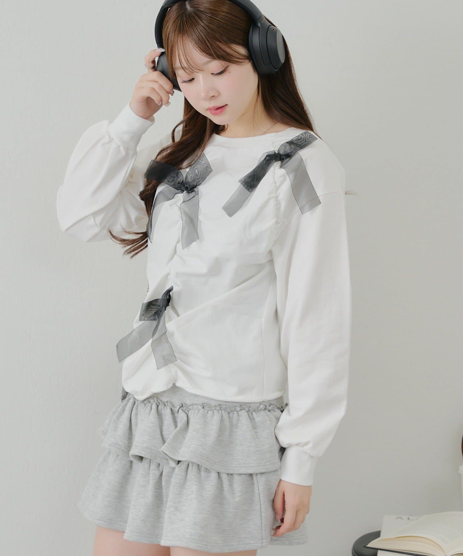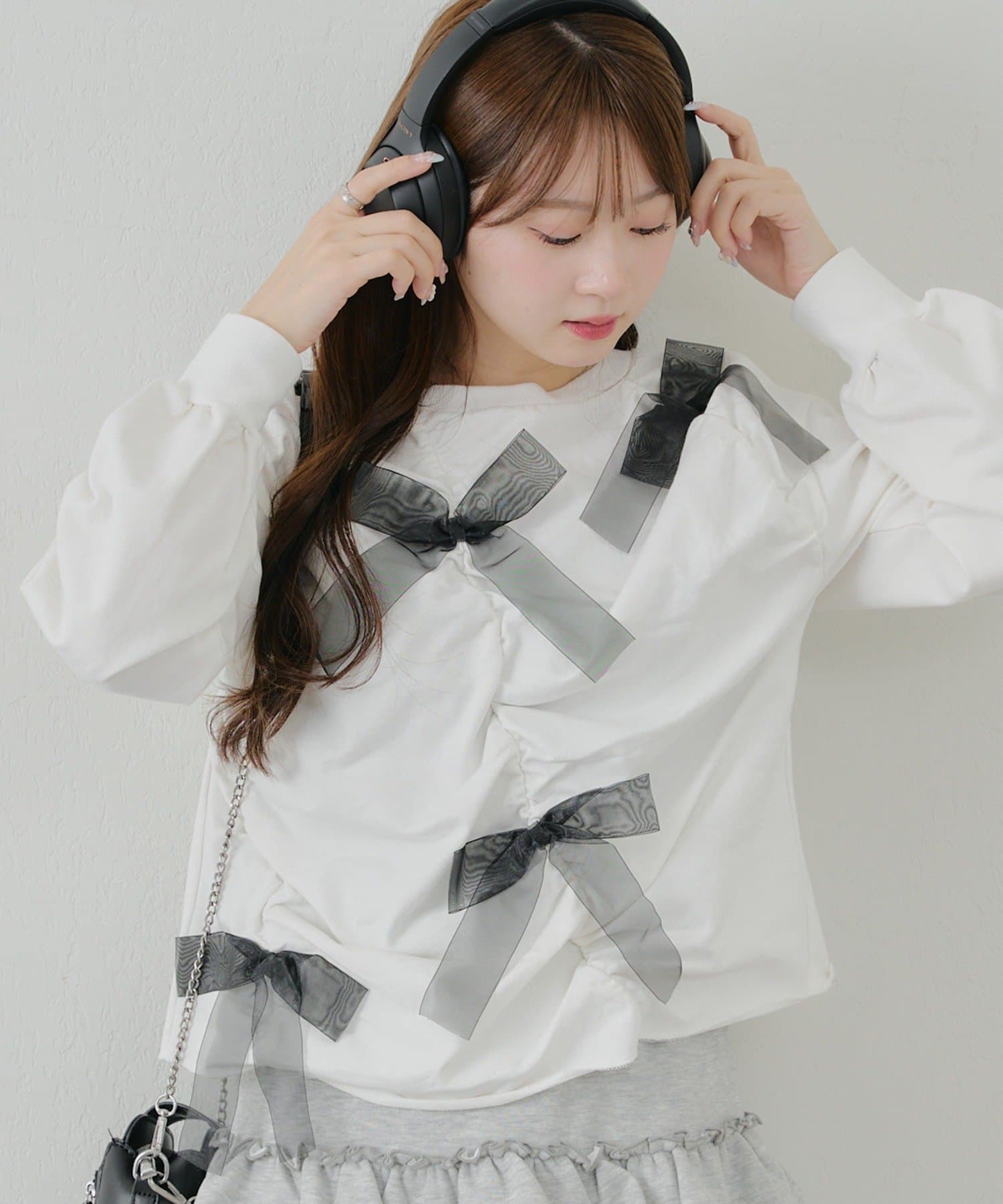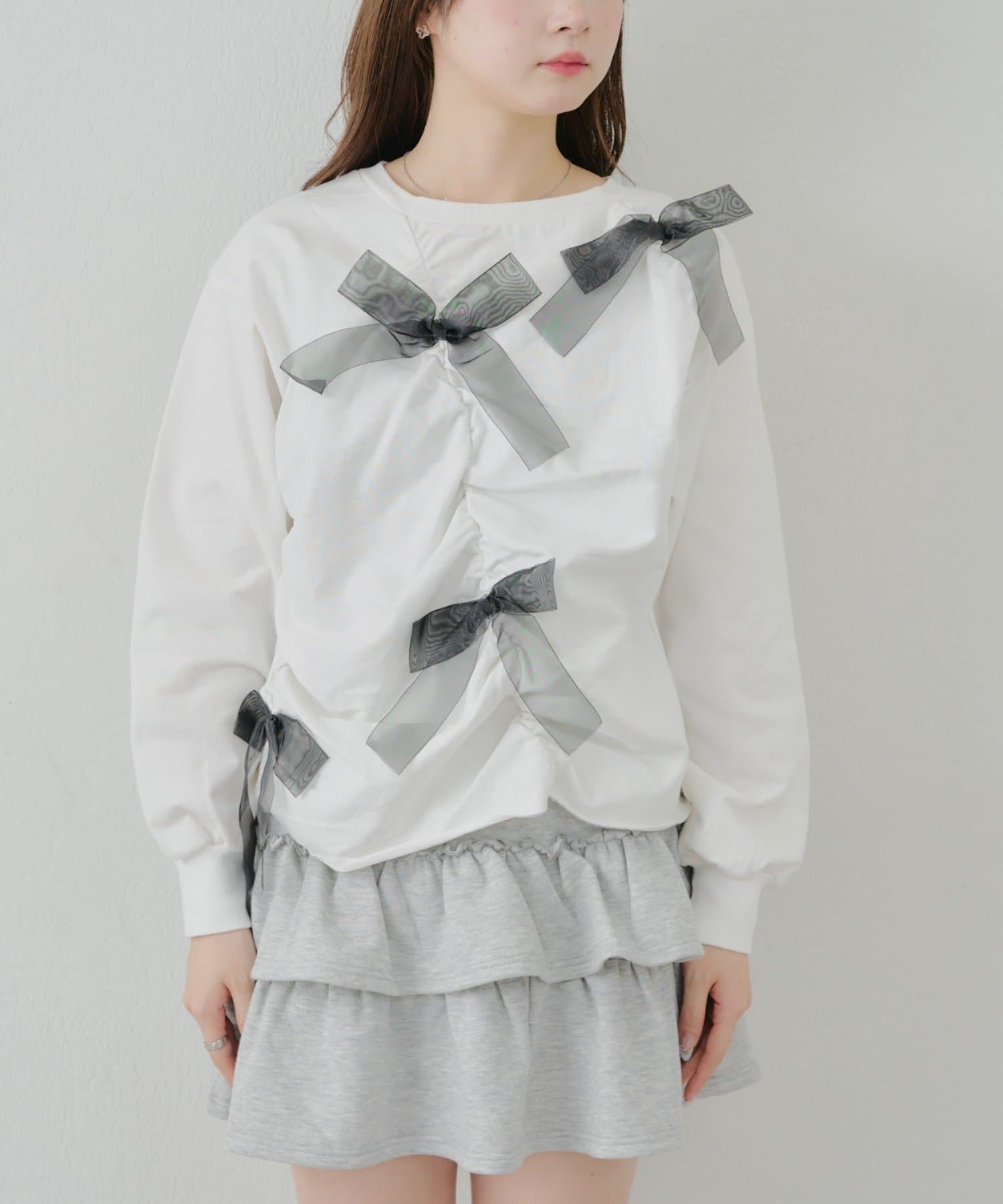 ・大きいチュールリボンが特徴のスウェット。