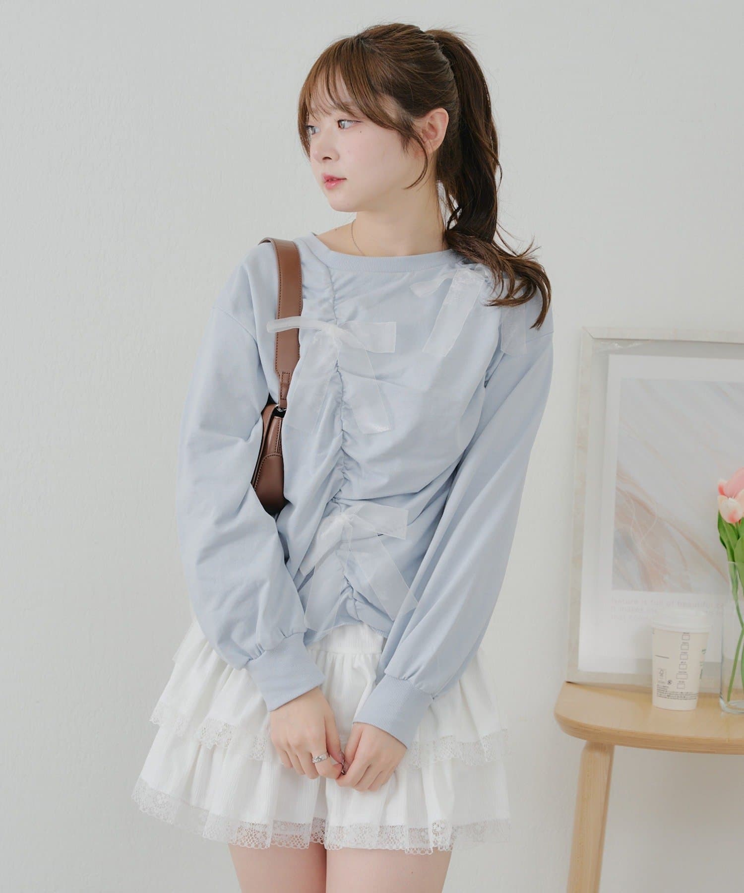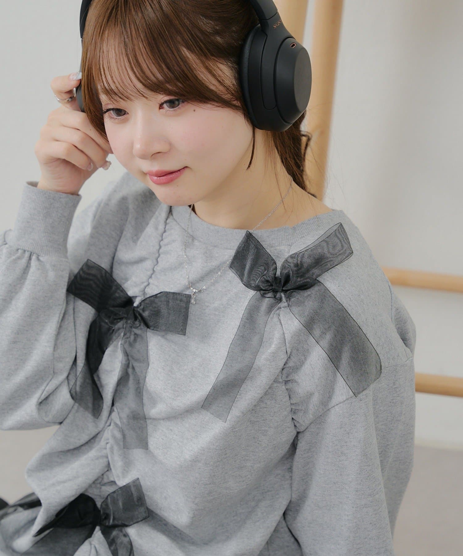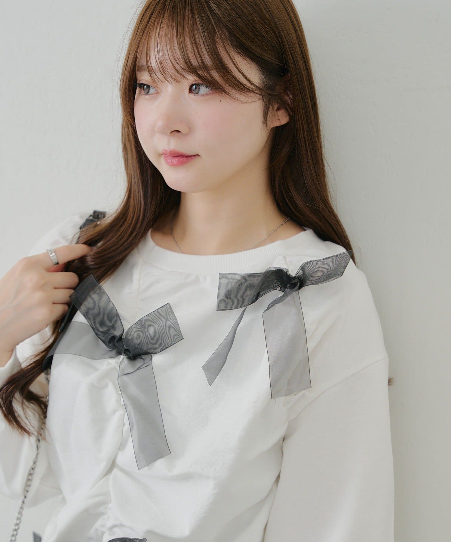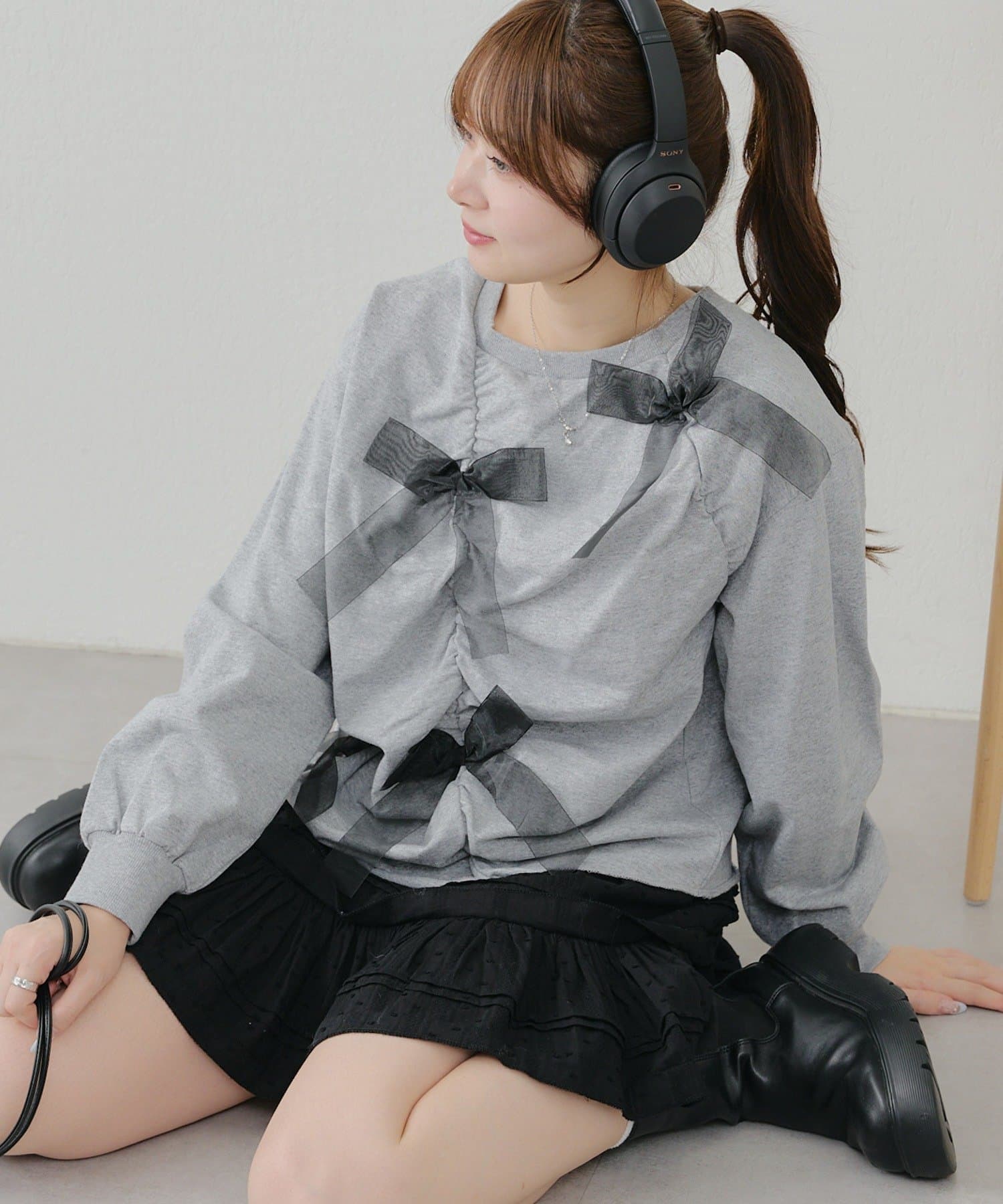 ・大きいチュールリボンが特徴のスウェット。