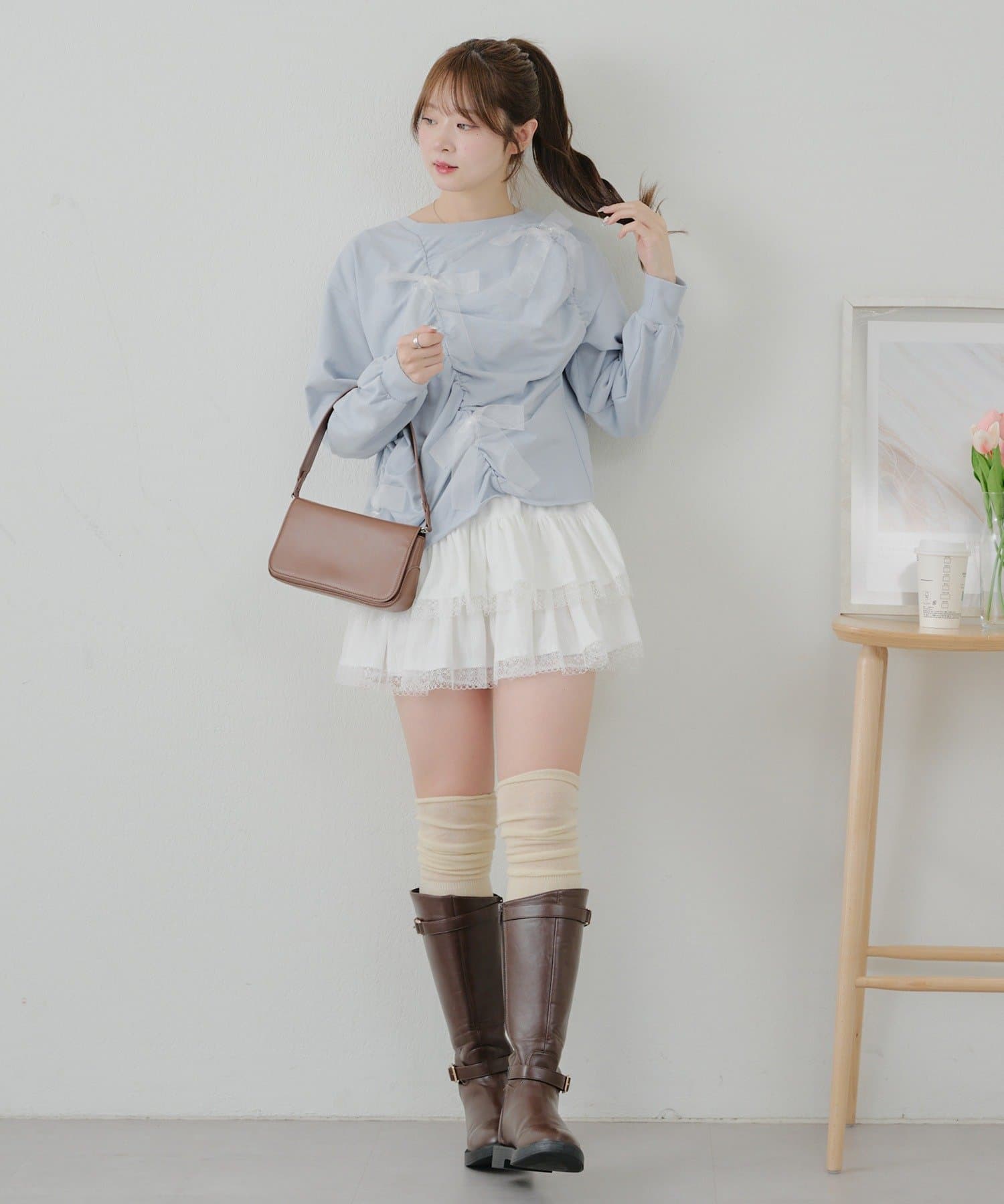 ・トレンドのフリルスカート(品番:0851010060)と合わせて韓国っぽコーデが◎
