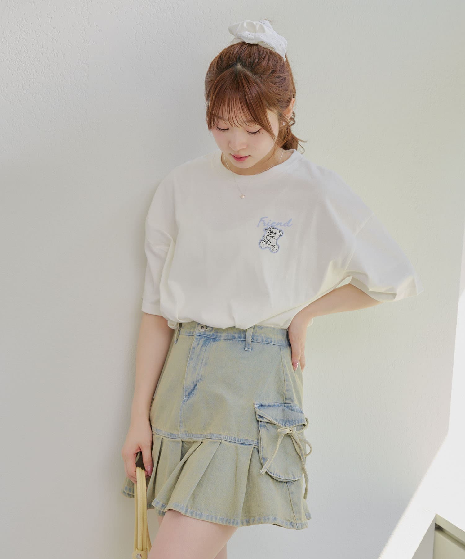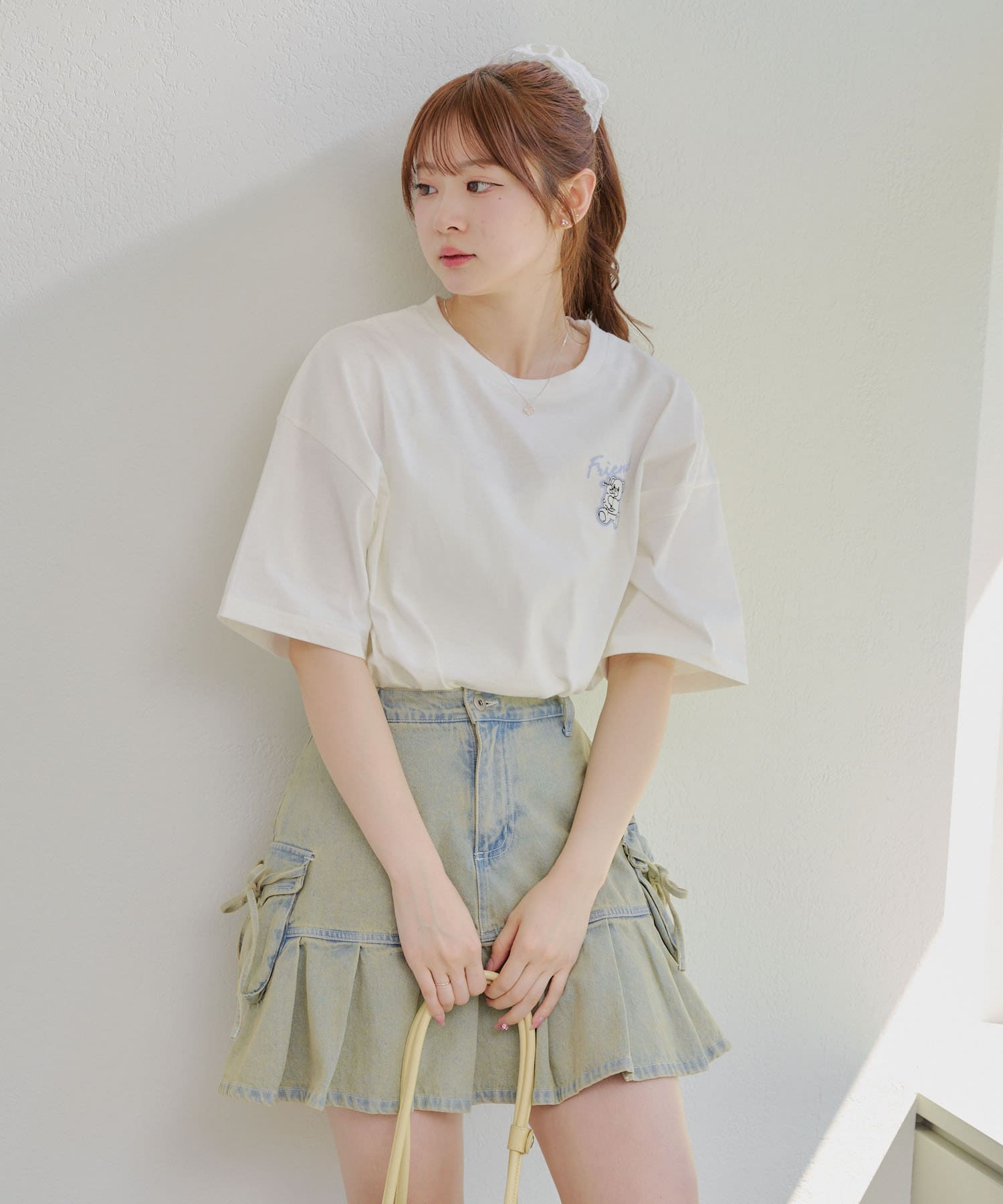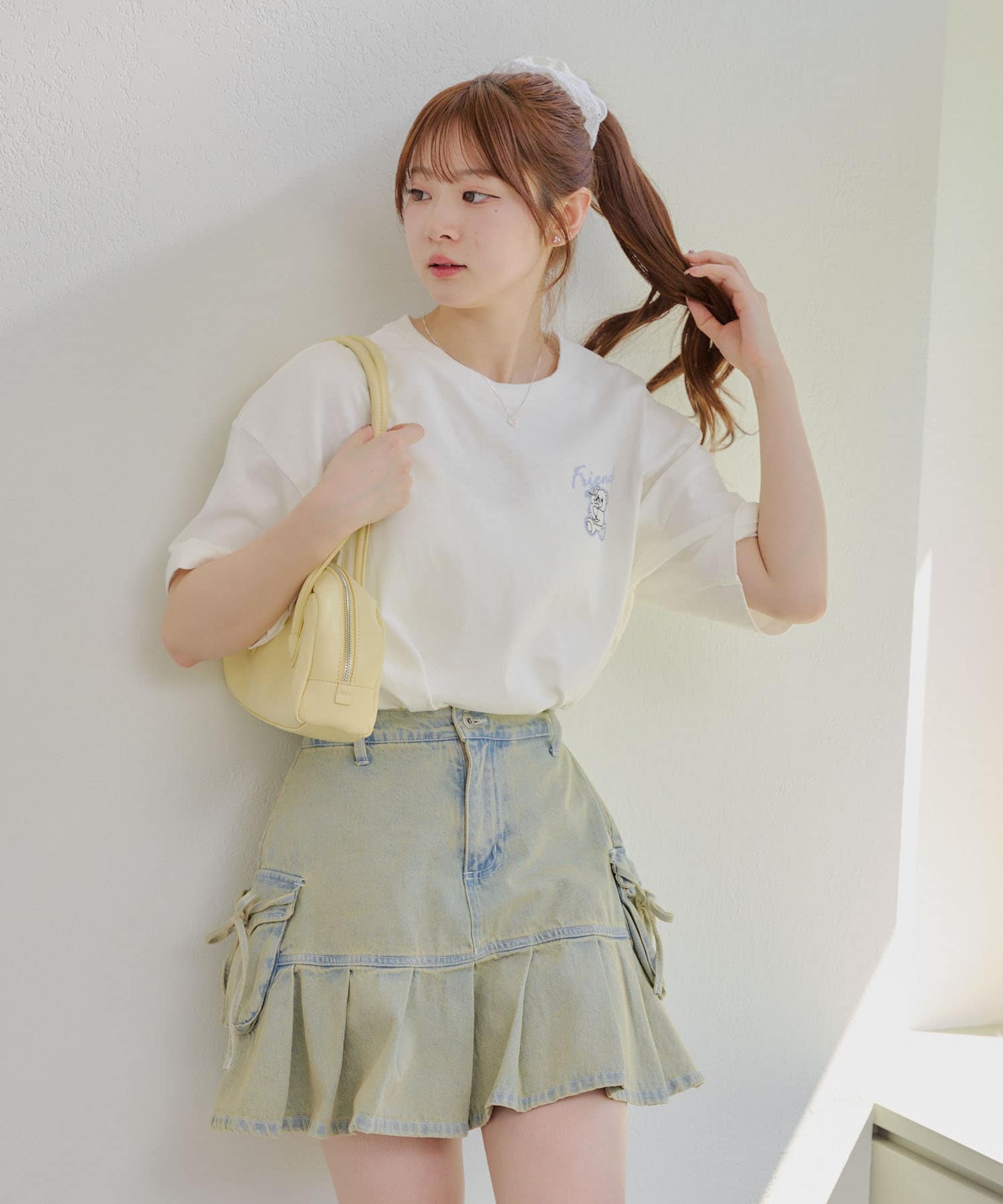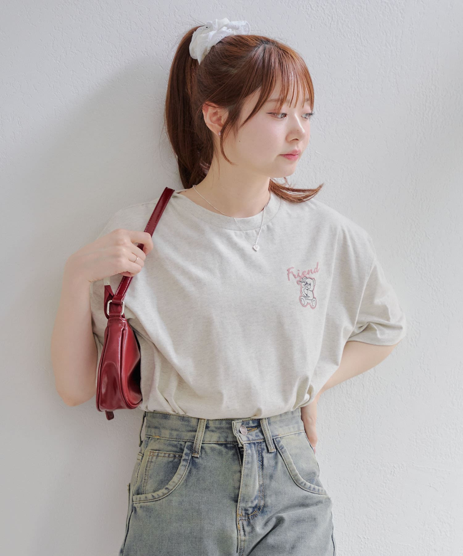 ・Tシャツとプリントのカラーが淡い色なので柔らかい印象に見せてくれます!
