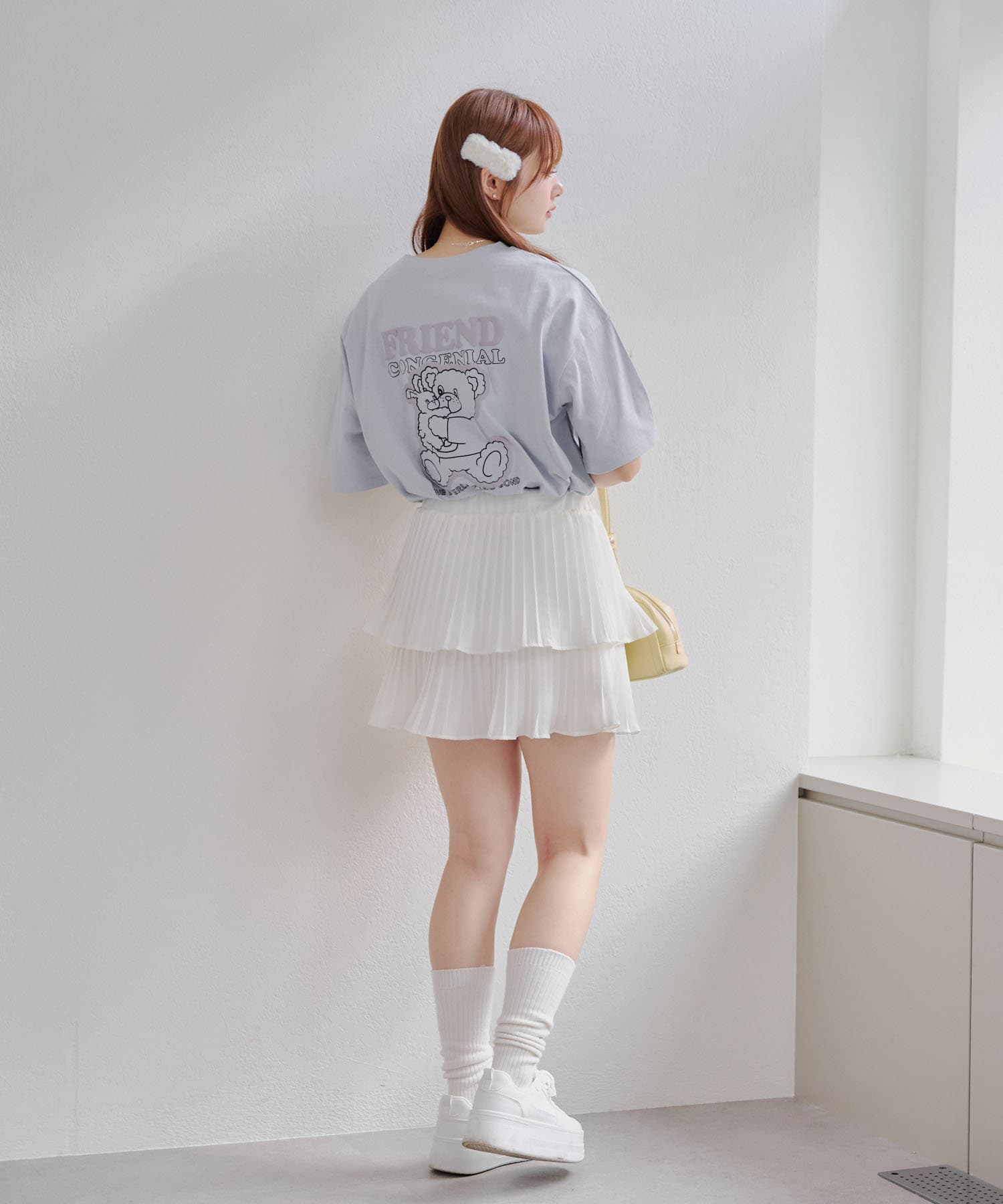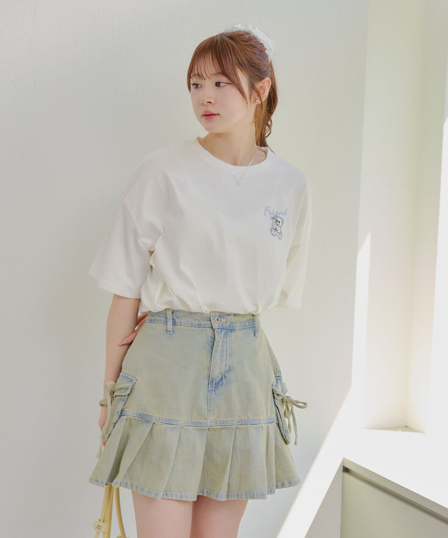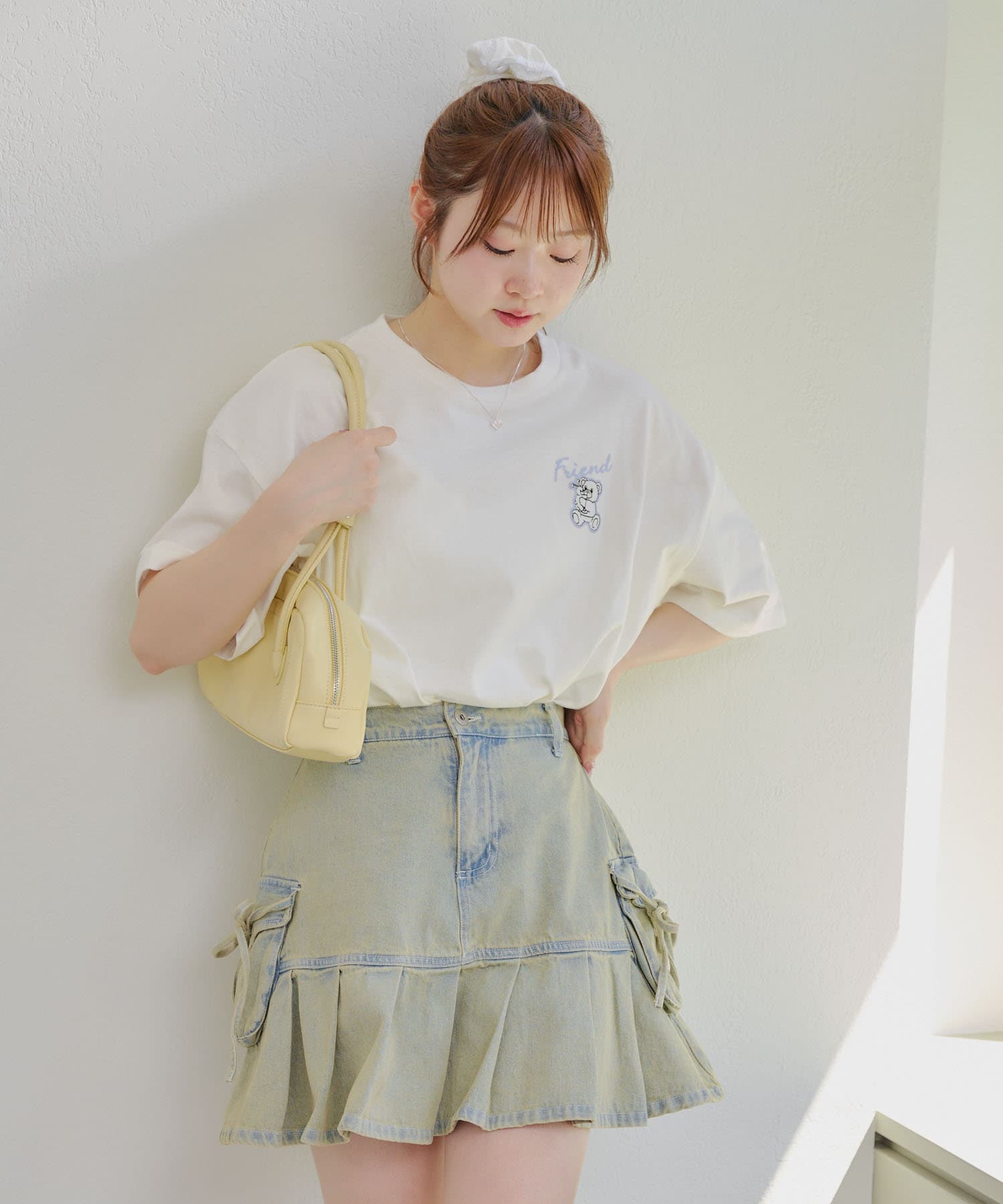 ・Tシャツとプリントのカラーが淡い色なので柔らかい印象に見せてくれます!