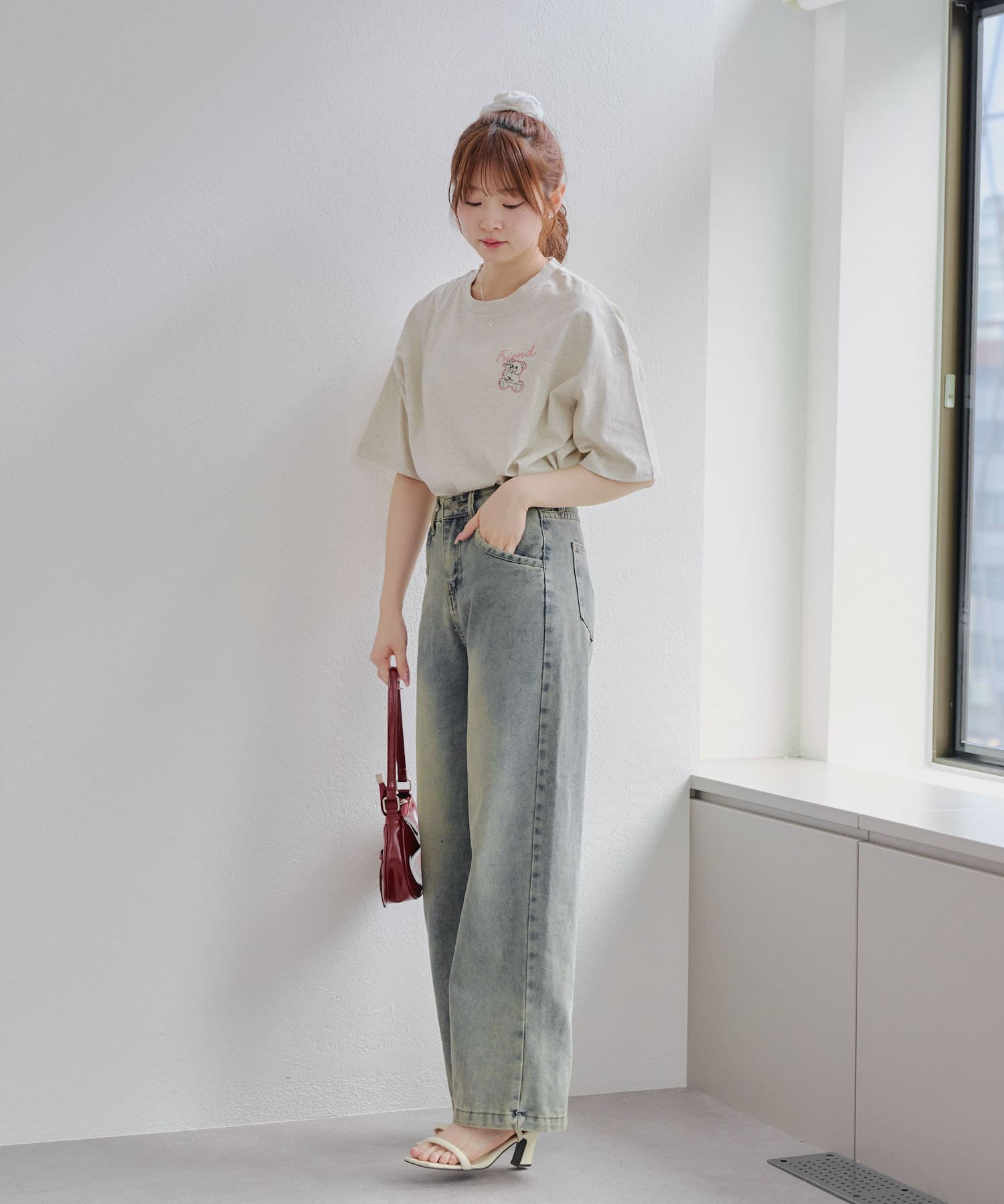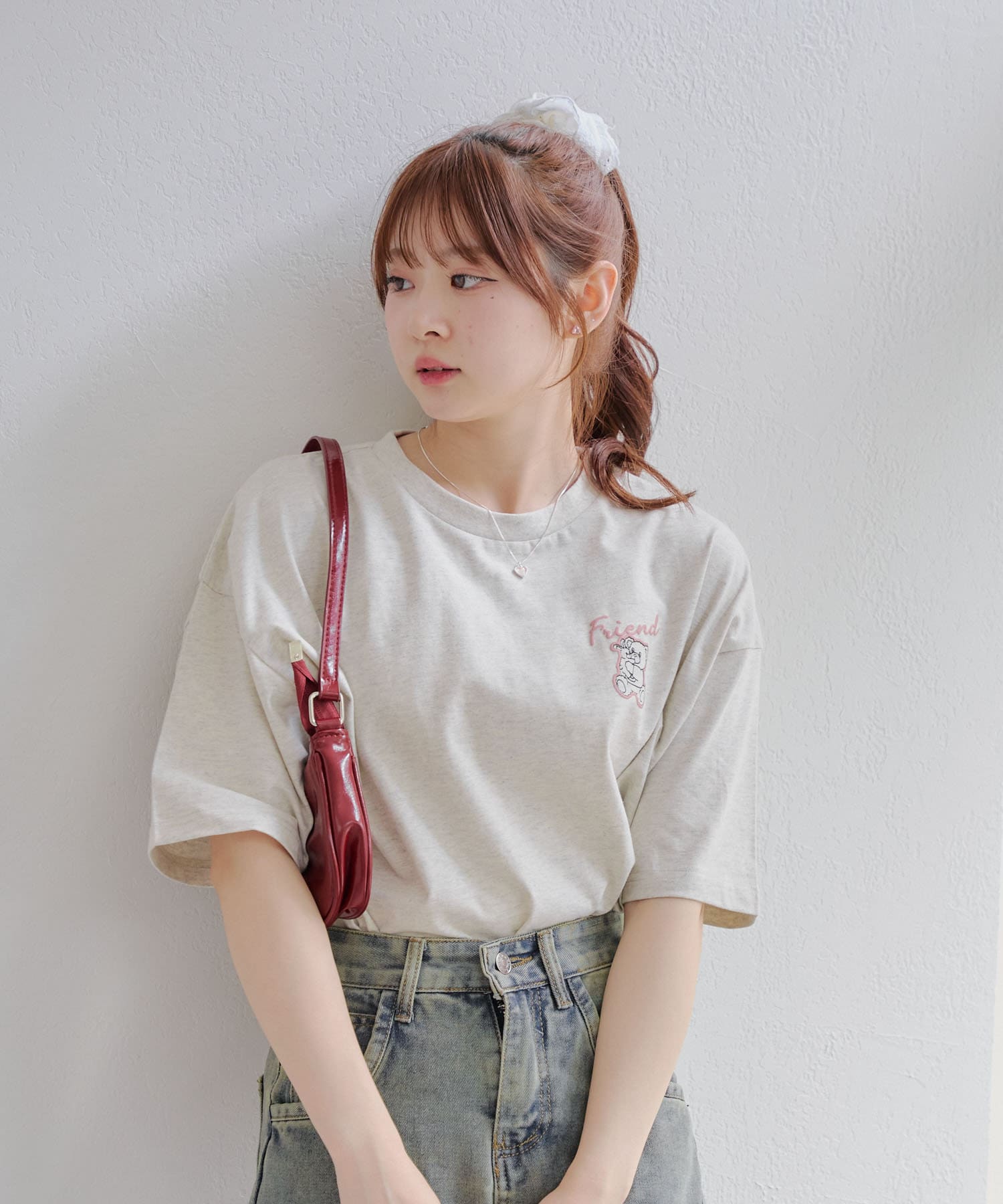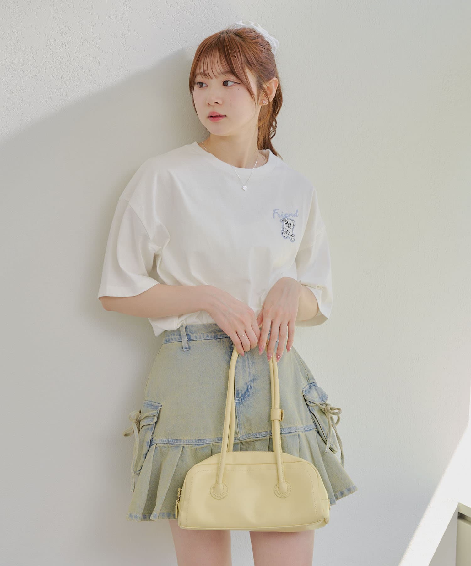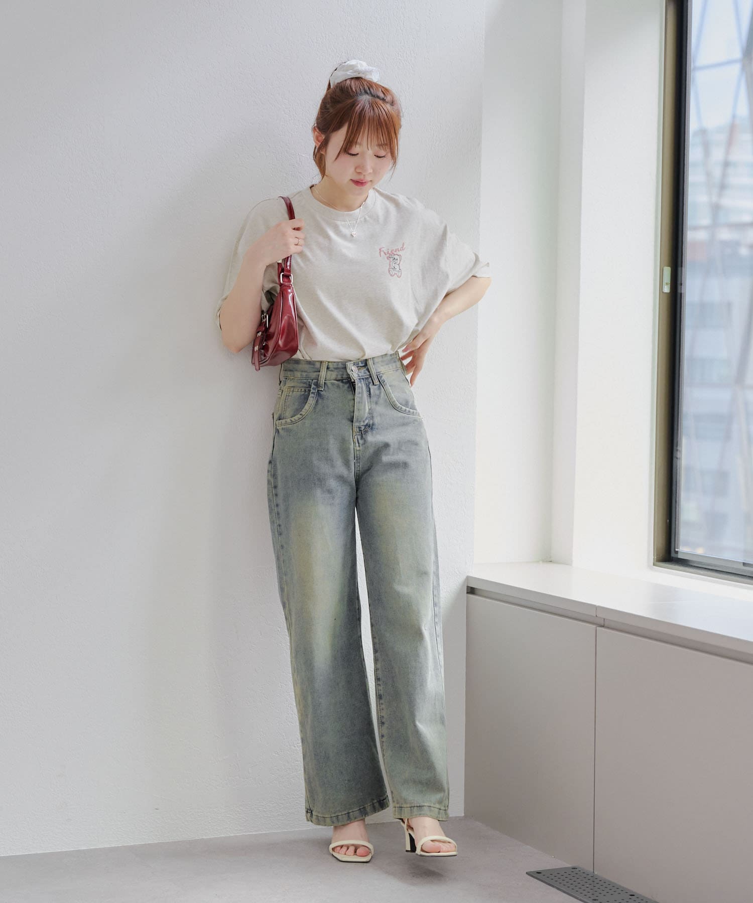 ・Tシャツとプリントのカラーが淡い色なので柔らかい印象に見せてくれます!