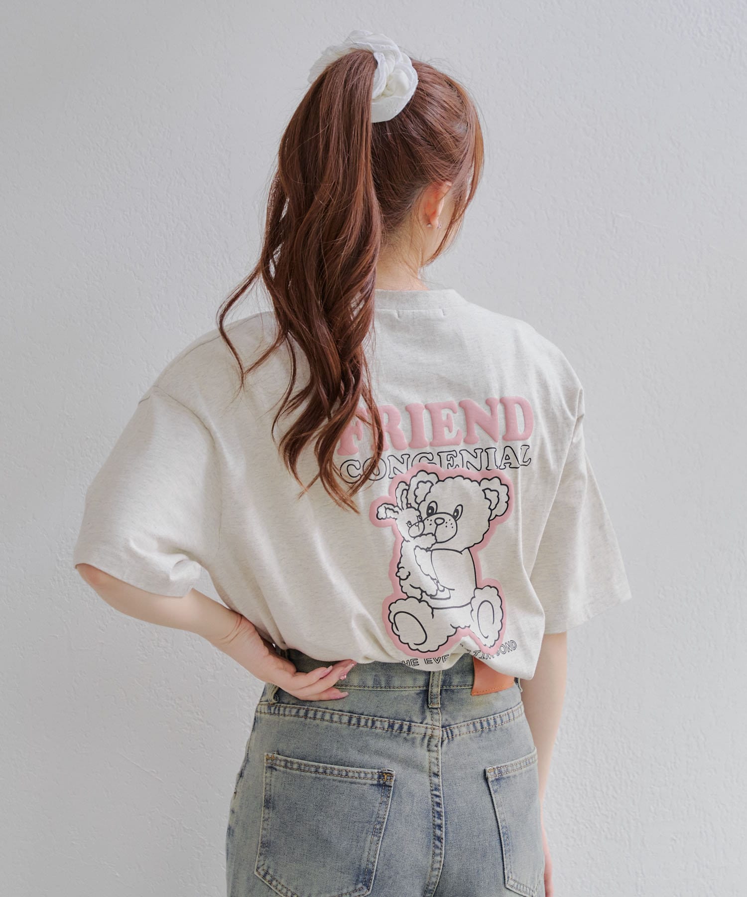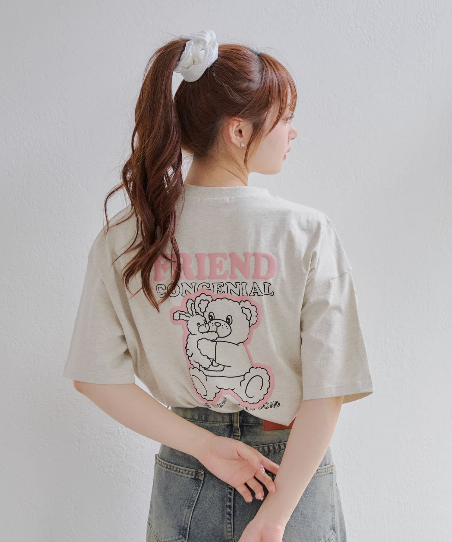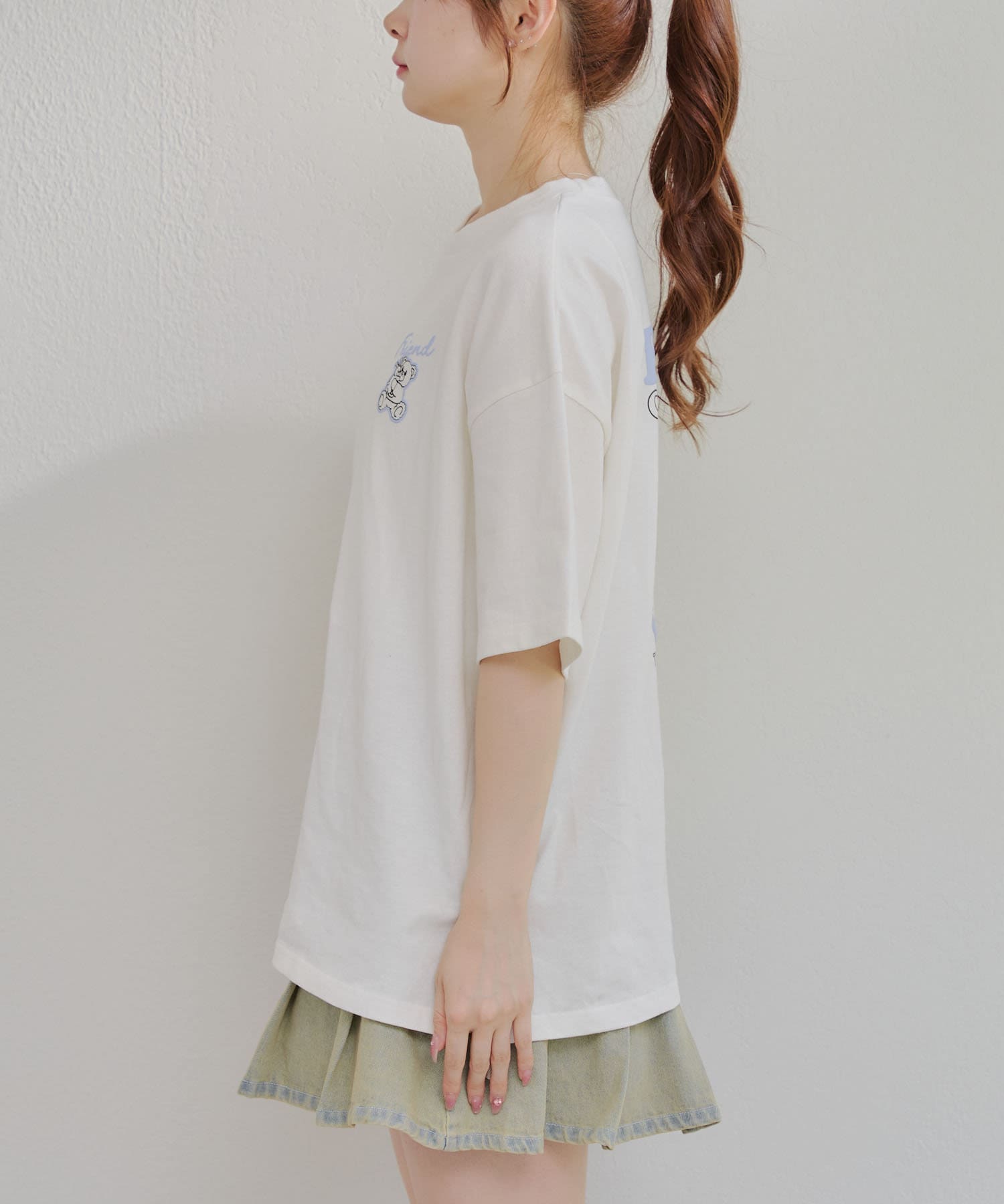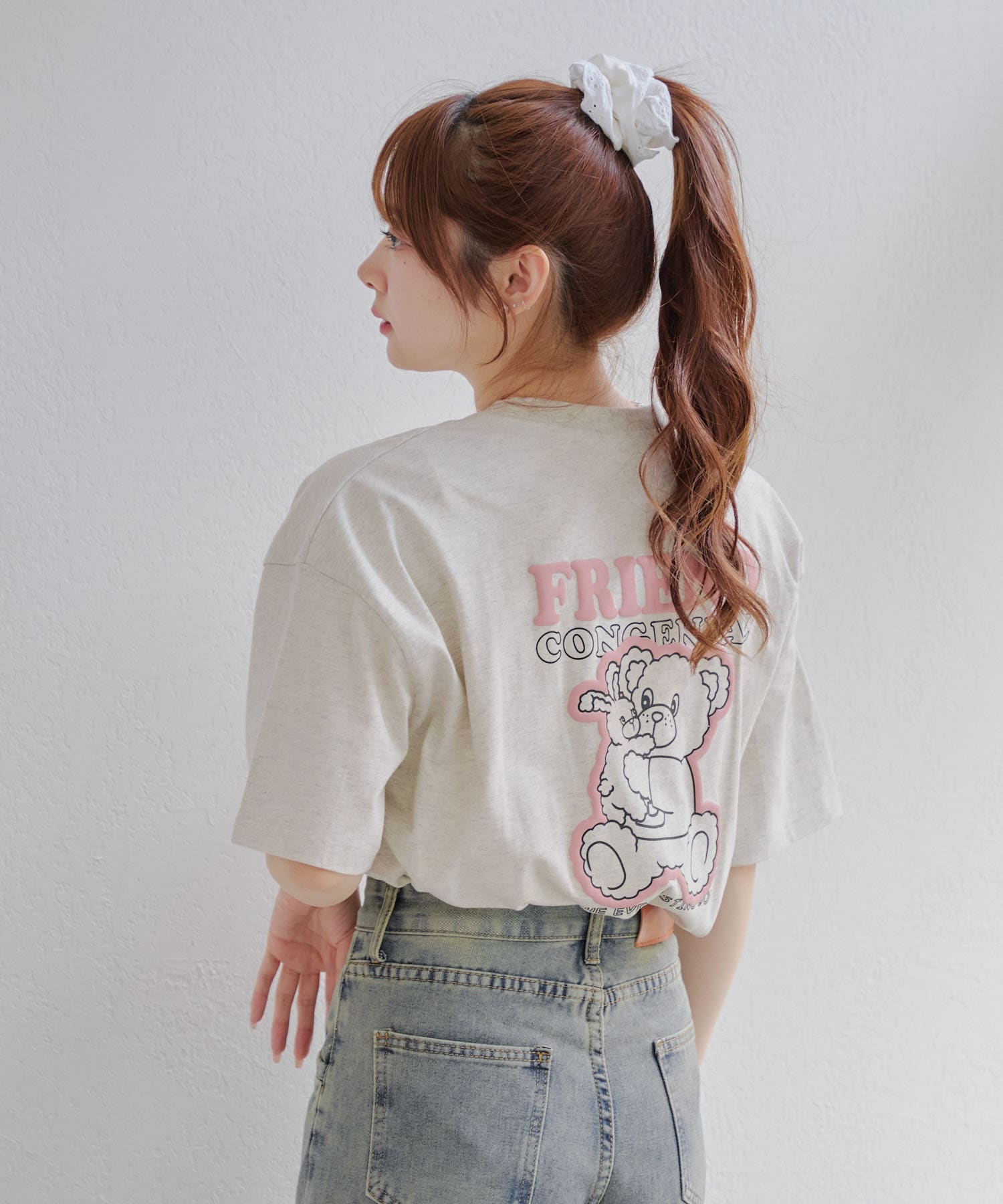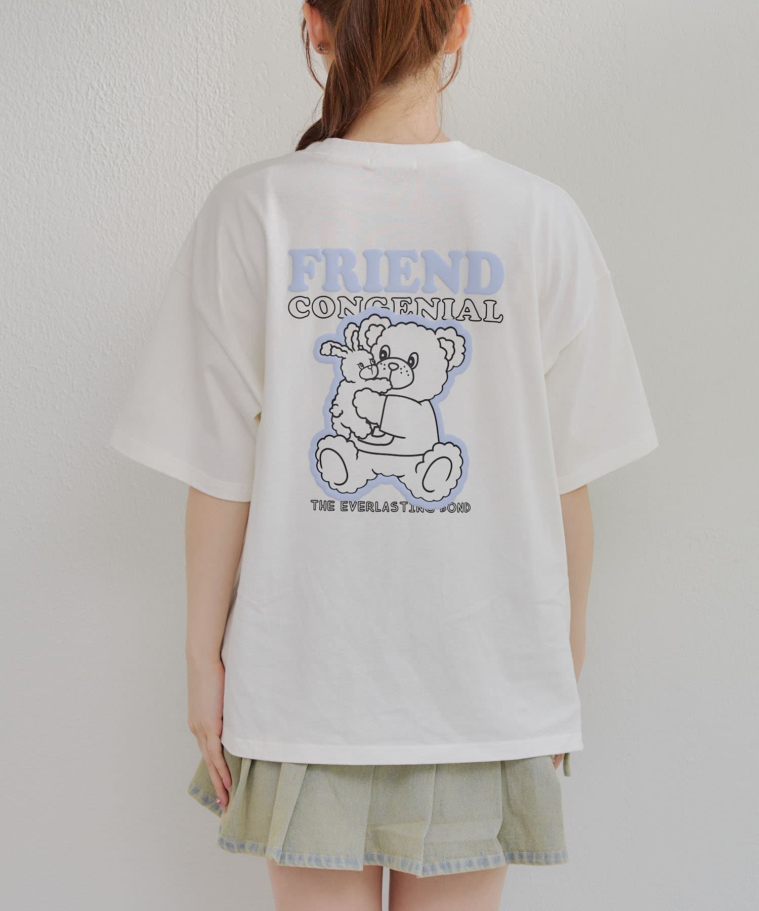 ・くまとうさぎがプリントされた可愛らしいTシャツ
